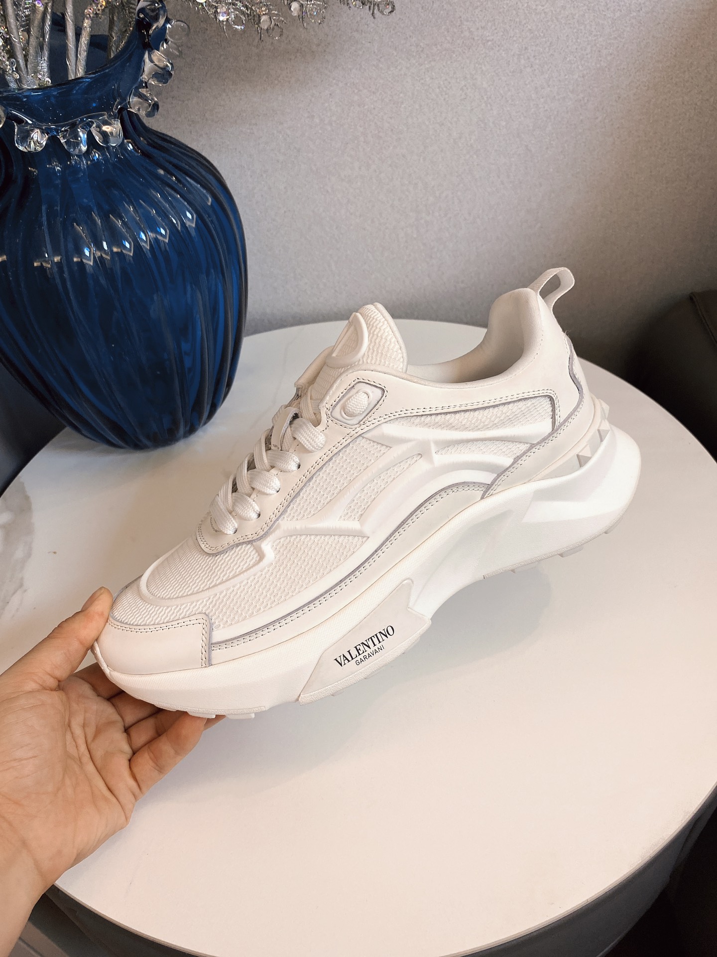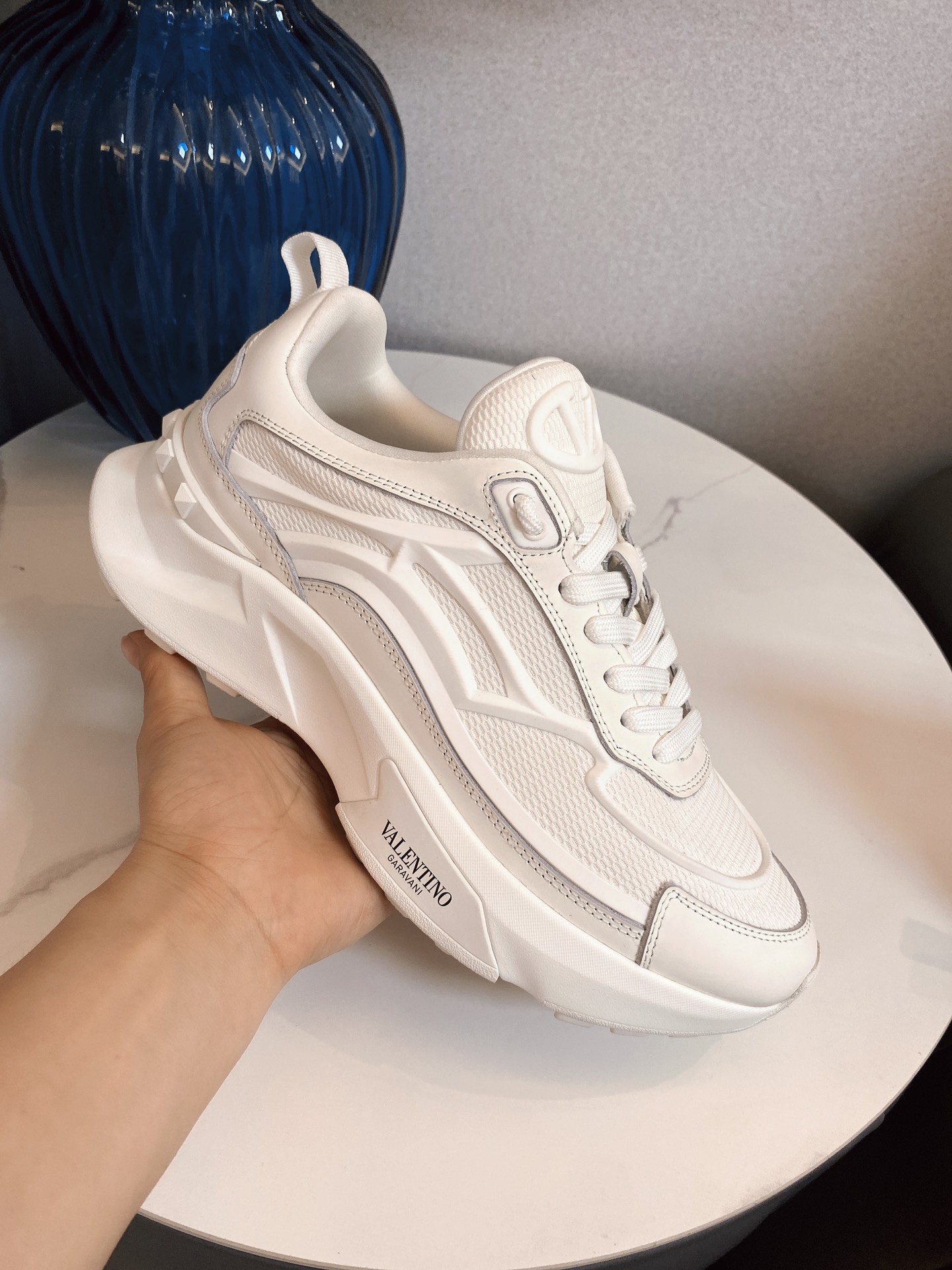 这款鞋子是AAAAA 1:1 质量 (非常棒). 使用了和原版一模一样的材料. 商标部分也保持了和华伦天奴/Valentino一样. 图片拍摄是实物鞋子拍摄, 您所收到的实物保证和我们图片一模一样.