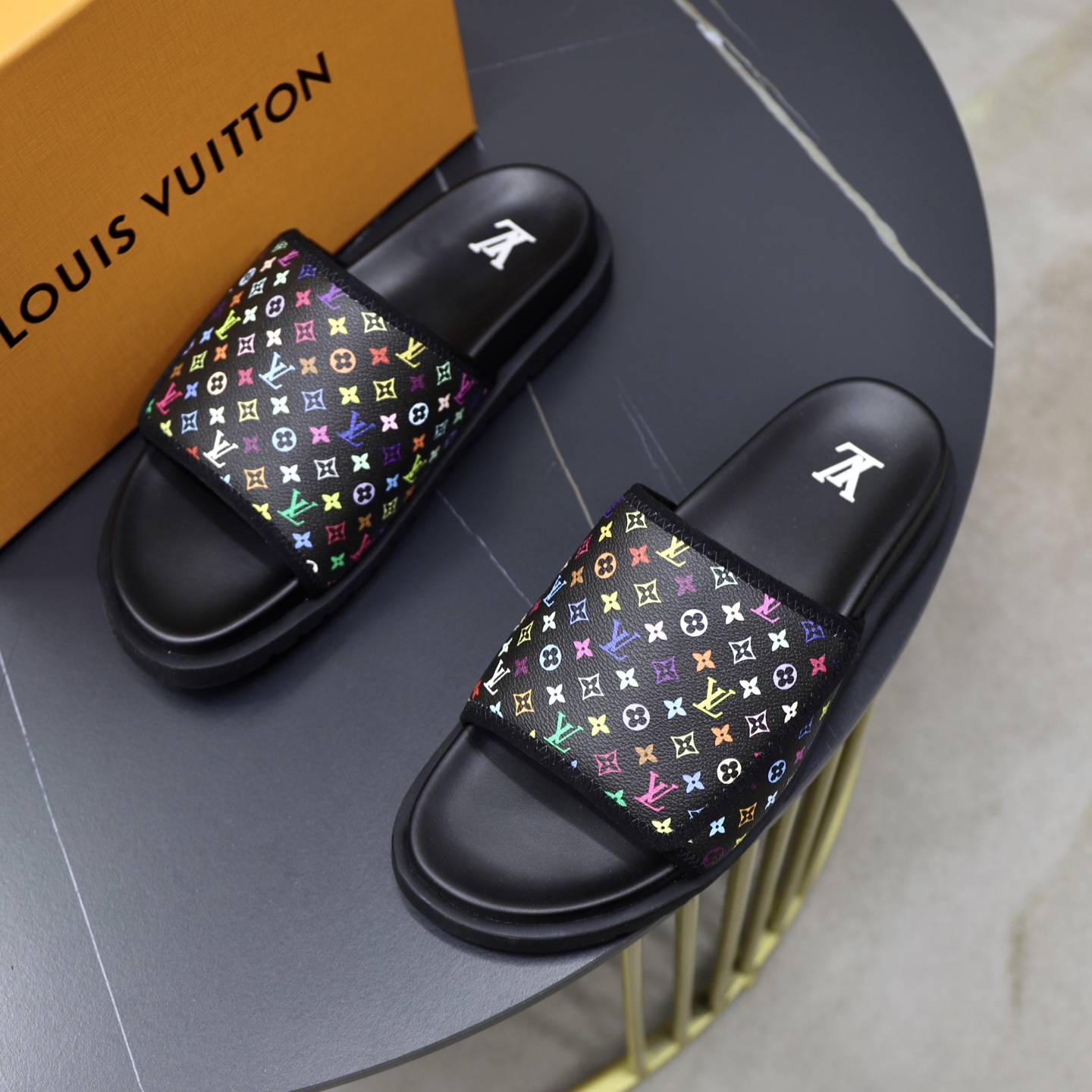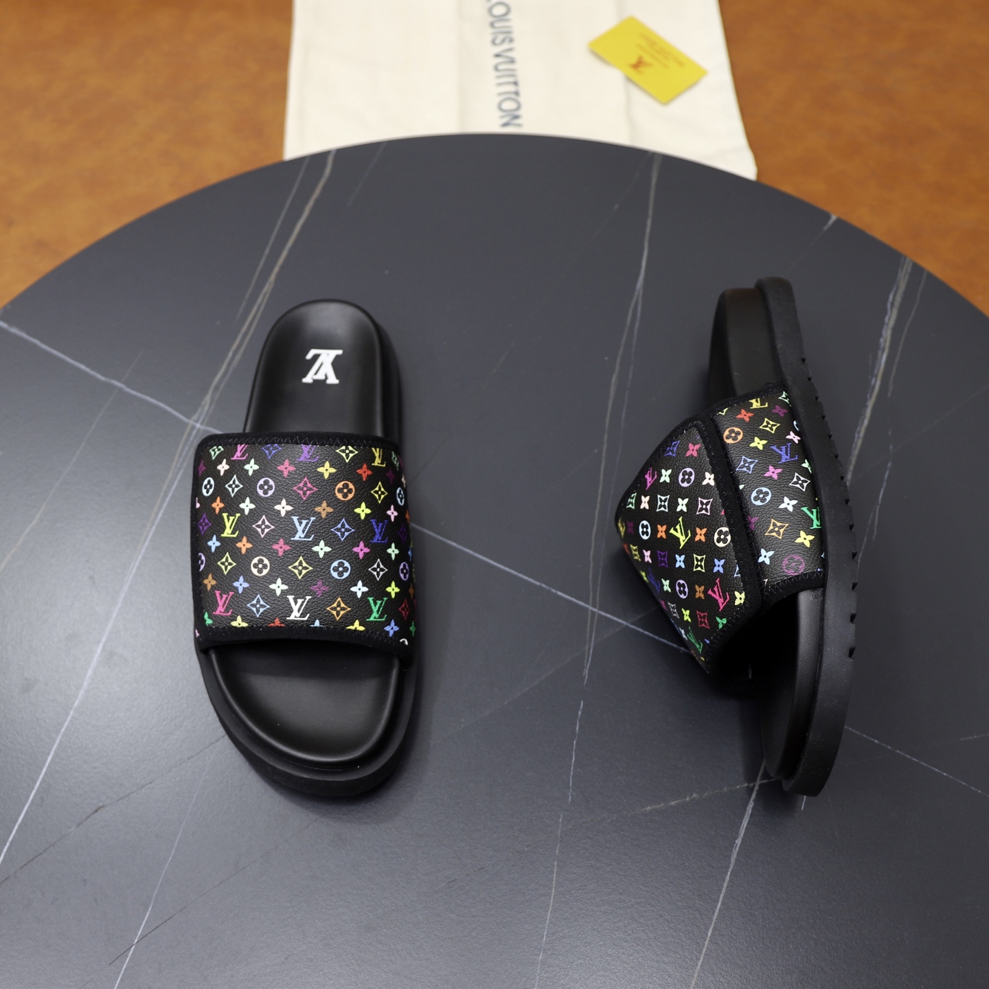 这款鞋子是AAAAA 1:1 质量 (非常棒). 使用了和原版一模一样的材料. 商标部分也保持了和路易威登/Louis Vuitton一样. 图片拍摄是实物鞋子拍摄, 您所收到的实物保证和我们图片一模一样.