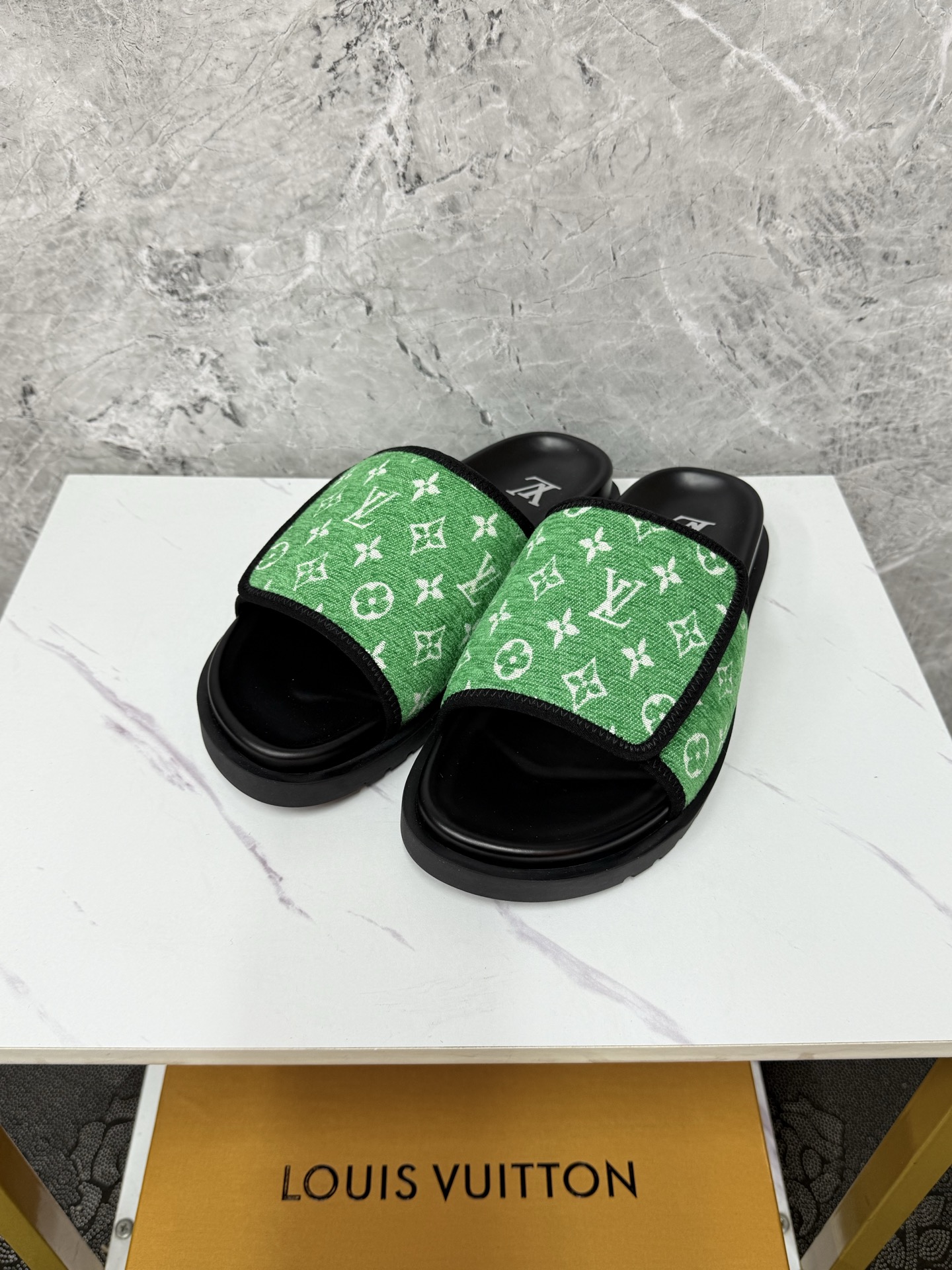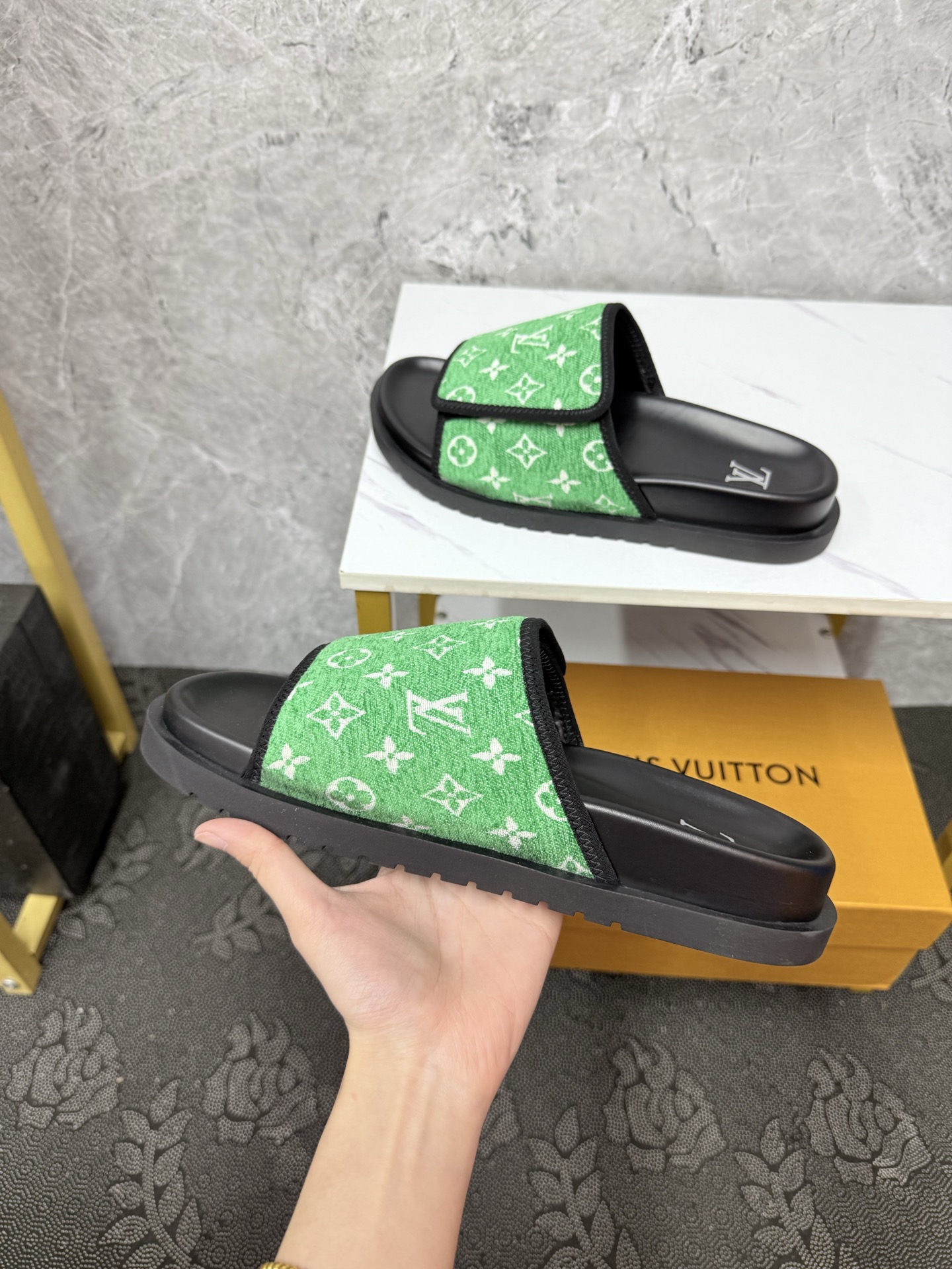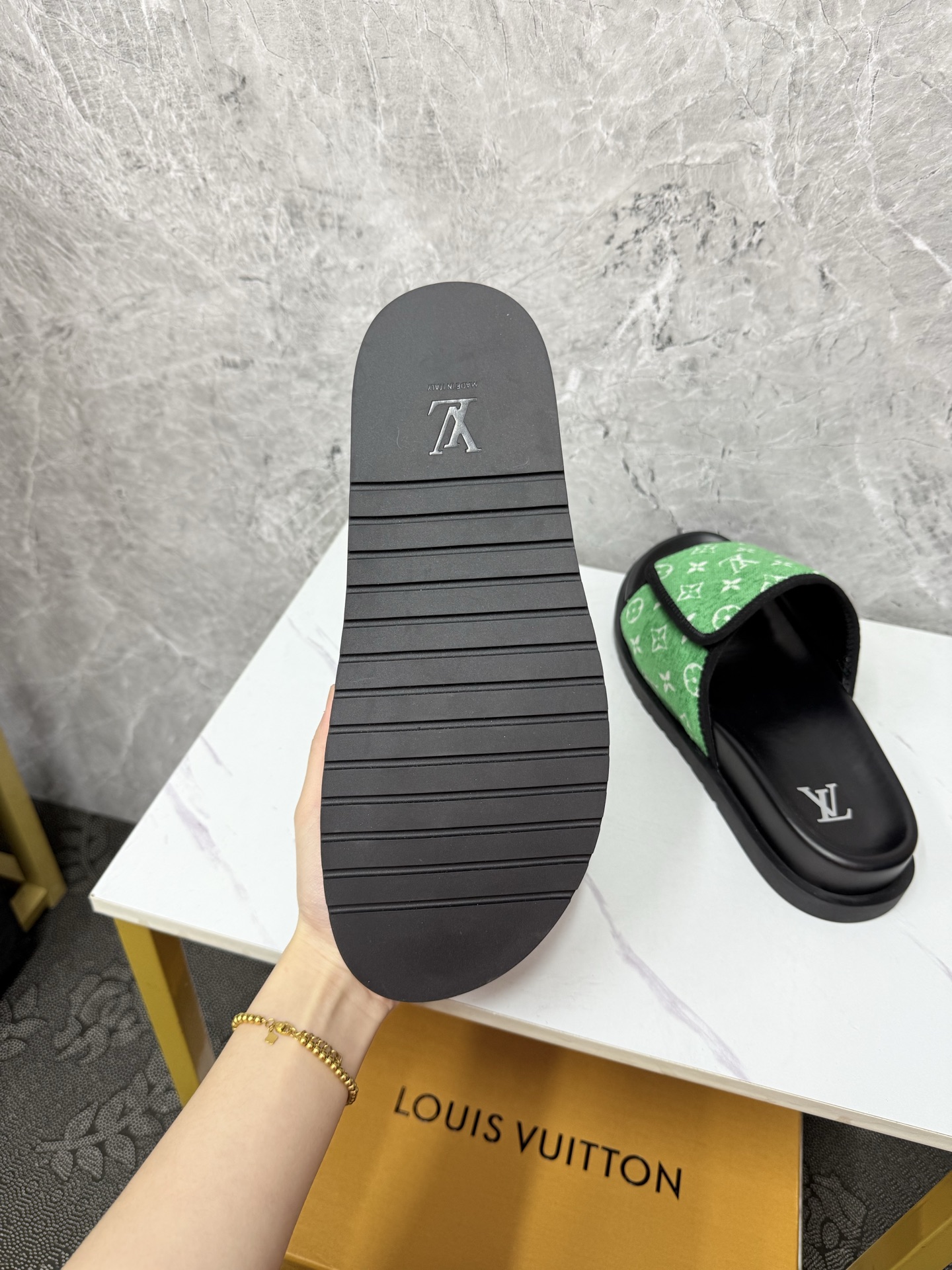 这款鞋子是AAAAA 1:1 质量 (非常棒). 使用了和原版一模一样的材料. 商标部分也保持了和路易威登/Louis Vuitton一样. 图片拍摄是实物鞋子拍摄, 您所收到的实物保证和我们图片一模一样.