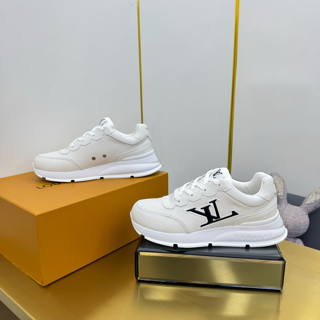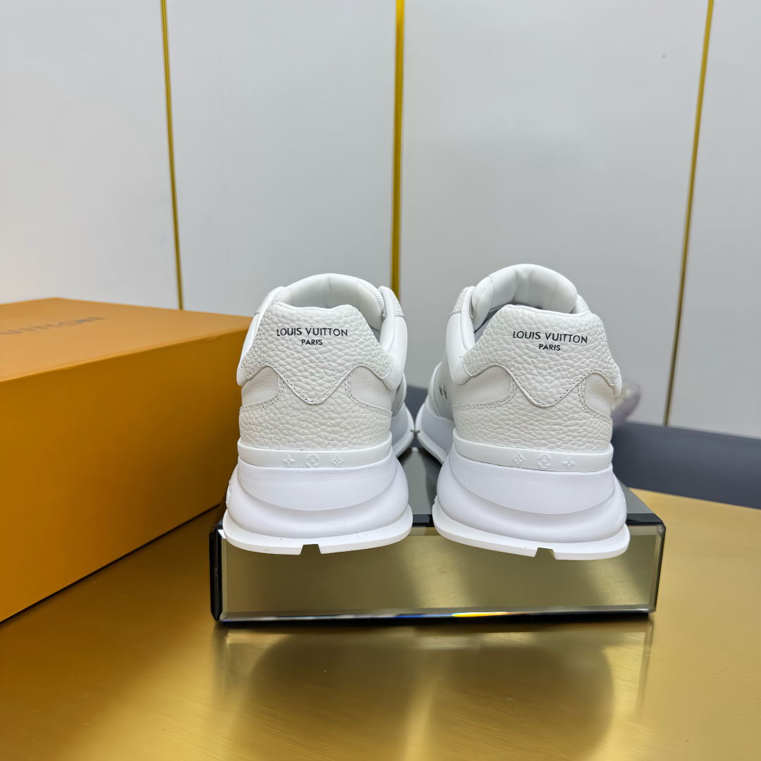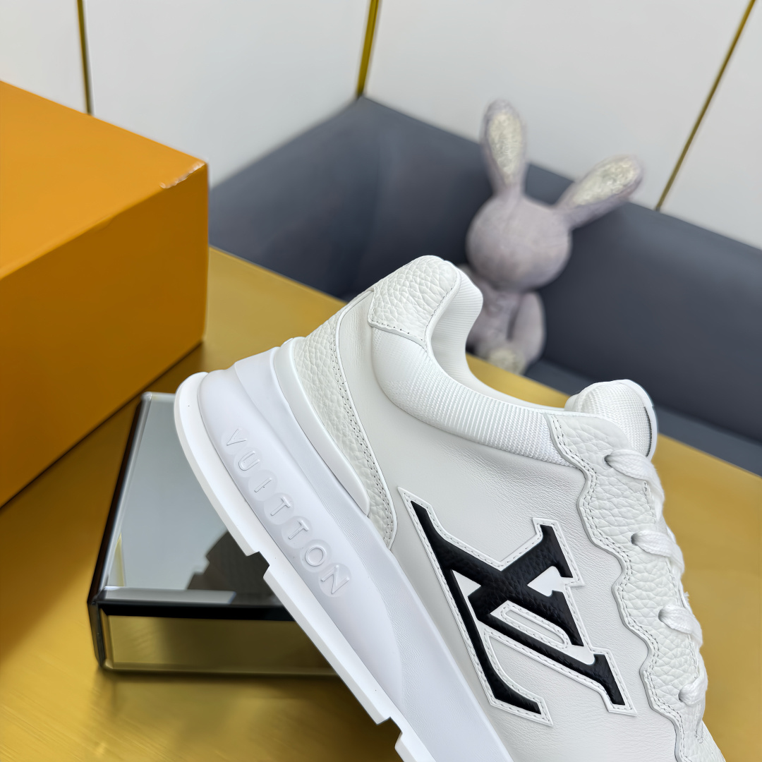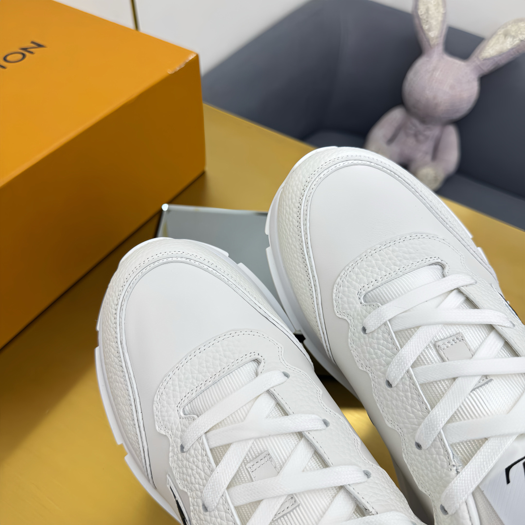这款鞋子是AAAAA 1:1 质量 (非常棒). 使用了和原版一模一样的材料. 商标部分也保持了和路易威登/Louis Vuitton一样. 图片拍摄是实物鞋子拍摄, 您所收到的实物保证和我们图片一模一样.