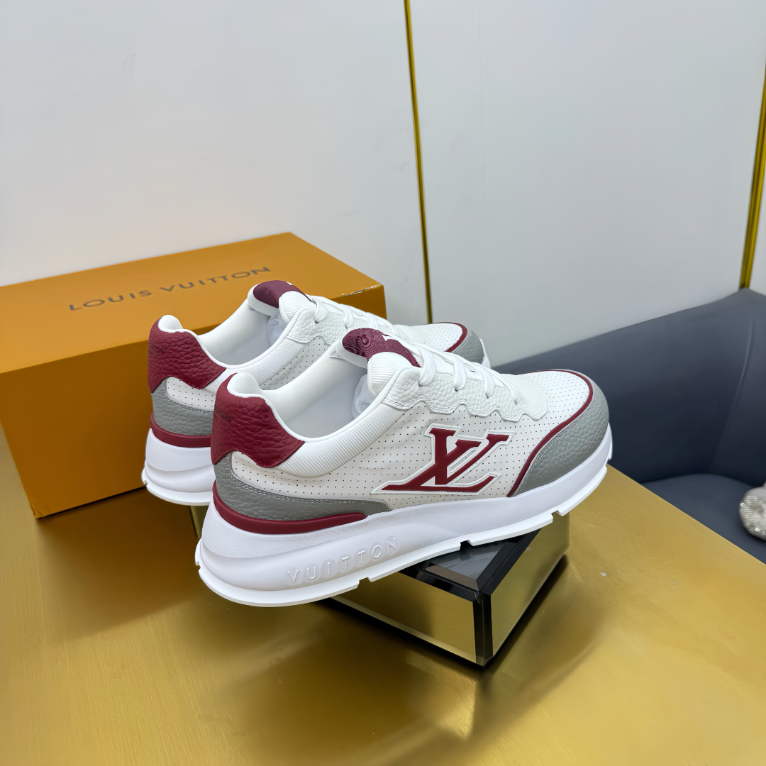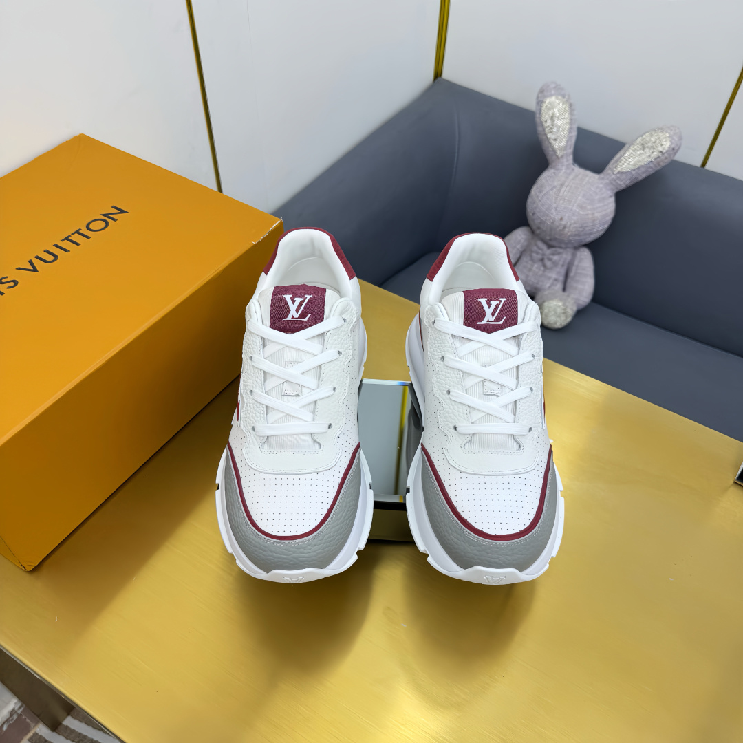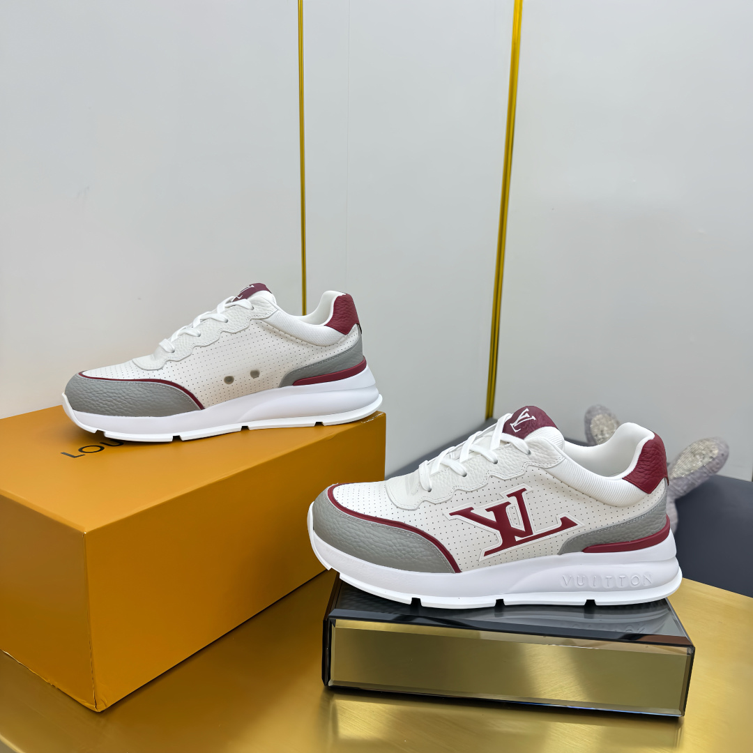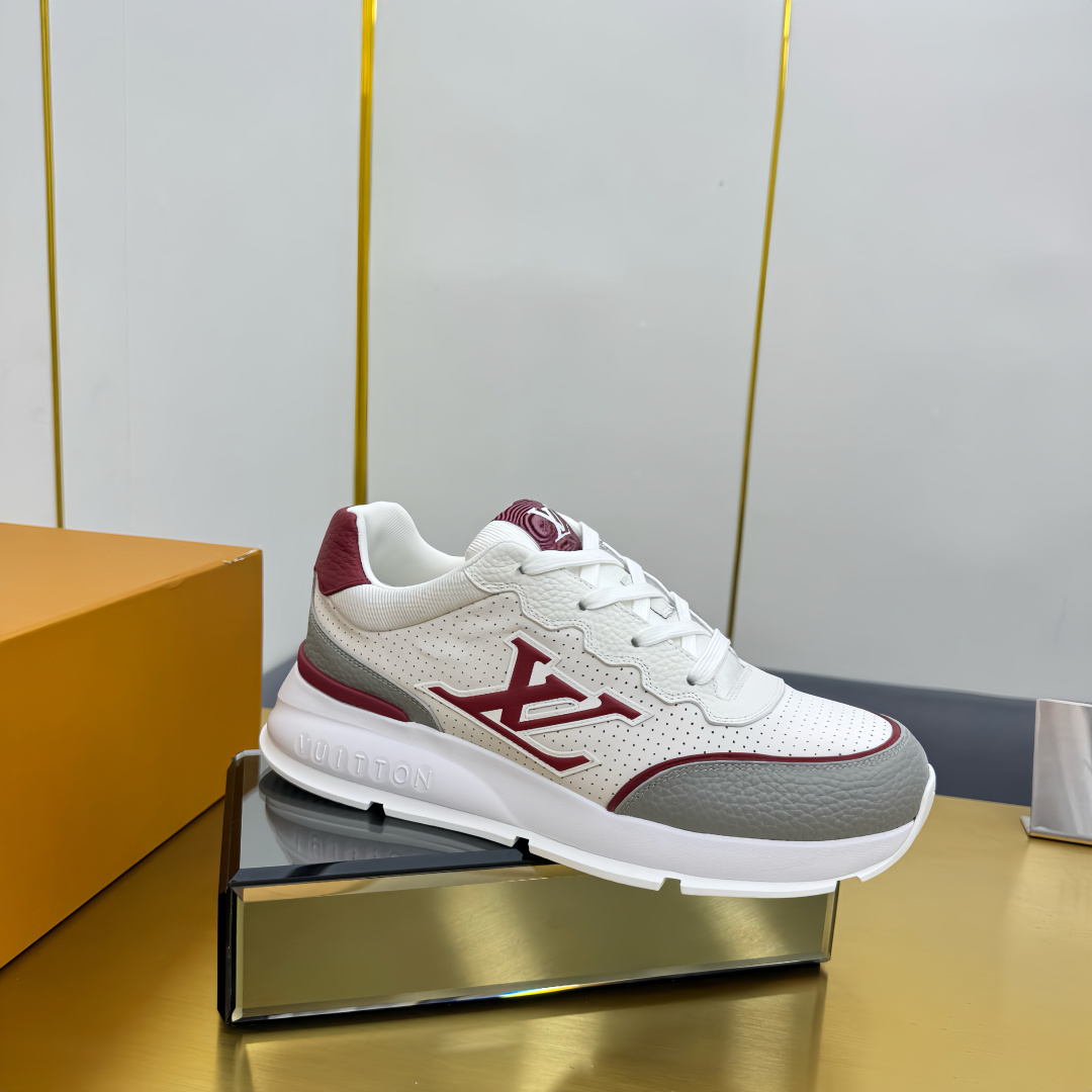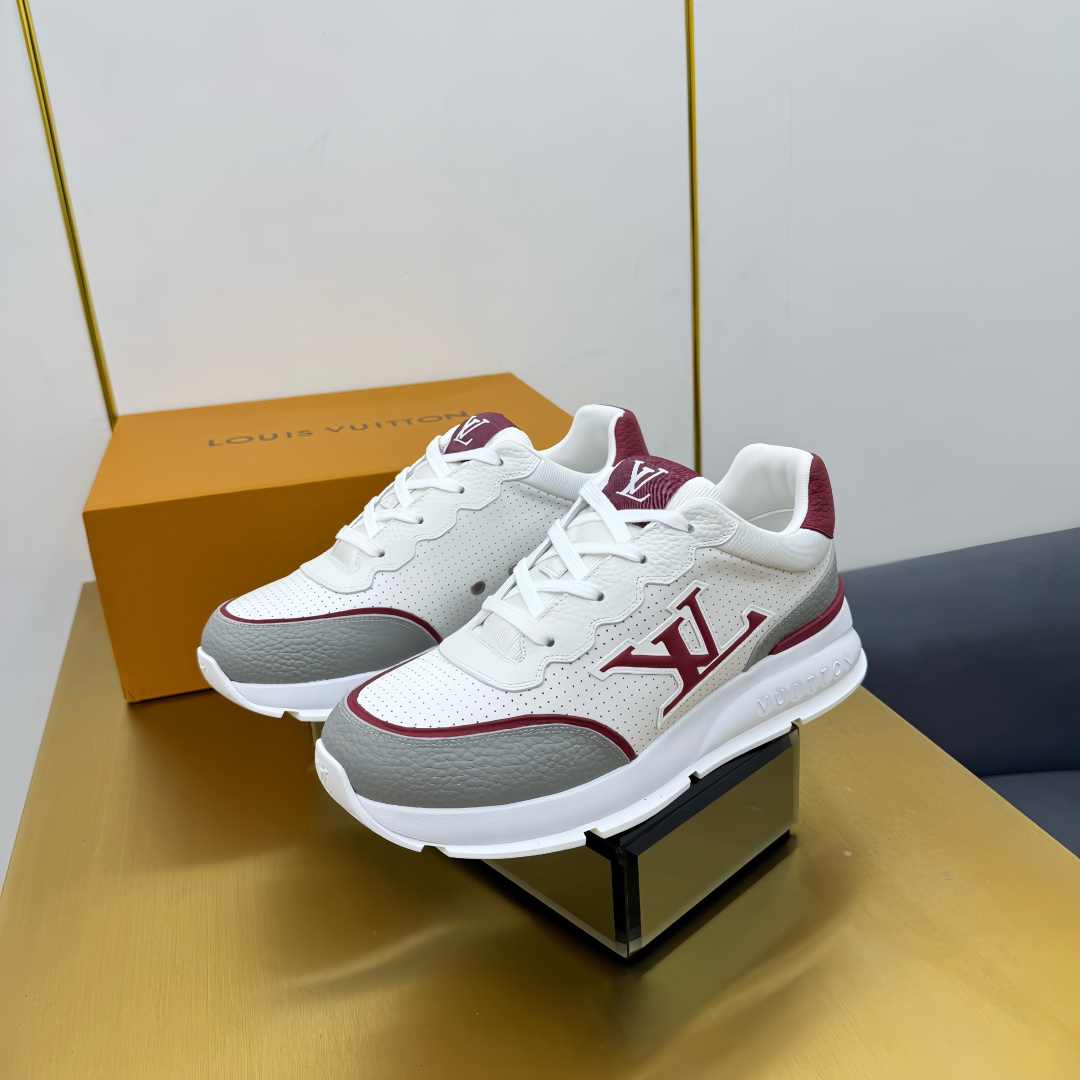 这款鞋子是AAAAA 1:1 质量 (非常棒). 使用了和原版一模一样的材料. 商标部分也保持了和路易威登/Louis Vuitton一样. 图片拍摄是实物鞋子拍摄, 您所收到的实物保证和我们图片一模一样.