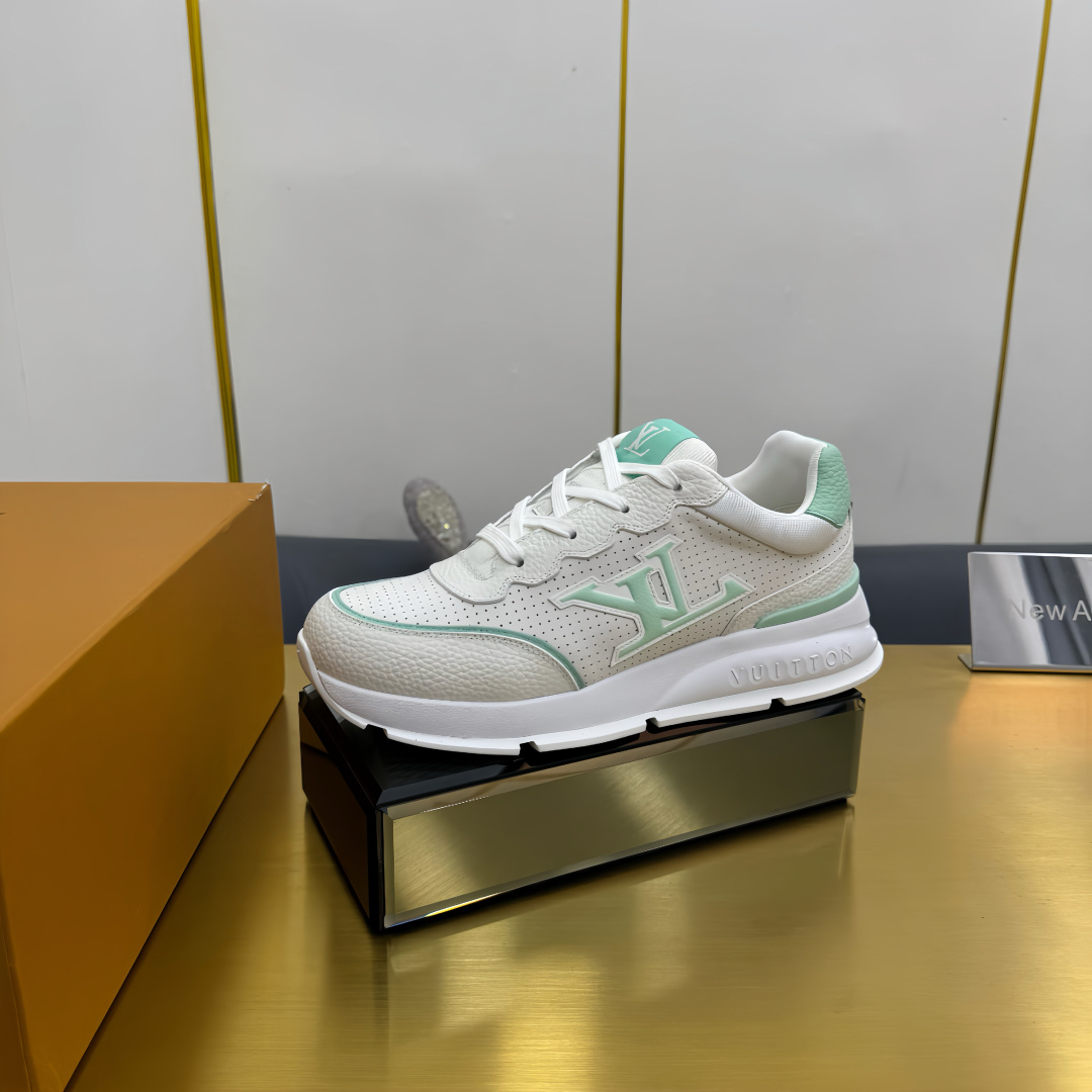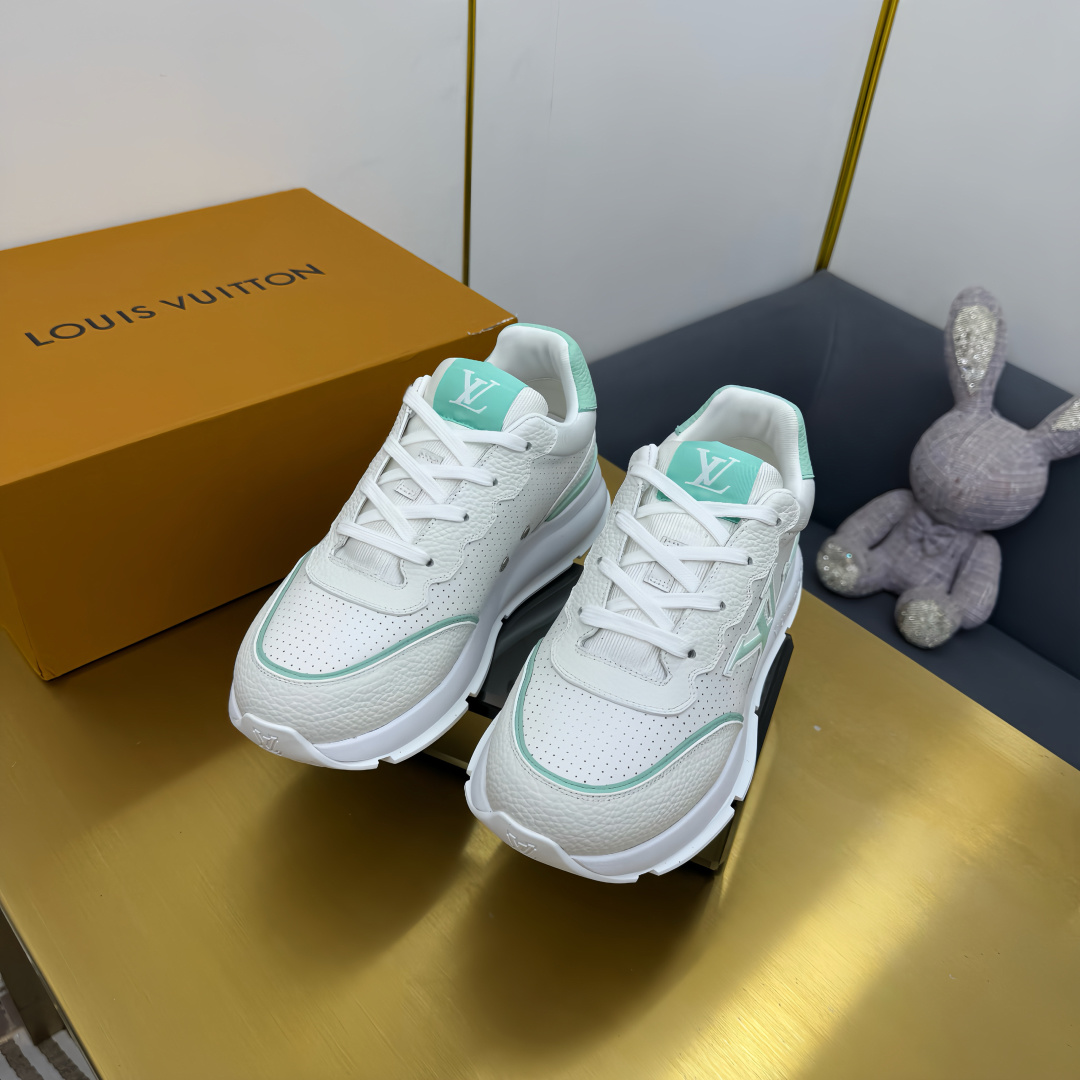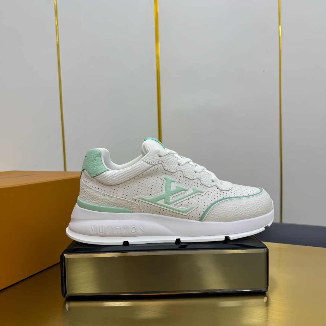 这款鞋子是AAAAA 1:1 质量 (非常棒). 使用了和原版一模一样的材料. 商标部分也保持了和路易威登/Louis Vuitton一样. 图片拍摄是实物鞋子拍摄, 您所收到的实物保证和我们图片一模一样.