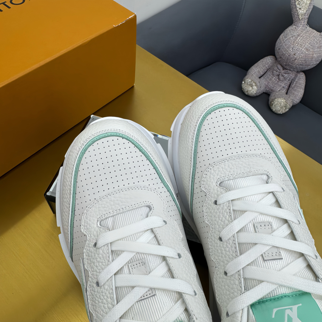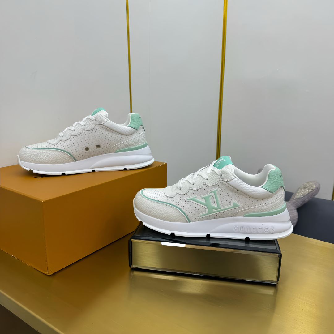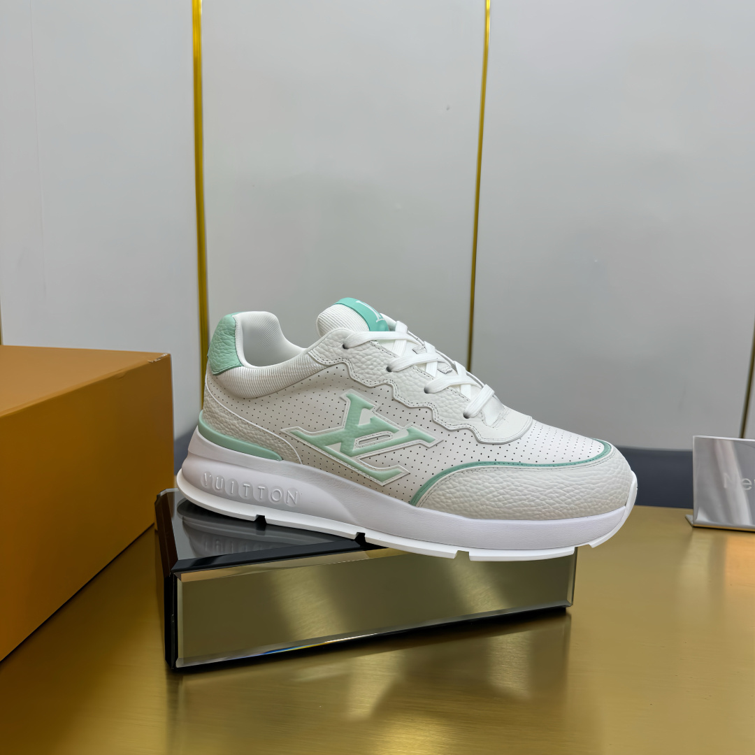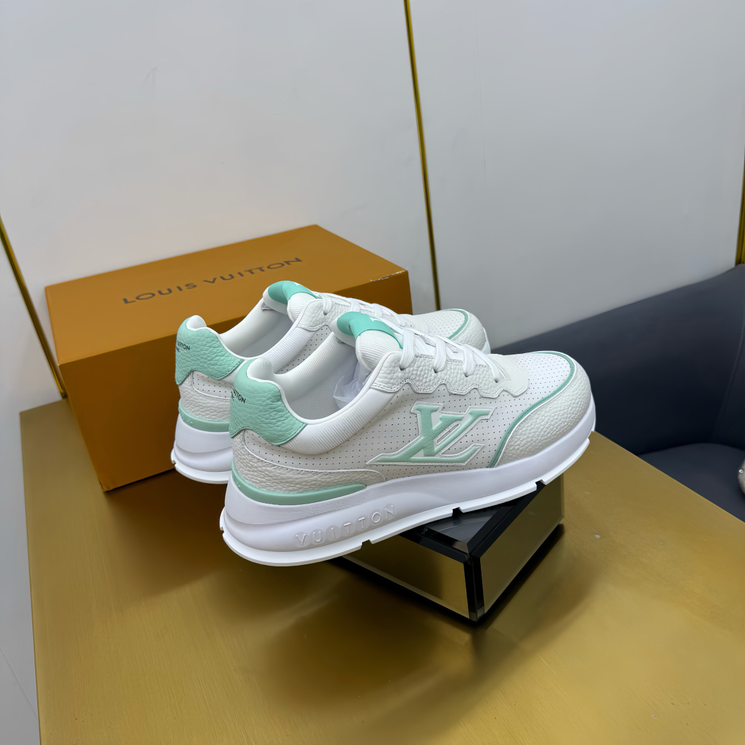 这款鞋子是AAAAA 1:1 质量 (非常棒). 使用了和原版一模一样的材料. 商标部分也保持了和路易威登/Louis Vuitton一样. 图片拍摄是实物鞋子拍摄, 您所收到的实物保证和我们图片一模一样.