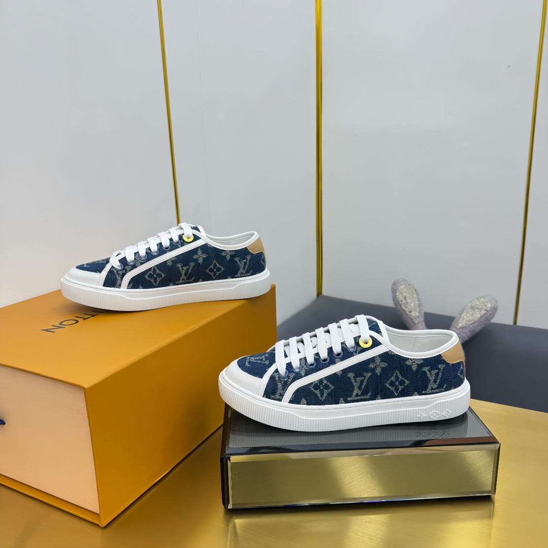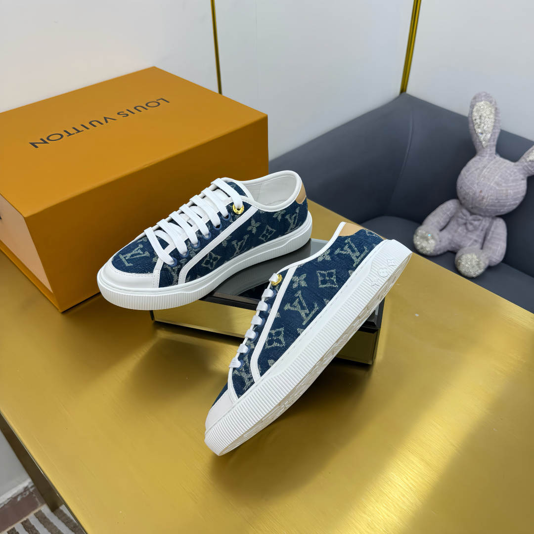 这款鞋子是AAAAA 1:1 质量 (非常棒). 使用了和原版一模一样的材料. 商标部分也保持了和路易威登/Louis Vuitton一样. 图片拍摄是实物鞋子拍摄, 您所收到的实物保证和我们图片一模一样.