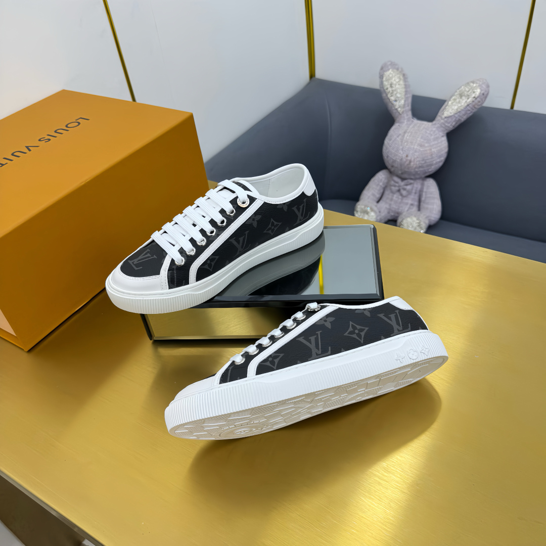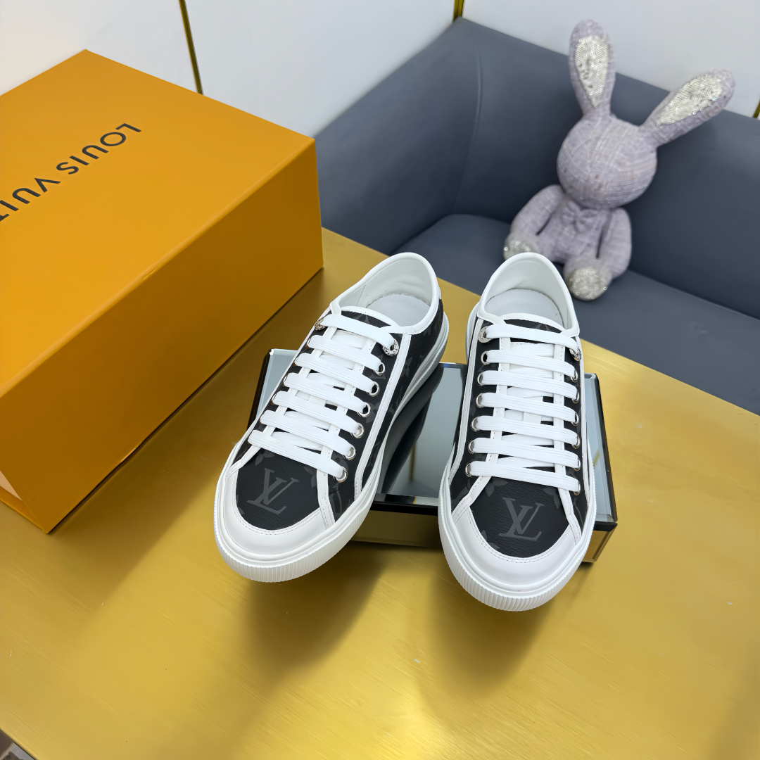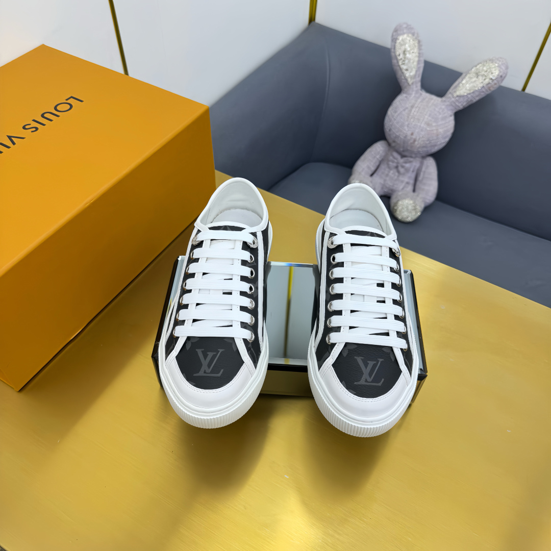 这款鞋子是AAAAA 1:1 质量 (非常棒). 使用了和原版一模一样的材料. 商标部分也保持了和路易威登/Louis Vuitton一样. 图片拍摄是实物鞋子拍摄, 您所收到的实物保证和我们图片一模一样.