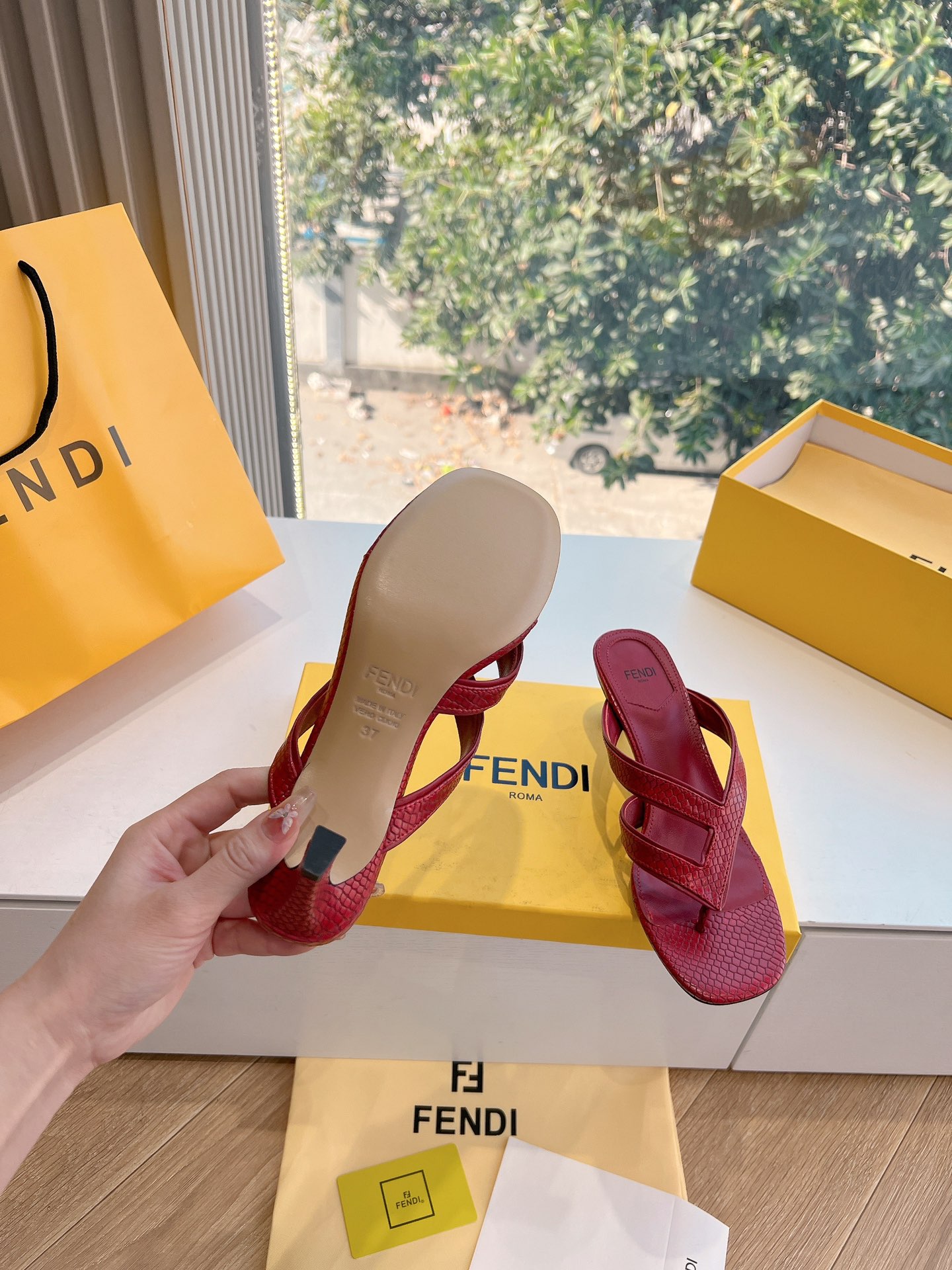 这款鞋子是AAAAA 1:1 质量 (非常棒). 使用了和原版一模一样的材料. 商标部分也保持了和芬迪/Fendi一样. 图片拍摄是实物鞋子拍摄, 您所收到的实物保证和我们图片一模一样.