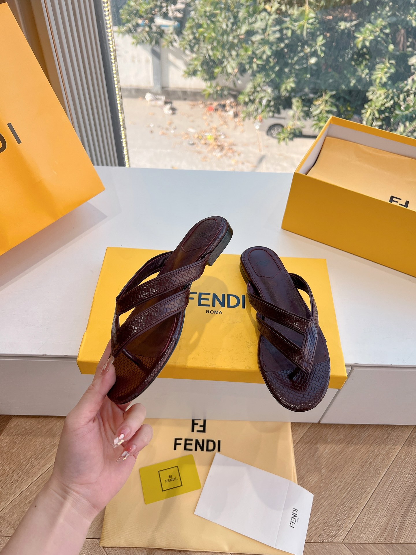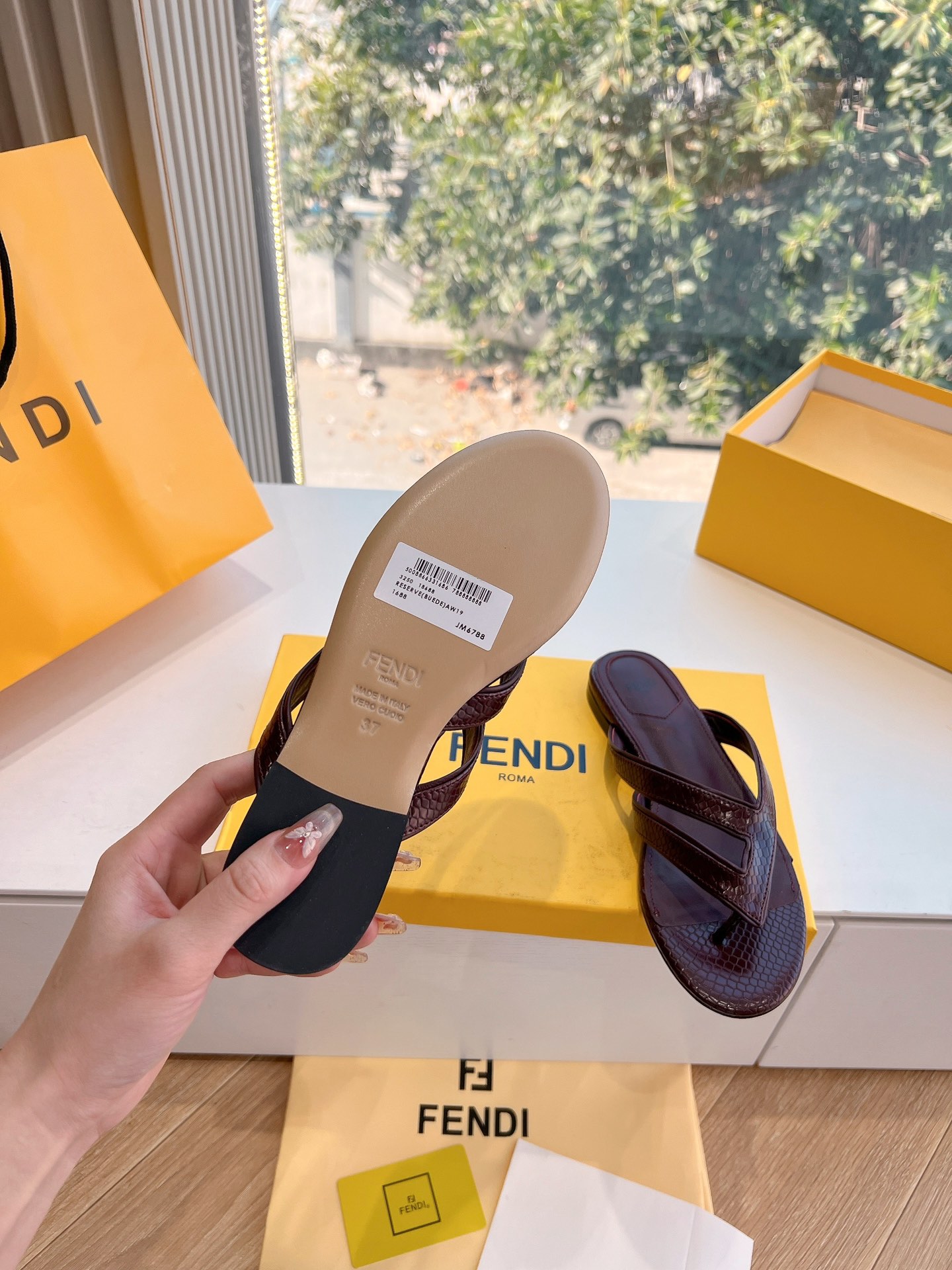 这款鞋子是AAAAA 1:1 质量 (非常棒). 使用了和原版一模一样的材料. 商标部分也保持了和芬迪/Fendi一样. 图片拍摄是实物鞋子拍摄, 您所收到的实物保证和我们图片一模一样.