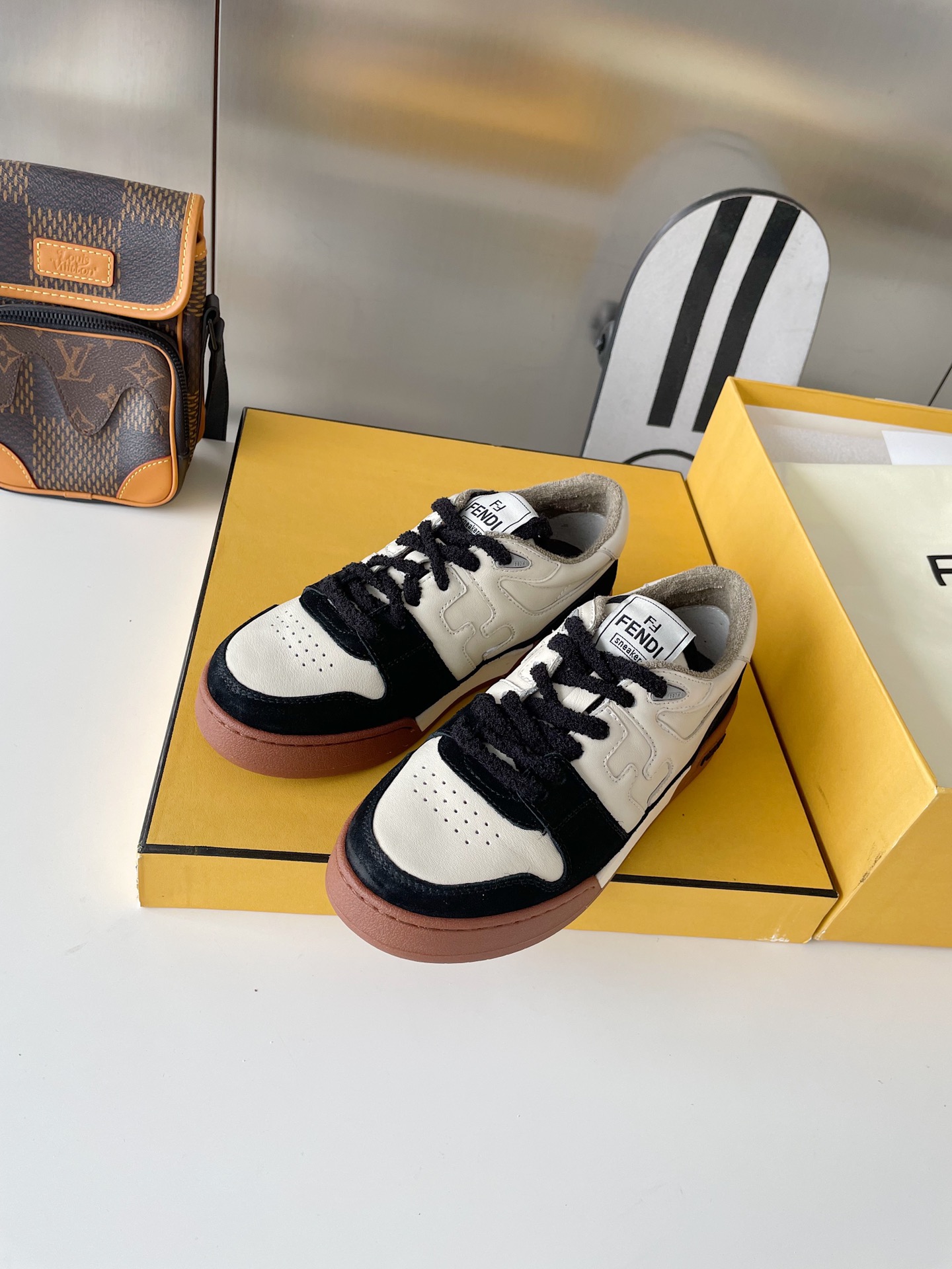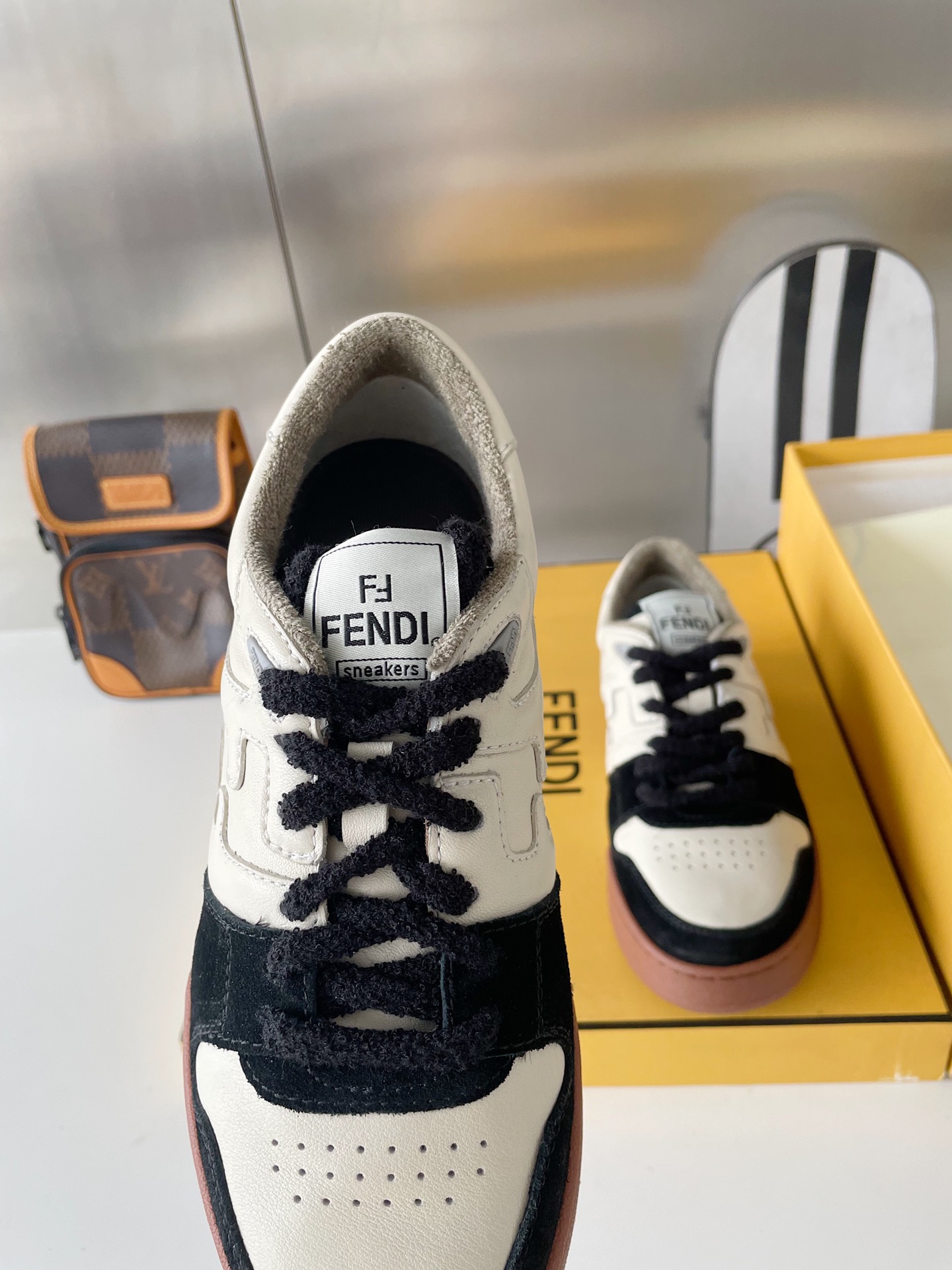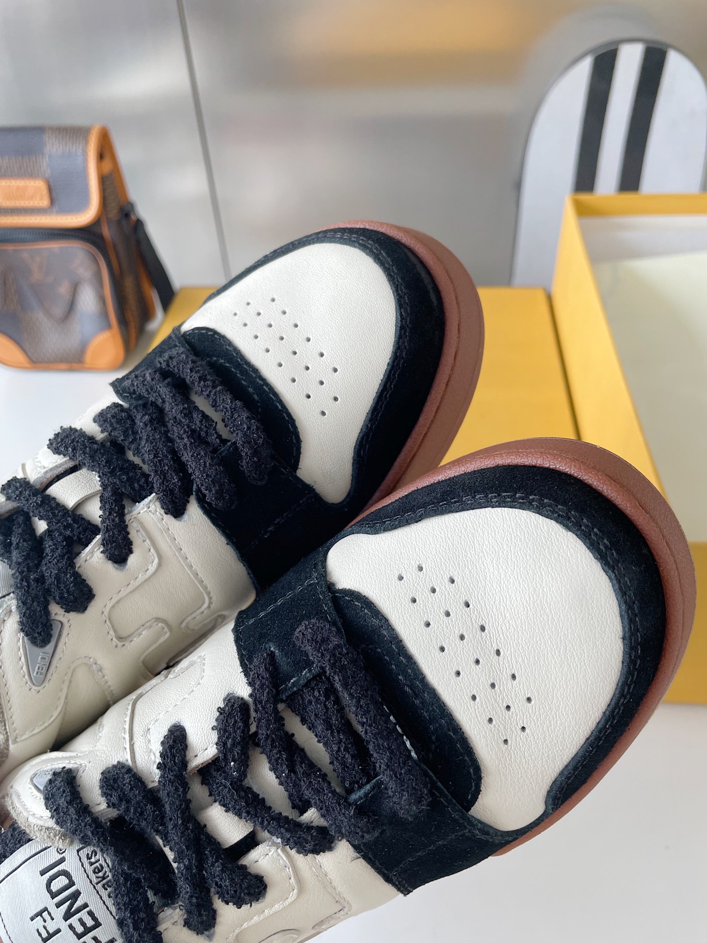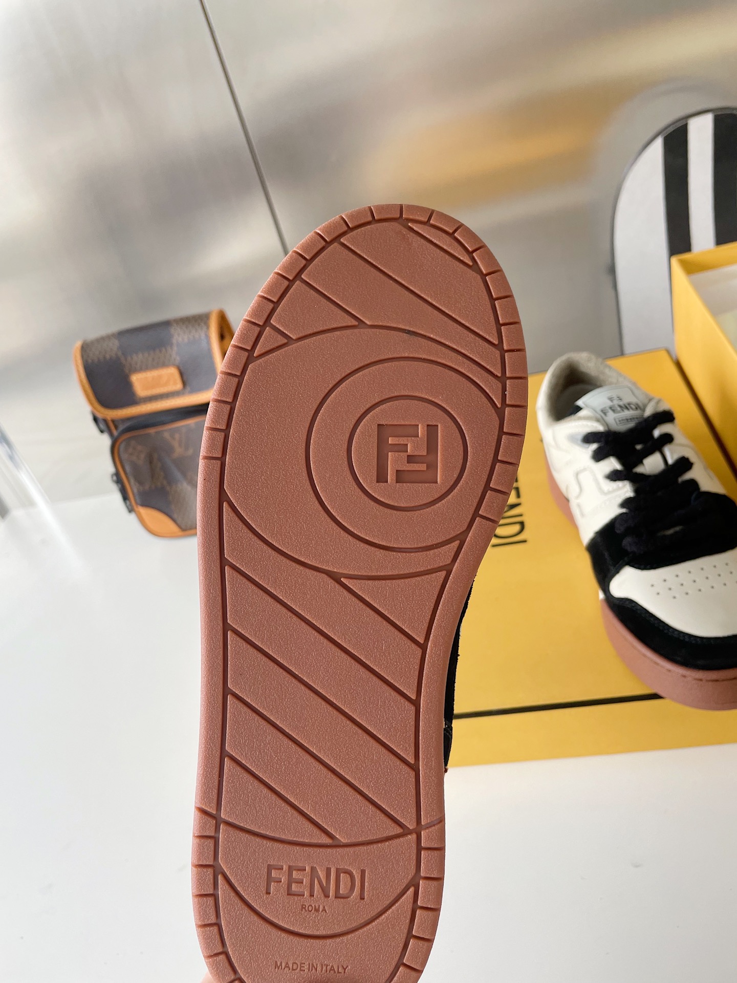 这款鞋子是AAAAA 1:1 质量 (非常棒). 使用了和原版一模一样的材料. 商标部分也保持了和芬迪/Fendi一样. 图片拍摄是实物鞋子拍摄, 您所收到的实物保证和我们图片一模一样.