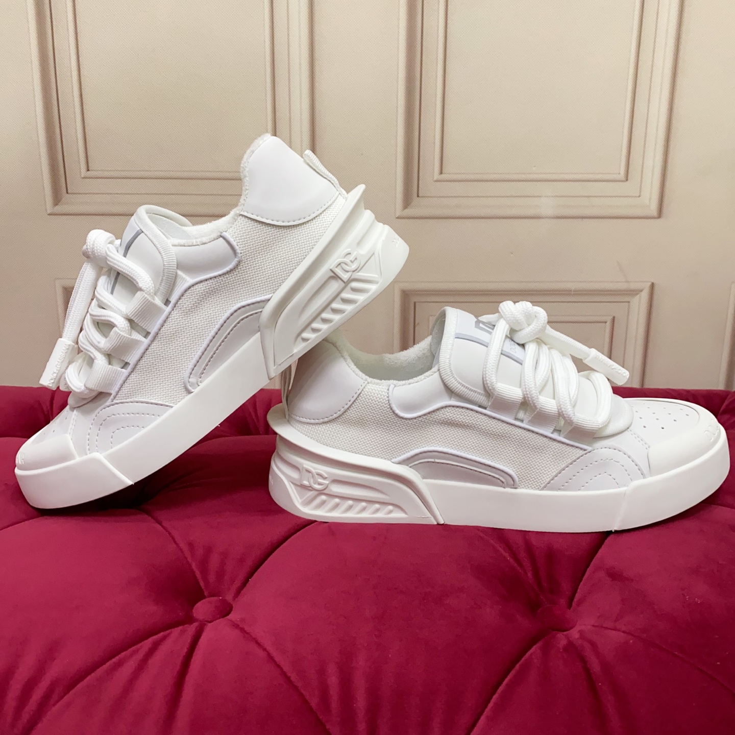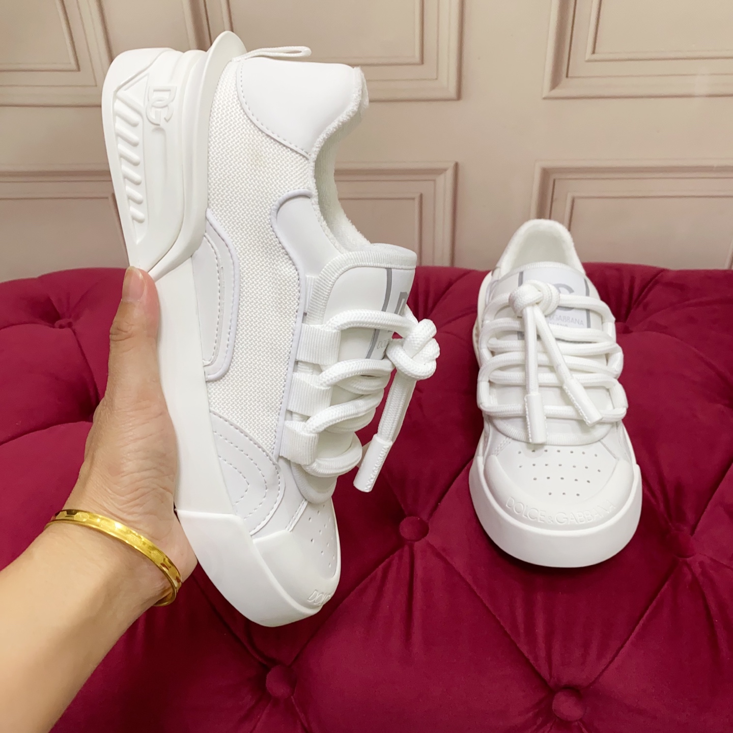 这款鞋子是AAAAA 1:1 质量 (非常棒). 使用了和原版一模一样的材料. 商标部分也保持了和杜嘉班纳/Dolce&Gabbana一样. 图片拍摄是实物鞋子拍摄, 您所收到的实物保证和我们图片一模一样.