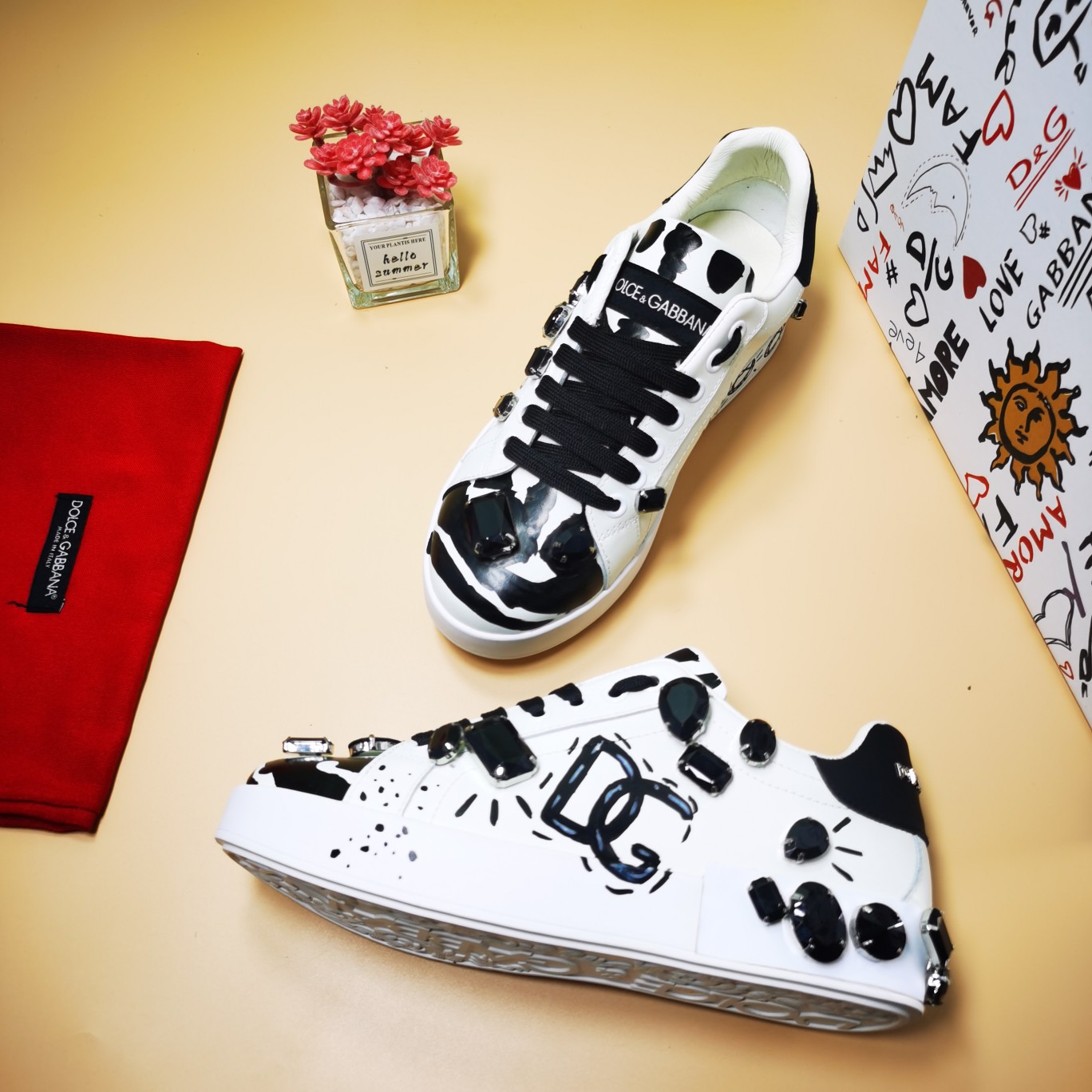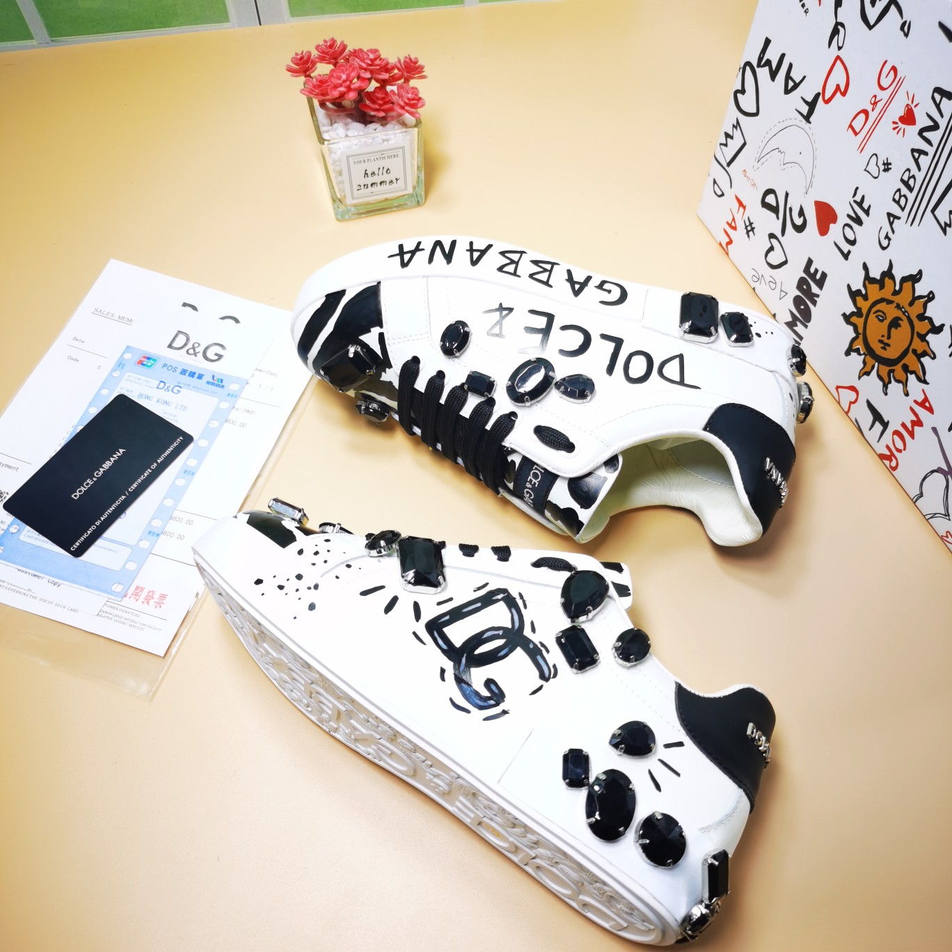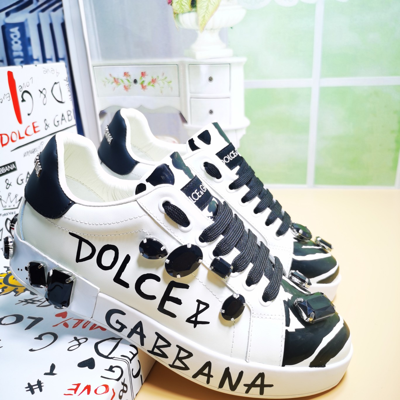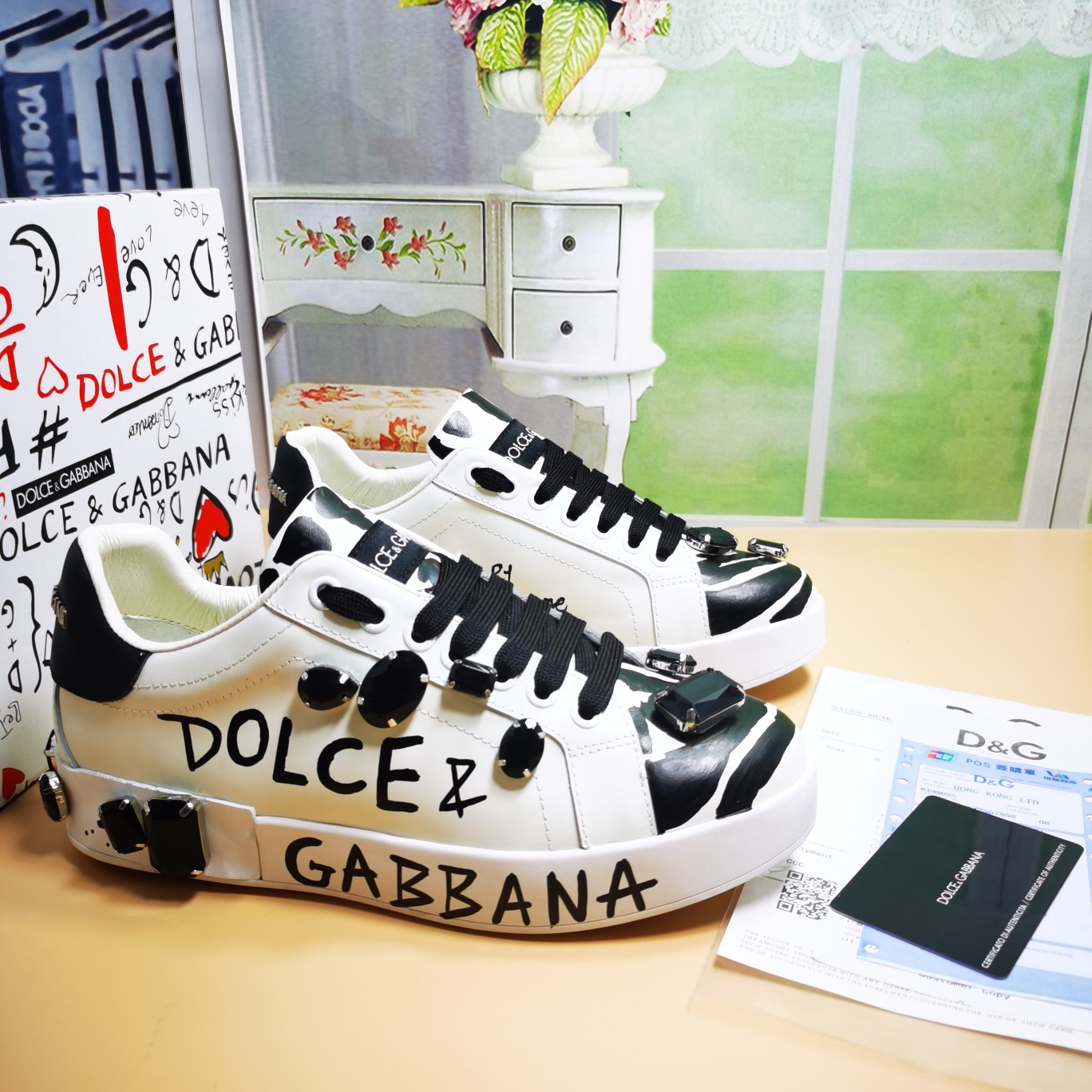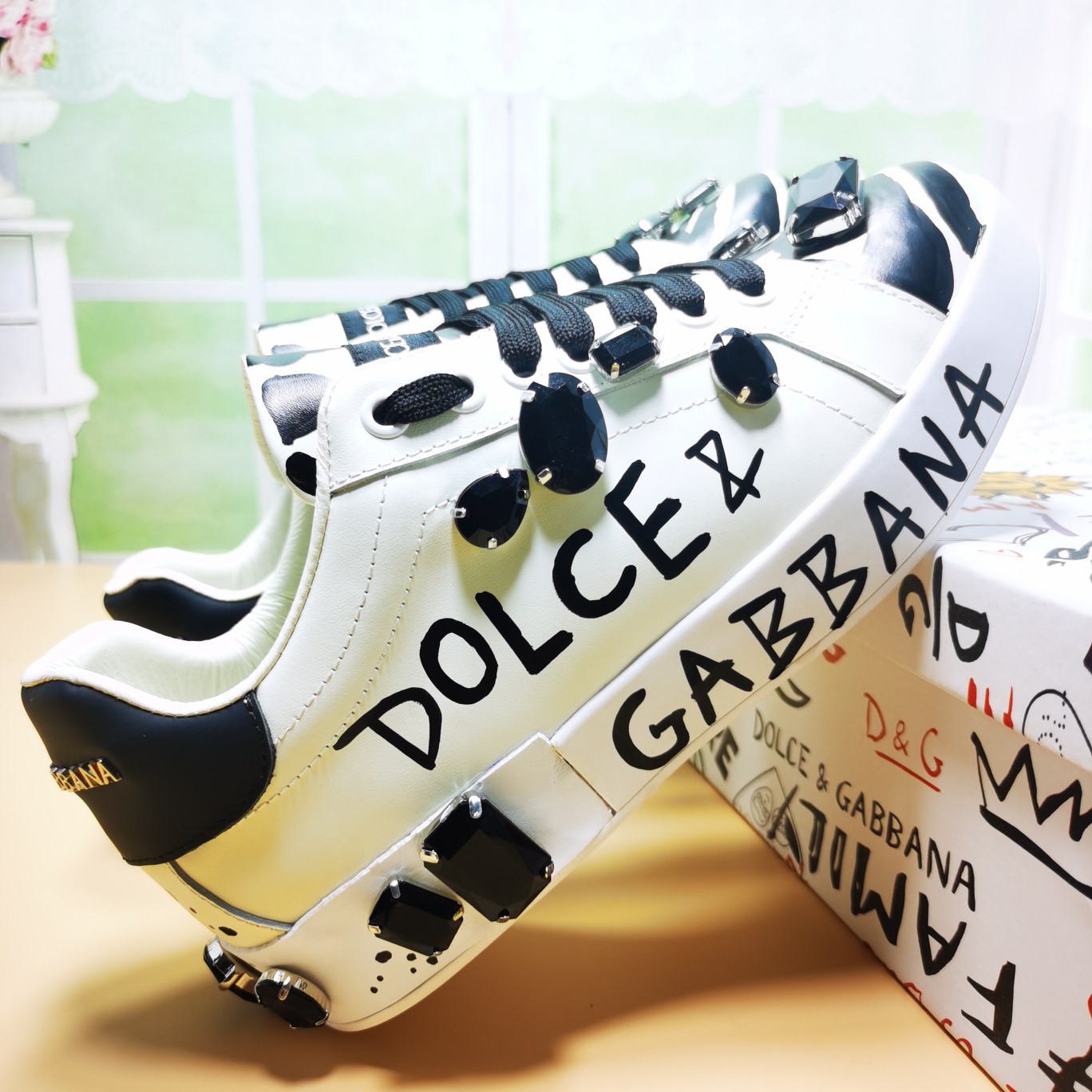 这款鞋子是AAAAA 1:1 质量 (非常棒). 使用了和原版一模一样的材料. 商标部分也保持了和杜嘉班纳/Dolce&Gabbana一样. 图片拍摄是实物鞋子拍摄, 您所收到的实物保证和我们图片一模一样.