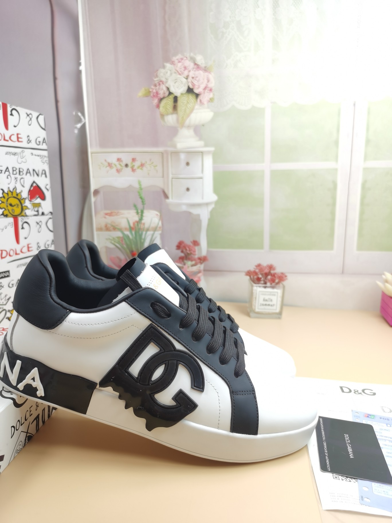 这款鞋子是AAAAA 1:1 质量 (非常棒). 使用了和原版一模一样的材料. 商标部分也保持了和杜嘉班纳/Dolce&Gabbana一样. 图片拍摄是实物鞋子拍摄, 您所收到的实物保证和我们图片一模一样.