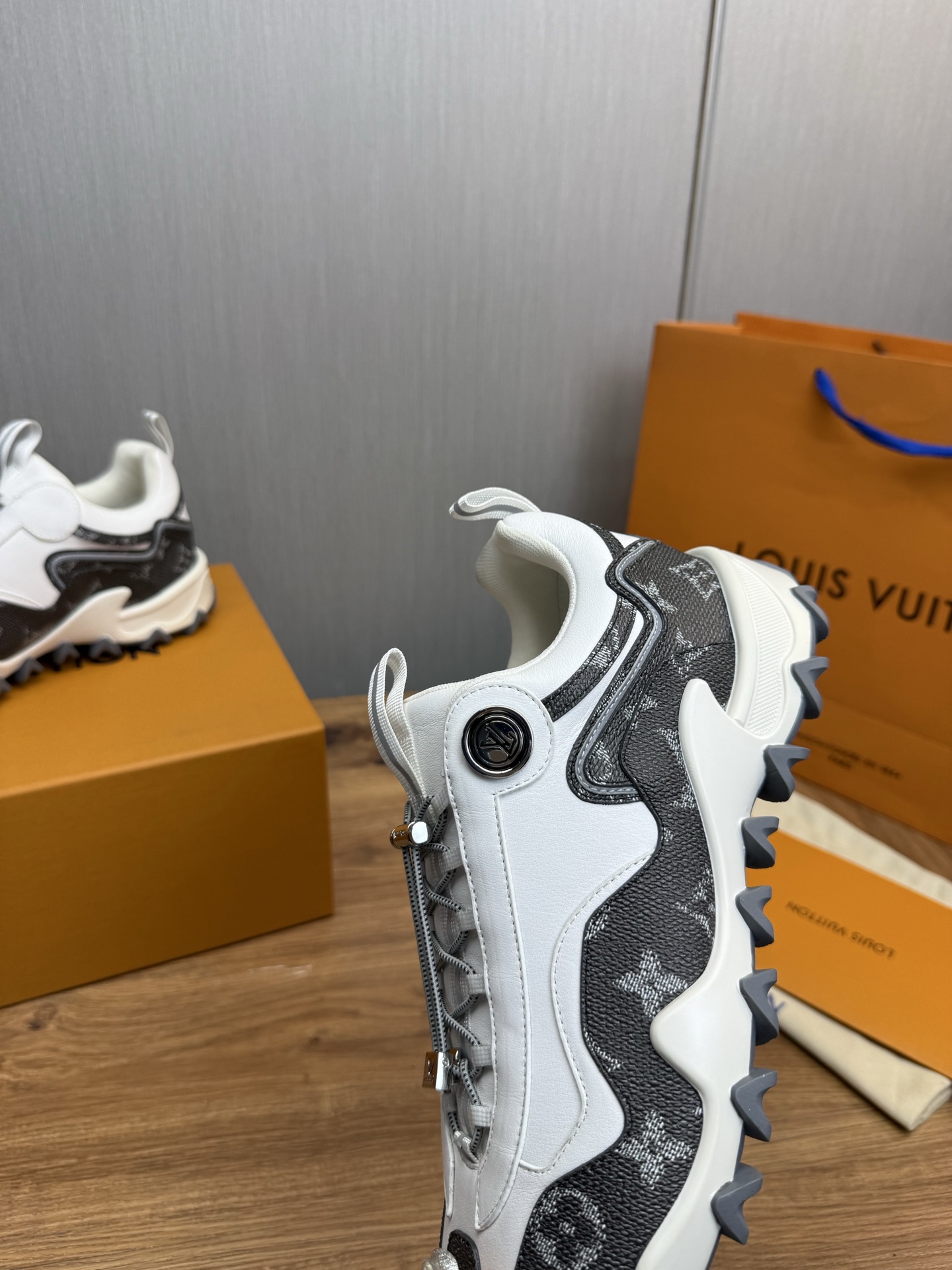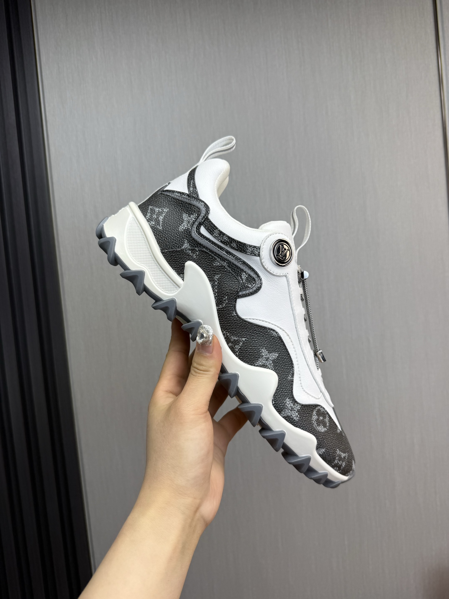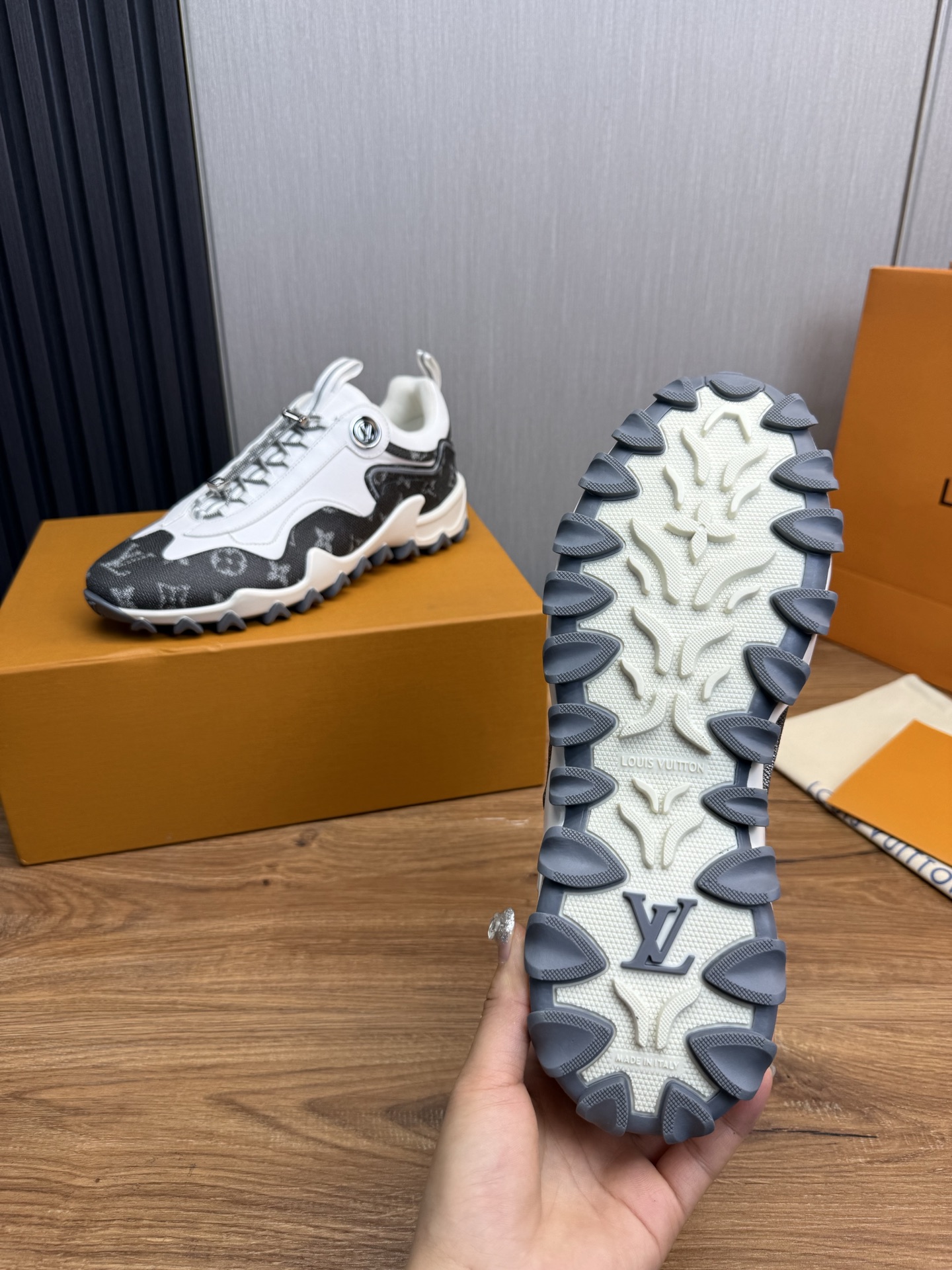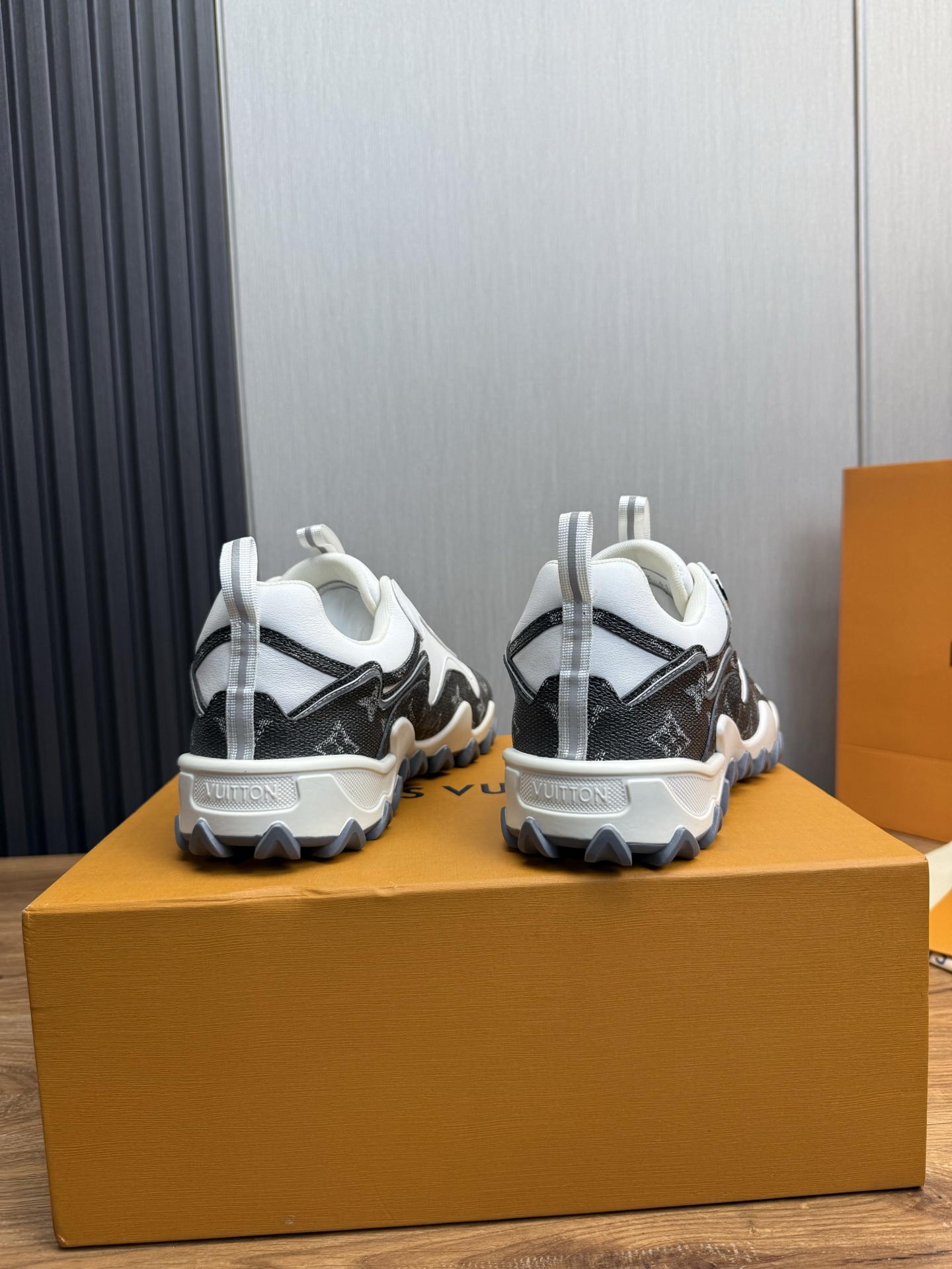 这款鞋子是AAAAA 1:1 质量 (非常棒). 使用了和原版一模一样的材料. 商标部分也保持了和路易威登/Louis Vuitton一样. 图片拍摄是实物鞋子拍摄, 您所收到的实物保证和我们图片一模一样.