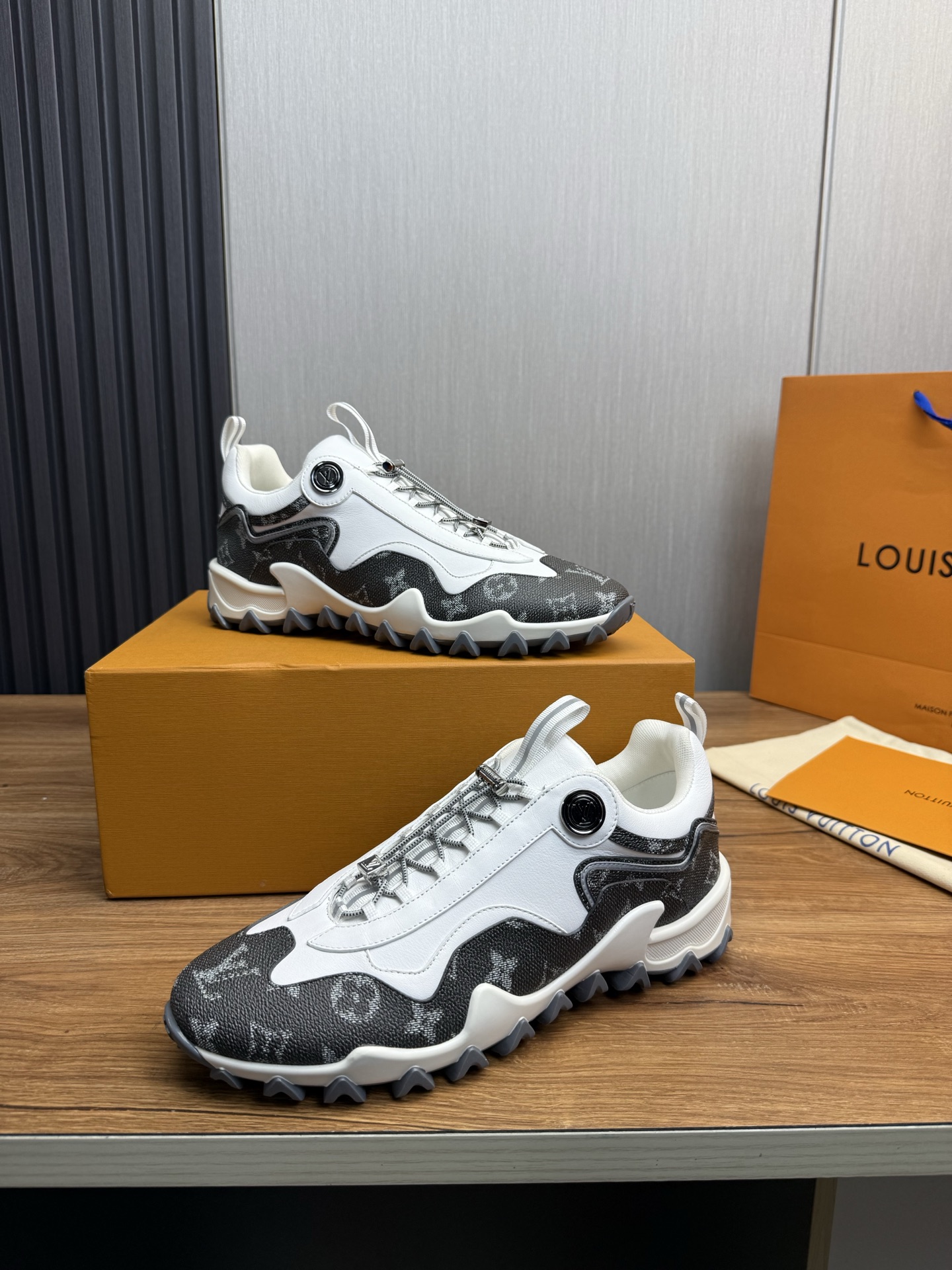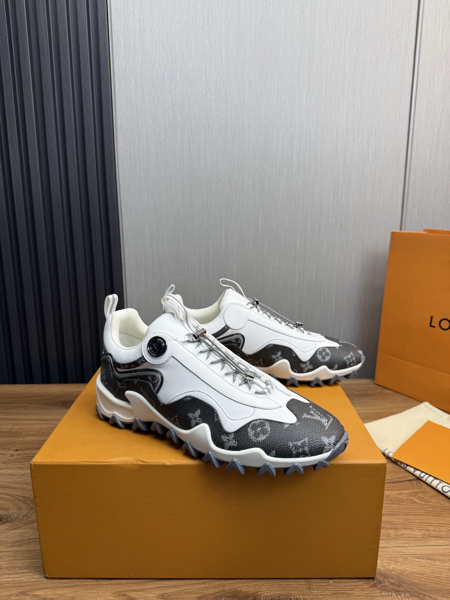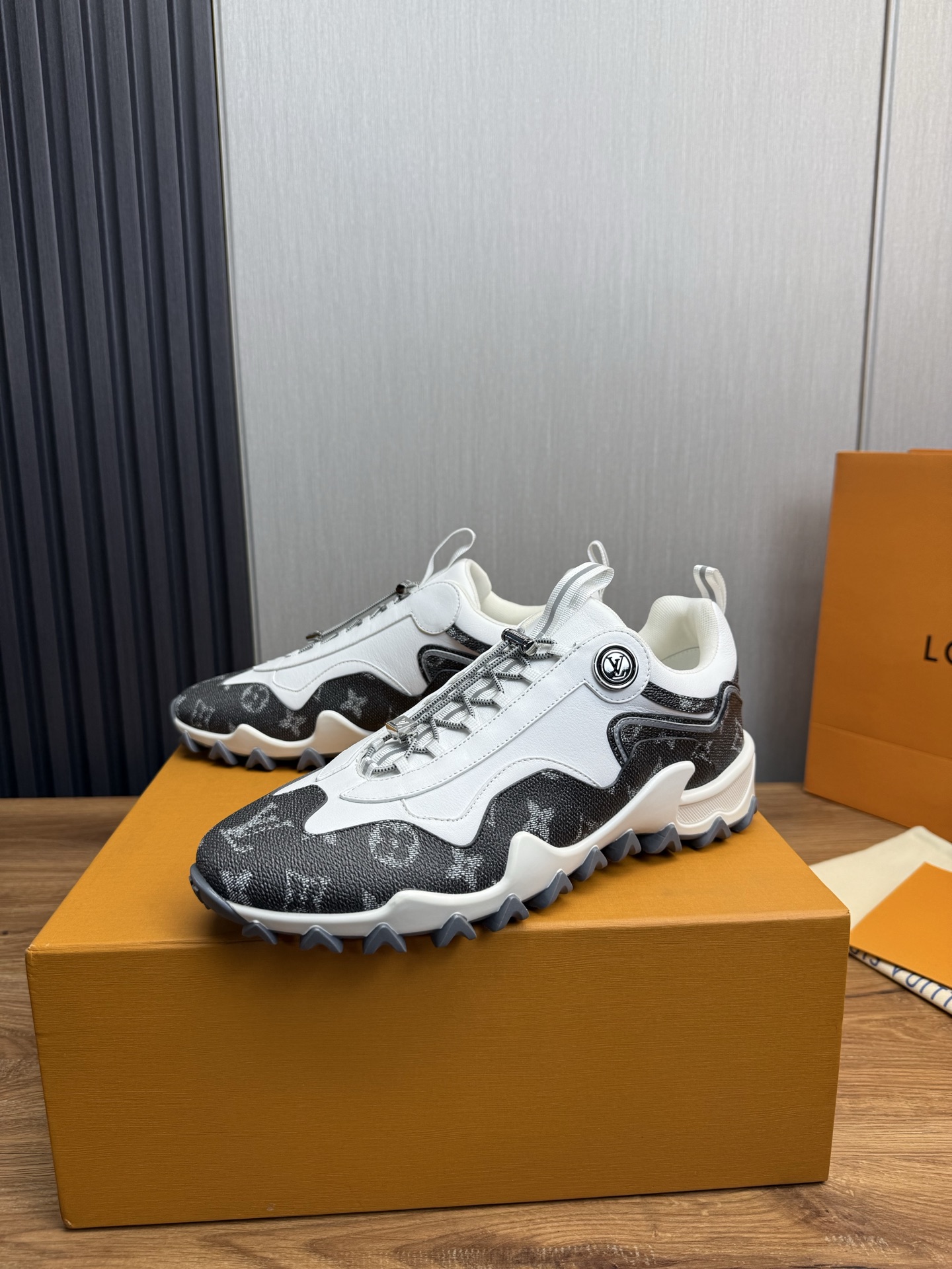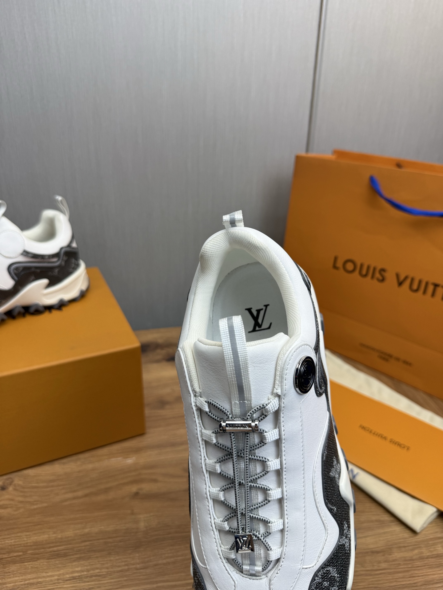 这款鞋子是AAAAA 1:1 质量 (非常棒). 使用了和原版一模一样的材料. 商标部分也保持了和路易威登/Louis Vuitton一样. 图片拍摄是实物鞋子拍摄, 您所收到的实物保证和我们图片一模一样.