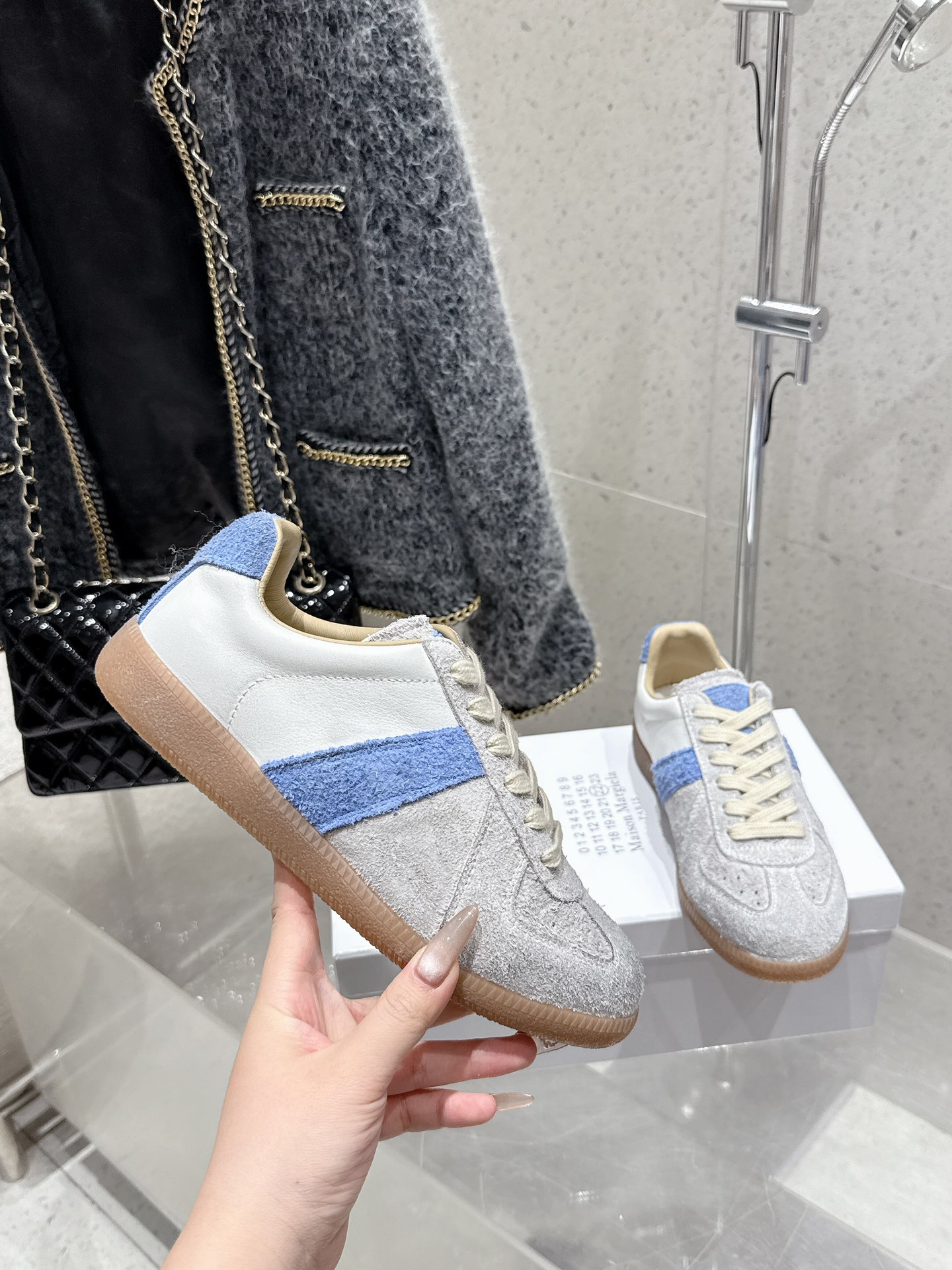 这款鞋子是AAAAA 1:1 质量 (非常棒). 使用了和原版一模一样的材料. 商标部分也保持了和Maison Margiela一样. 图片拍摄是实物鞋子拍摄, 您所收到的实物保证和我们图片一模一样.