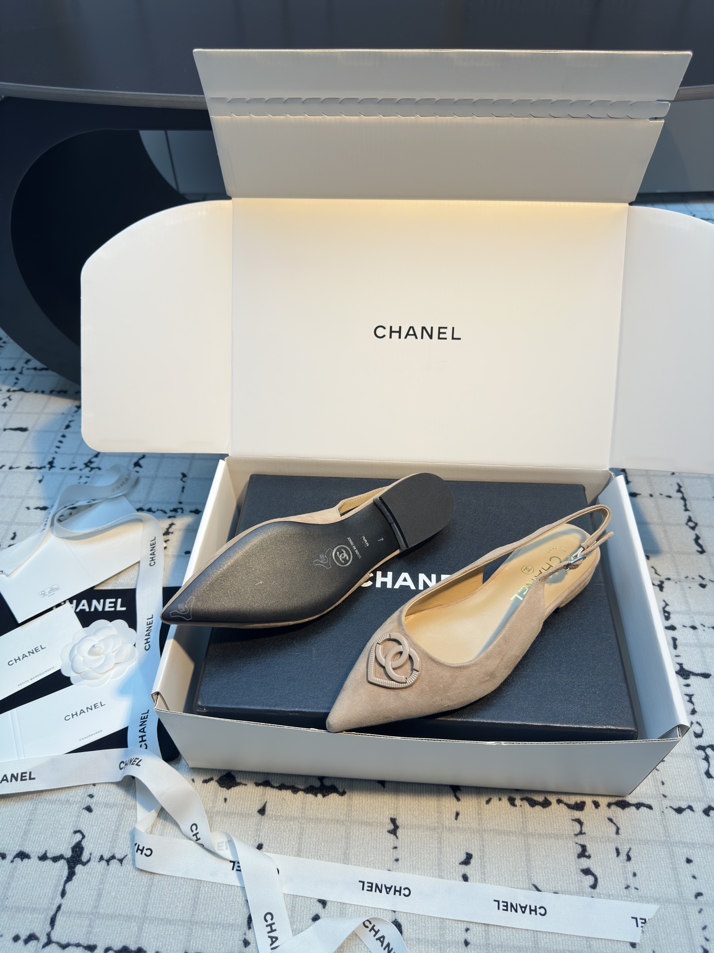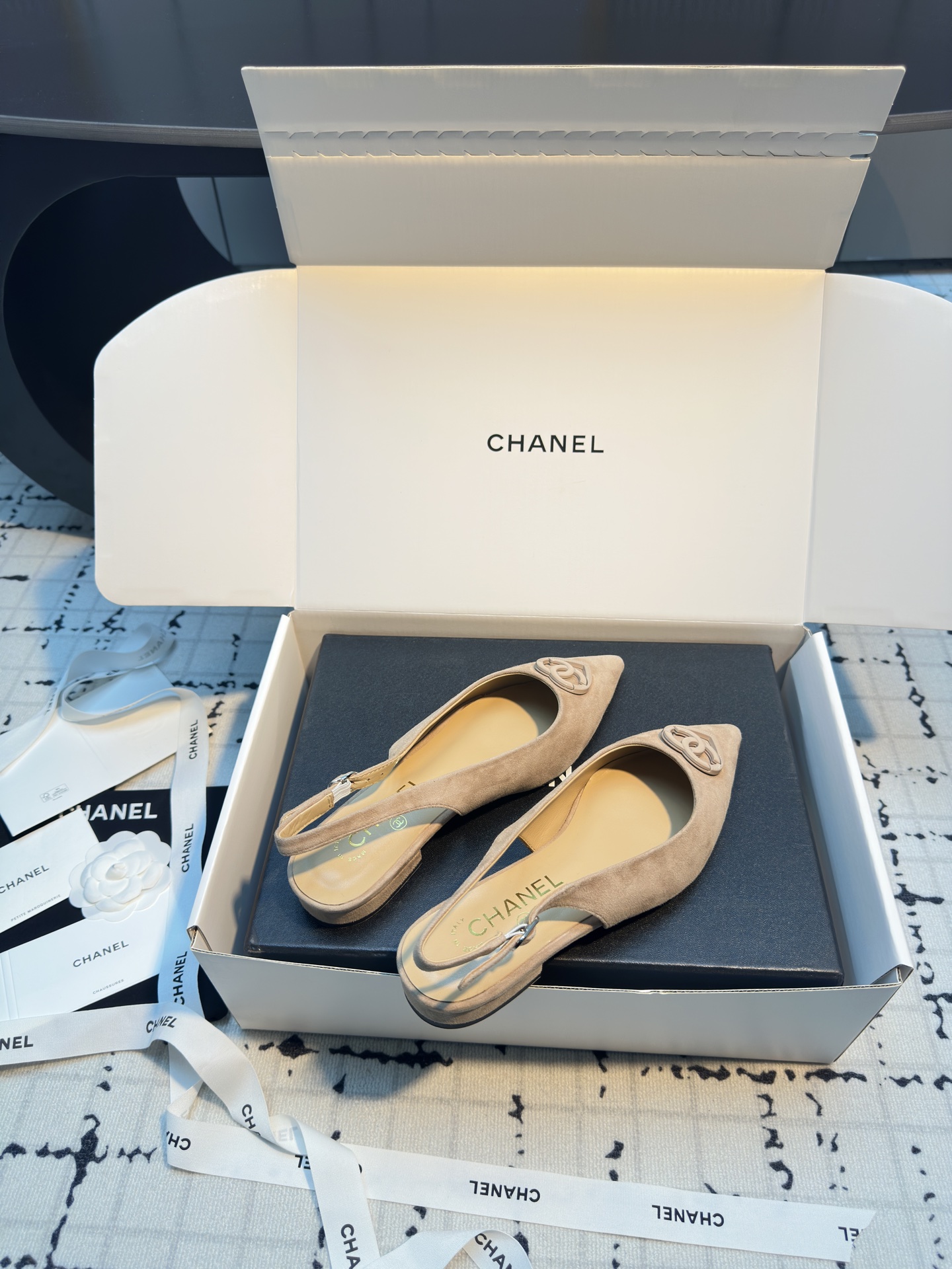 这款鞋子是AAAAA 1:1 质量 (非常棒). 使用了和原版一模一样的材料. 商标部分也保持了和香奈儿/Chanel一样. 图片拍摄是实物鞋子拍摄, 您所收到的实物保证和我们图片一模一样.