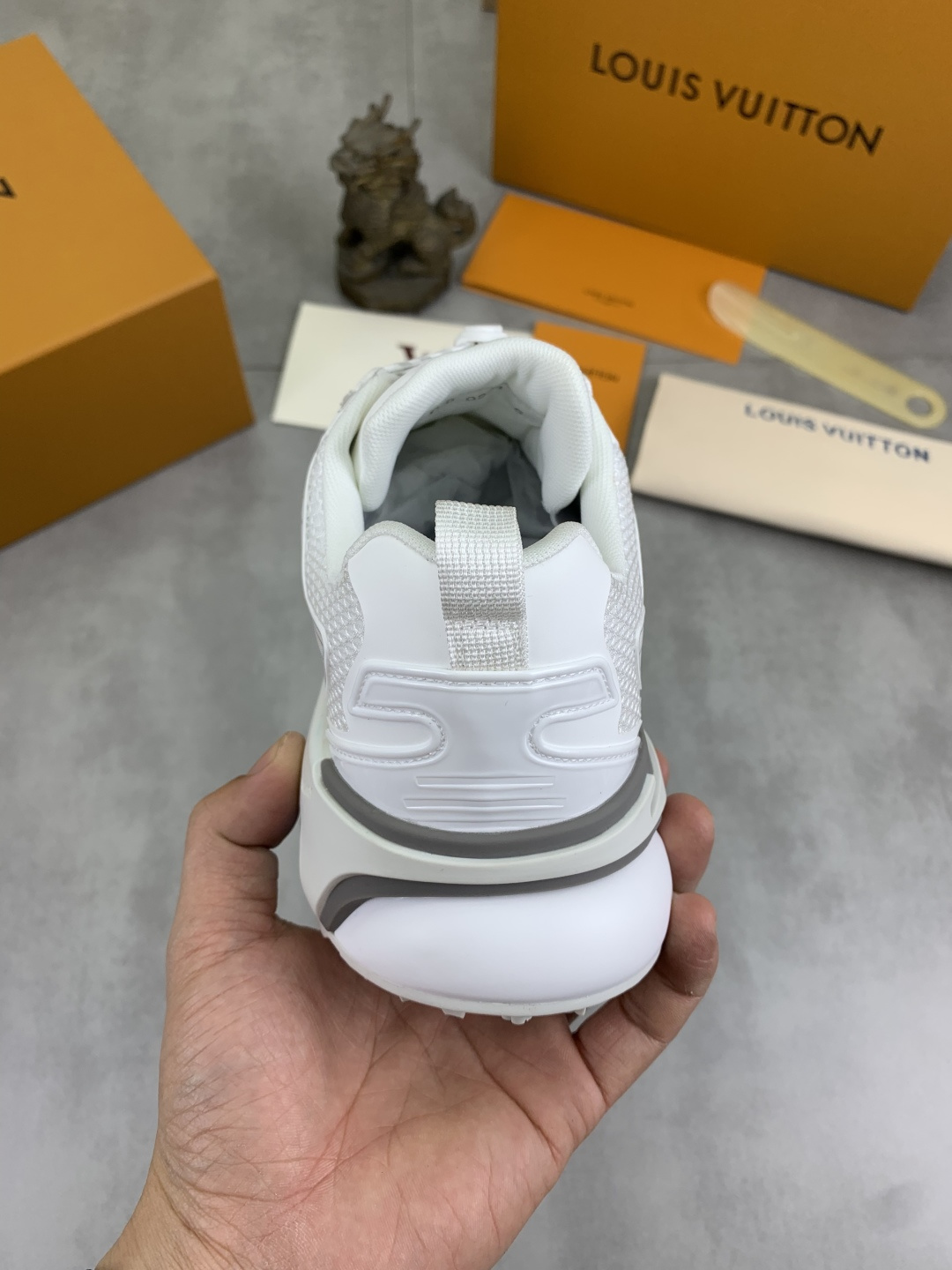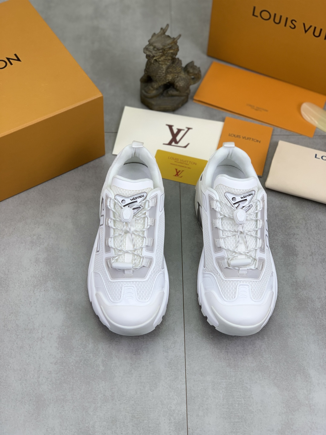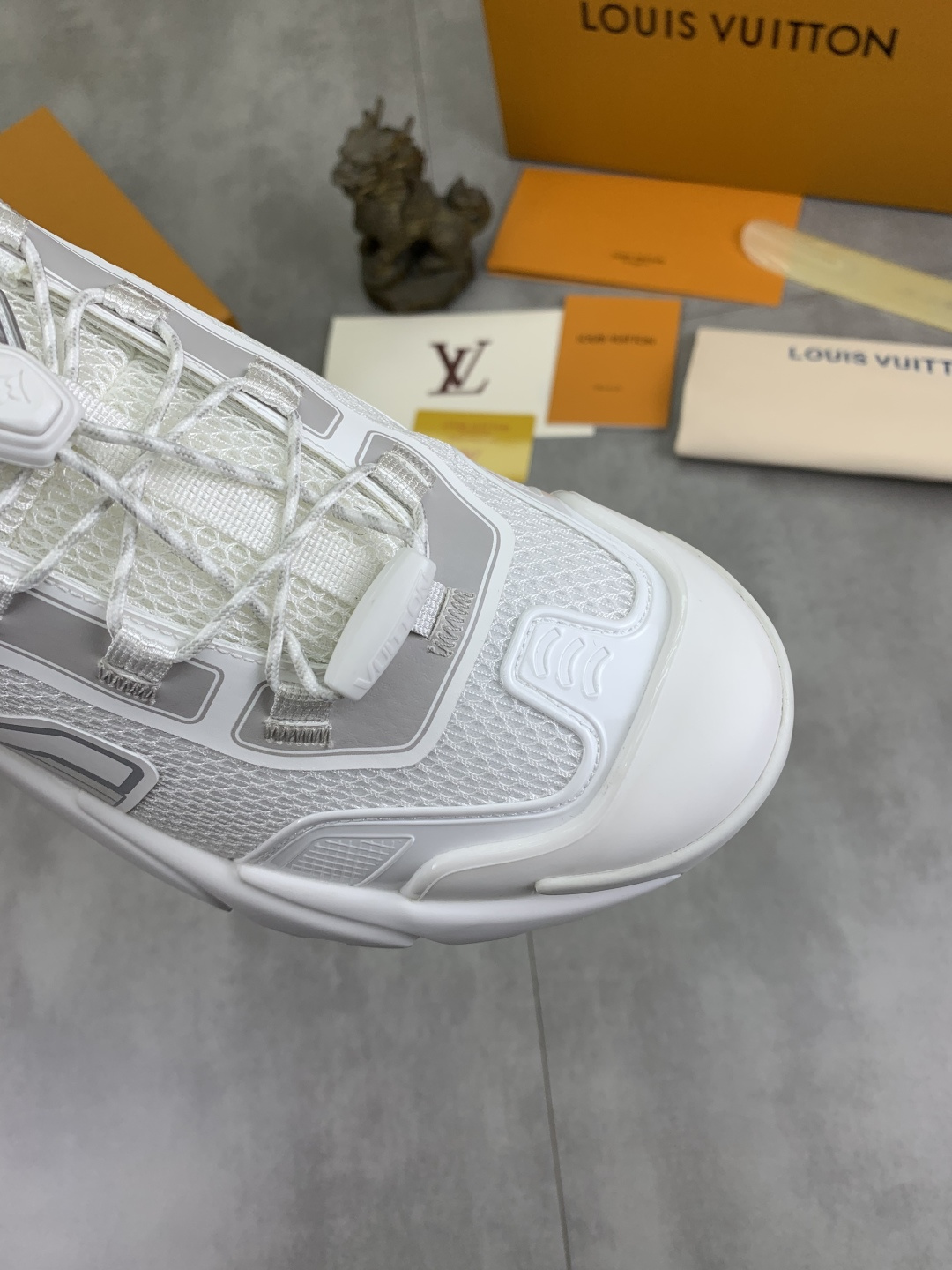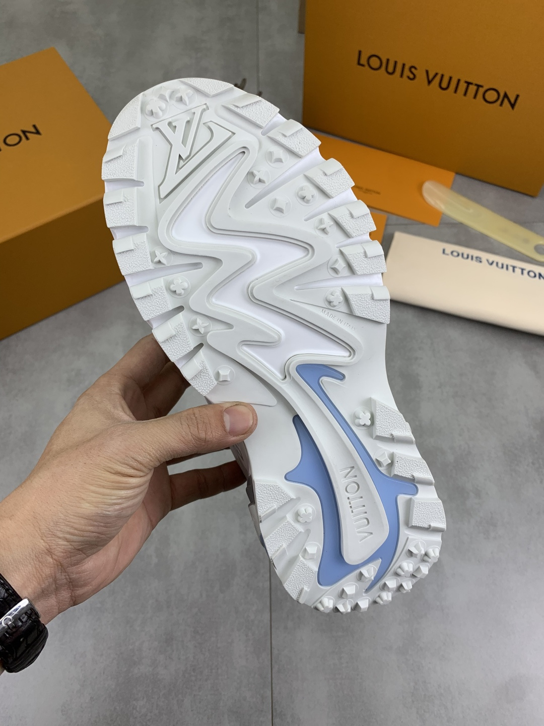这款鞋子是AAAAA 1:1 质量 (非常棒). 使用了和原版一模一样的材料. 商标部分也保持了和路易威登/Louis Vuitton一样. 图片拍摄是实物鞋子拍摄, 您所收到的实物保证和我们图片一模一样.