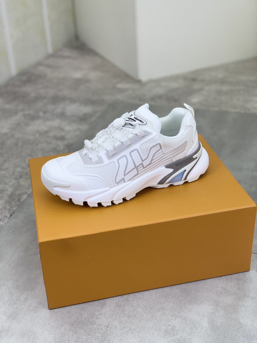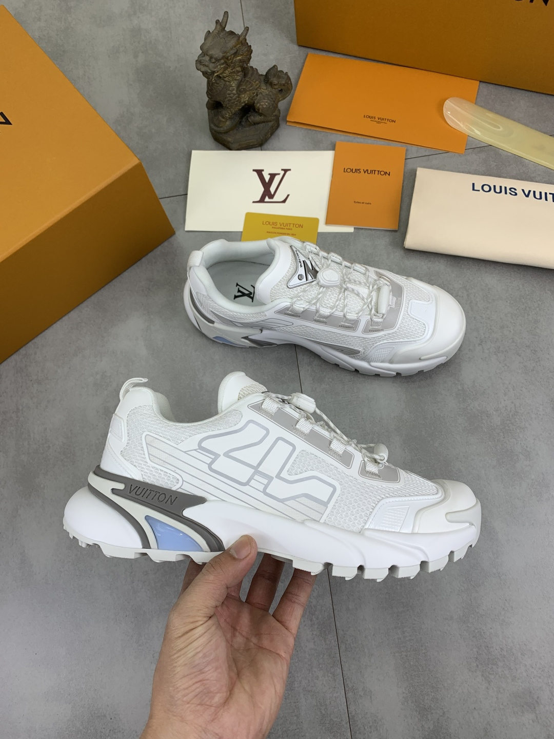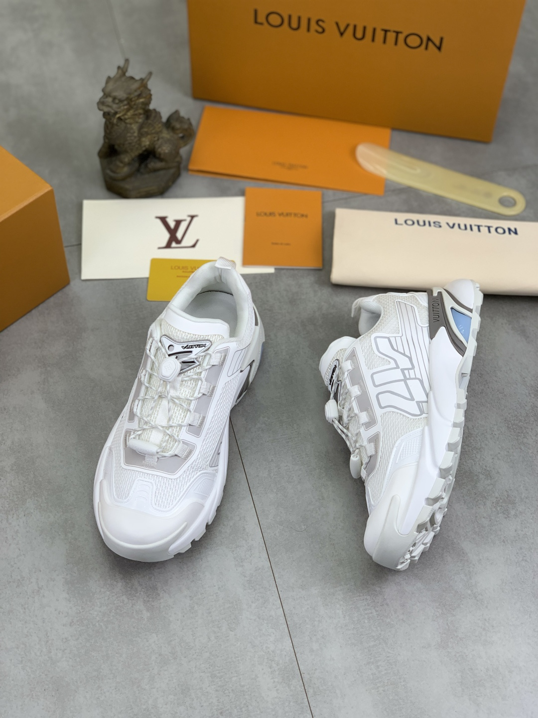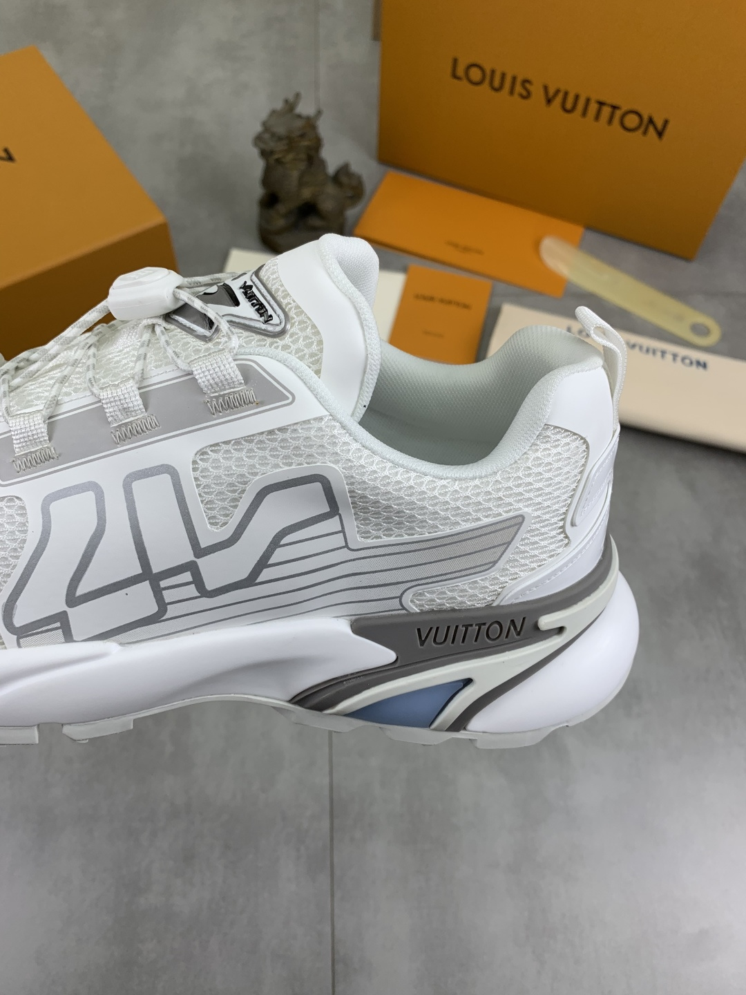 这款鞋子是AAAAA 1:1 质量 (非常棒). 使用了和原版一模一样的材料. 商标部分也保持了和路易威登/Louis Vuitton一样. 图片拍摄是实物鞋子拍摄, 您所收到的实物保证和我们图片一模一样.