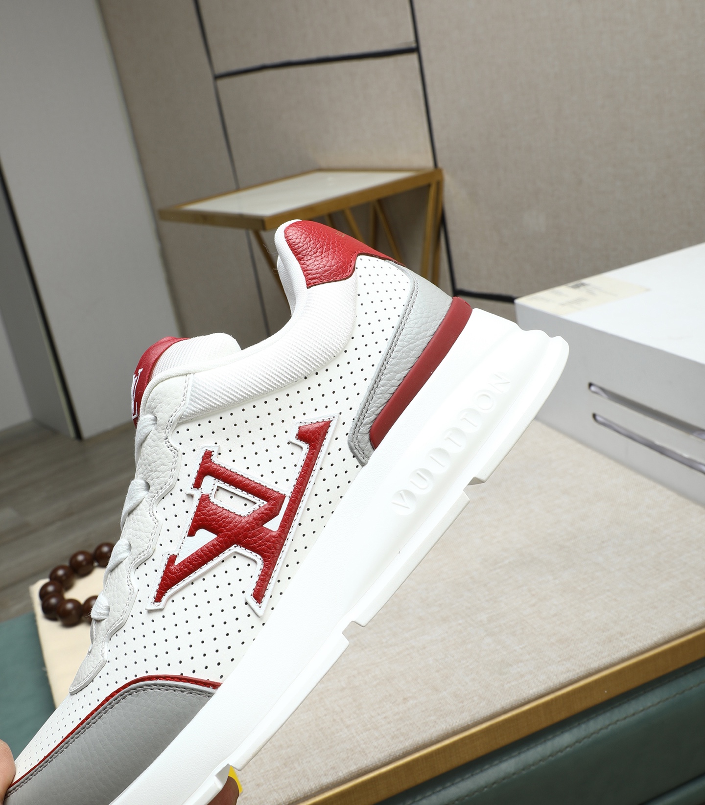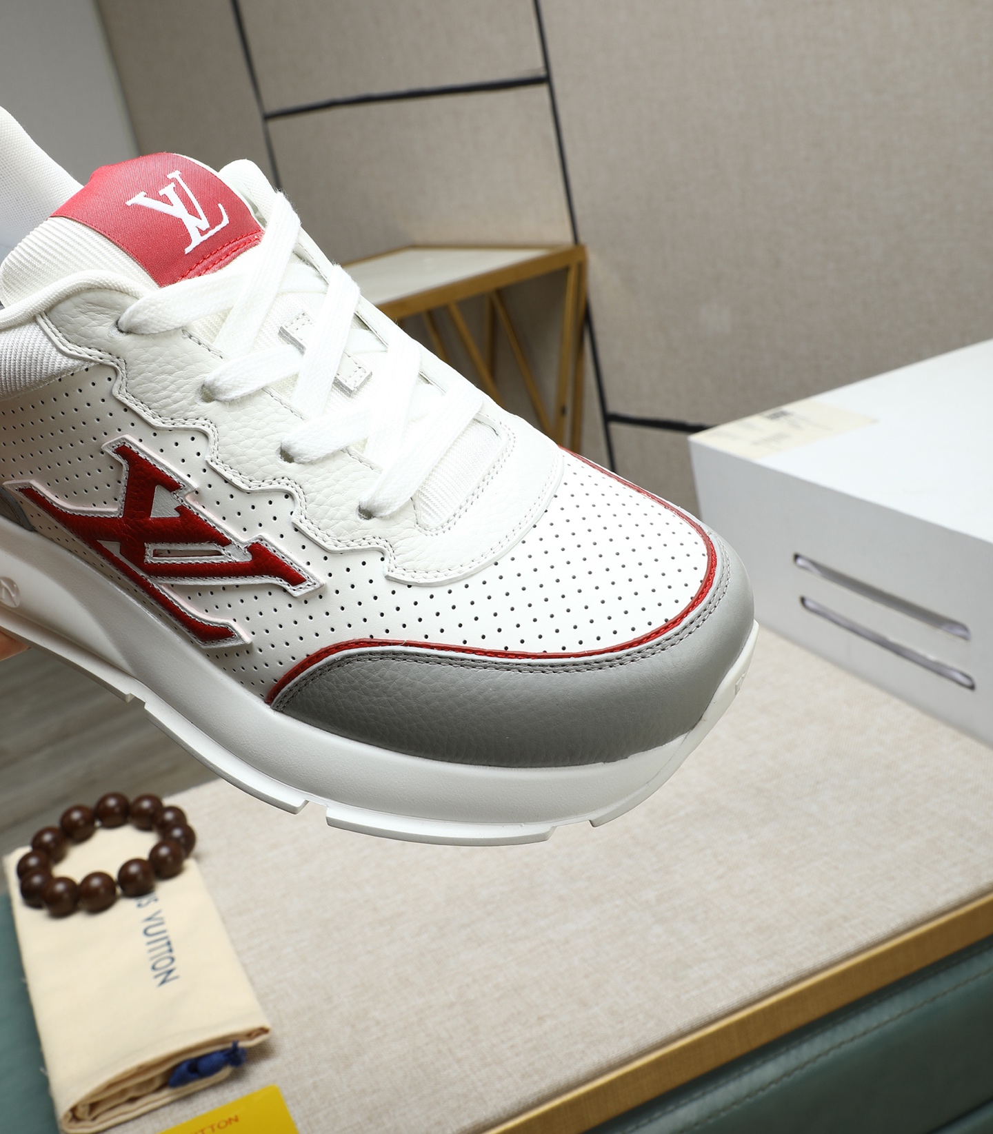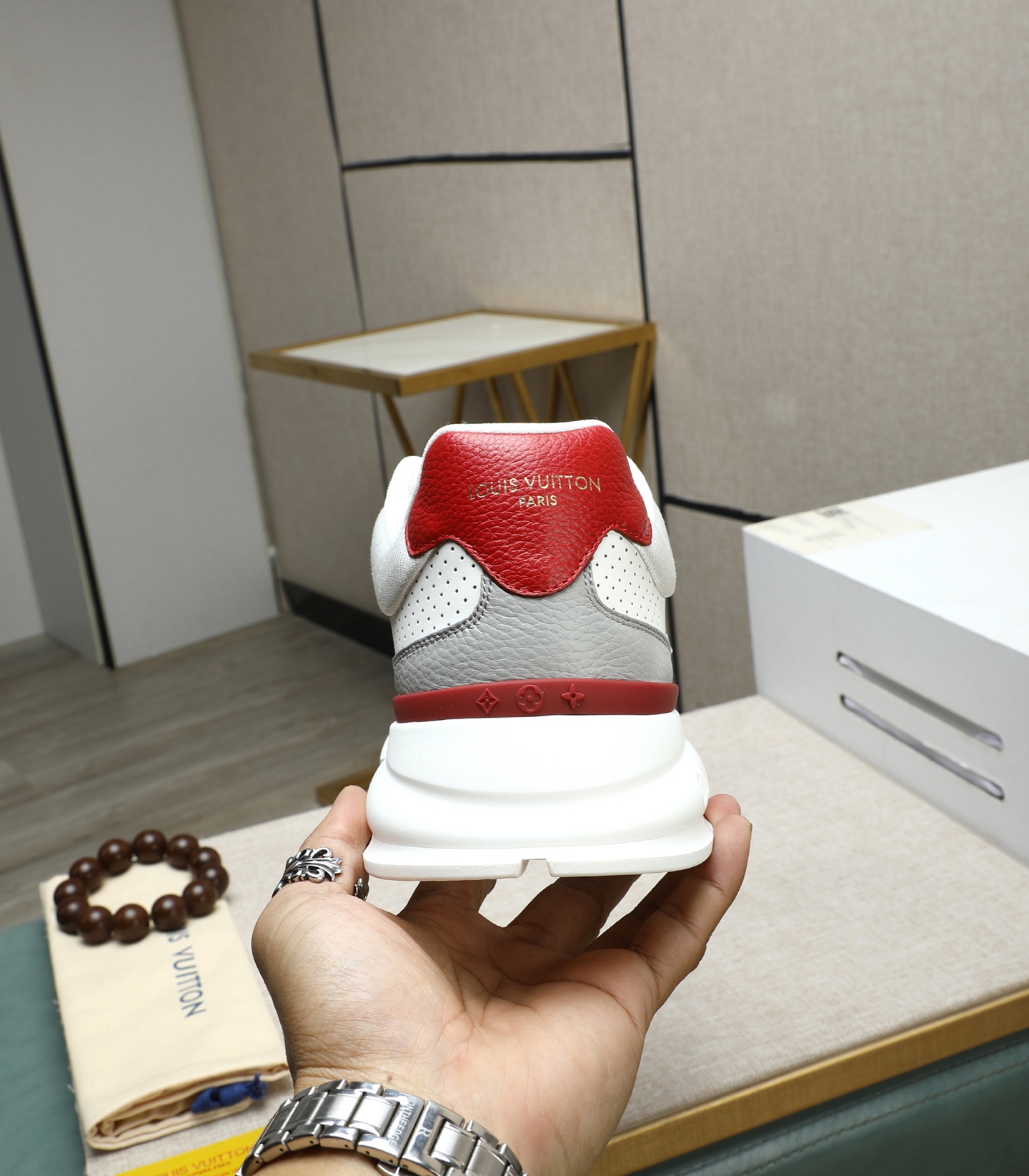 这款鞋子是AAAAA 1:1 质量 (非常棒). 使用了和原版一模一样的材料. 商标部分也保持了和路易威登/Louis Vuitton一样. 图片拍摄是实物鞋子拍摄, 您所收到的实物保证和我们图片一模一样.