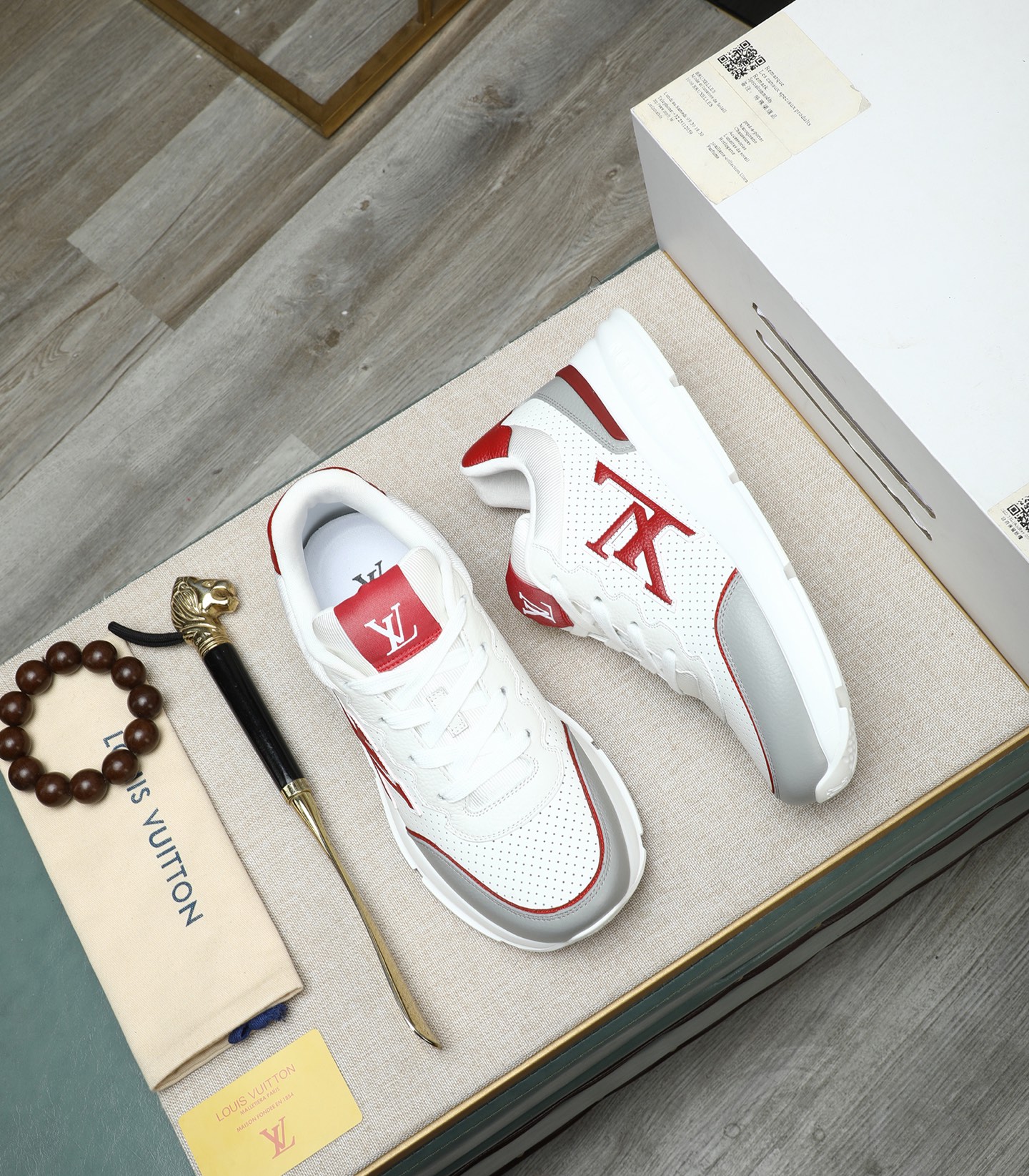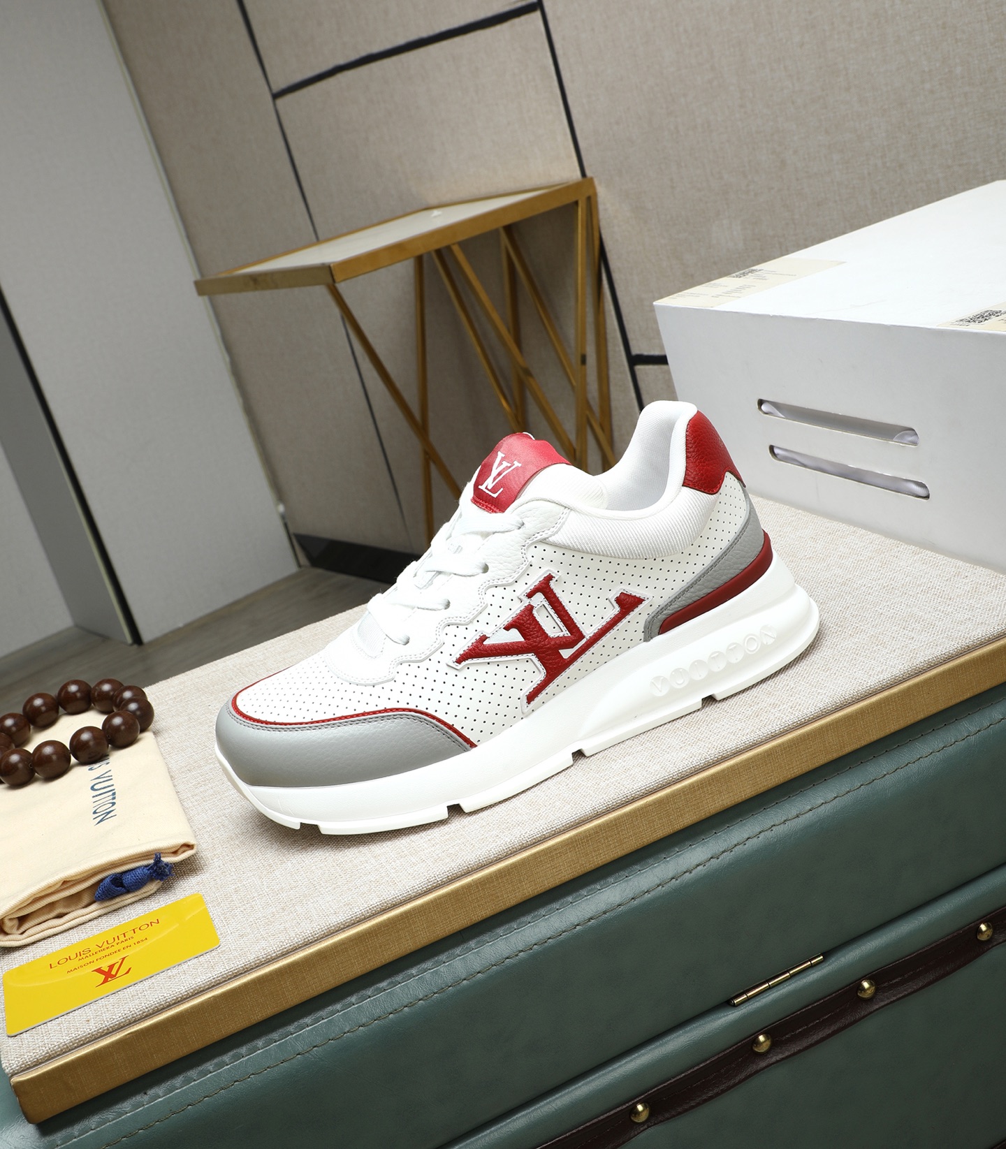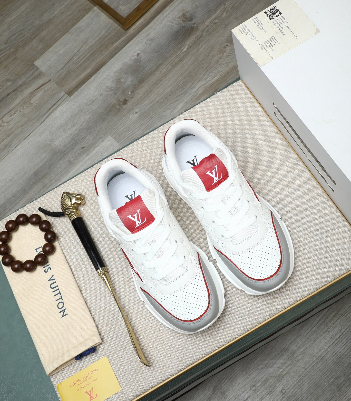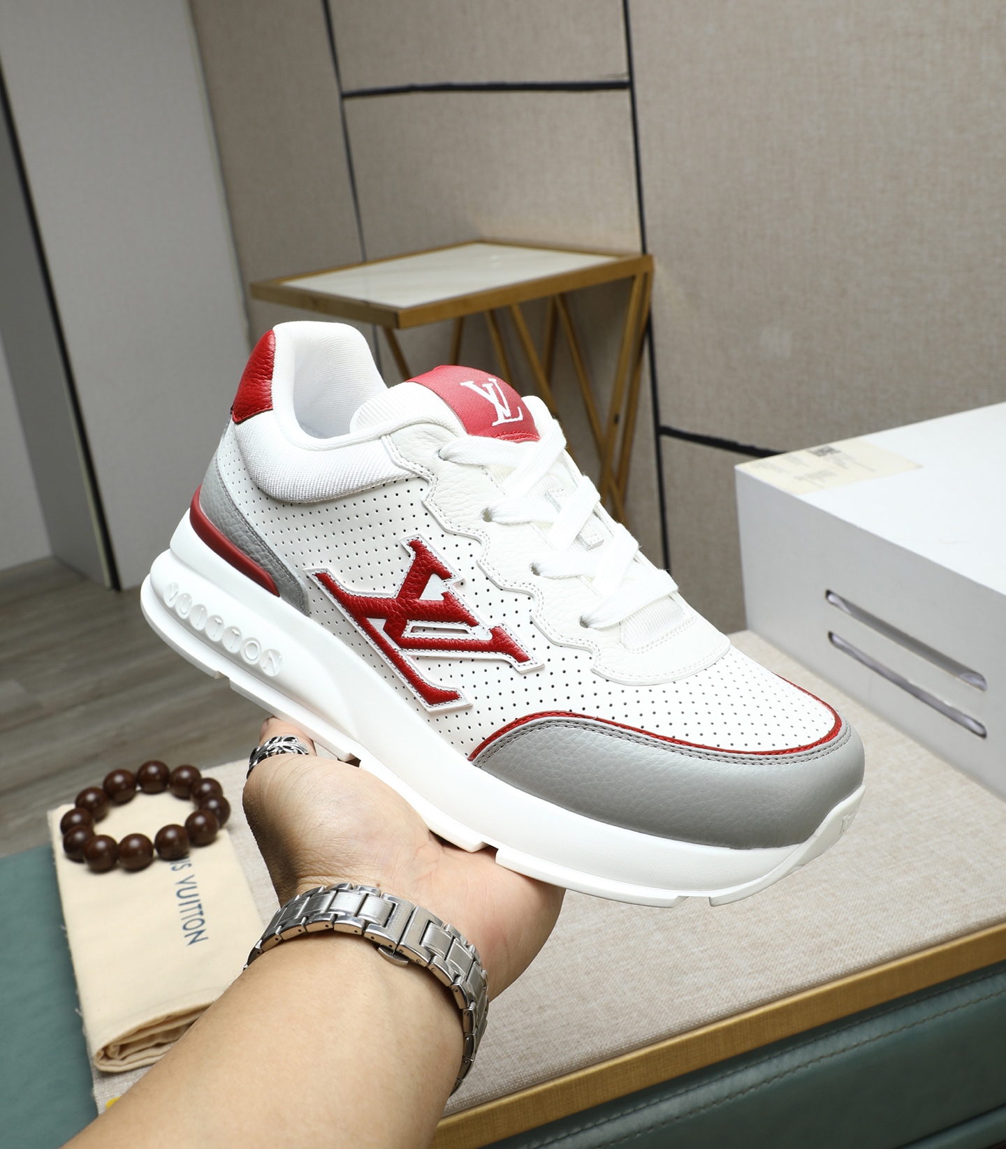 这款鞋子是AAAAA 1:1 质量 (非常棒). 使用了和原版一模一样的材料. 商标部分也保持了和路易威登/Louis Vuitton一样. 图片拍摄是实物鞋子拍摄, 您所收到的实物保证和我们图片一模一样.