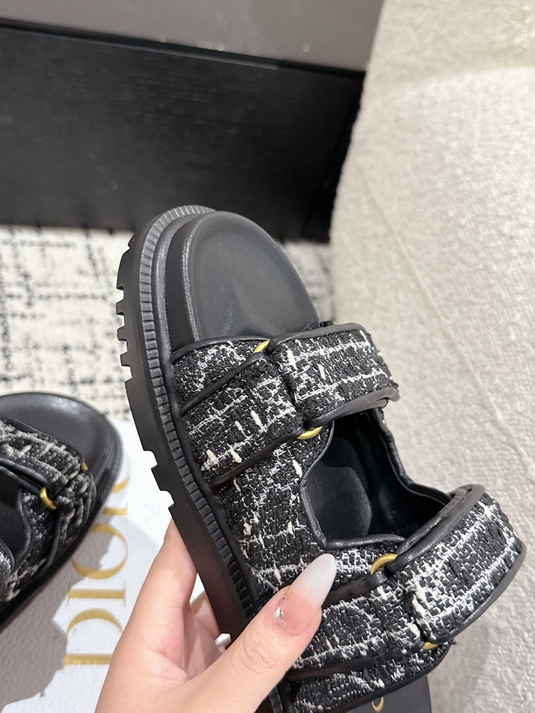 这款鞋子是AAAAA 1:1 质量 (非常棒). 使用了和原版一模一样的材料. 商标部分也保持了和香奈儿/Chanel一样. 图片拍摄是实物鞋子拍摄, 您所收到的实物保证和我们图片一模一样.