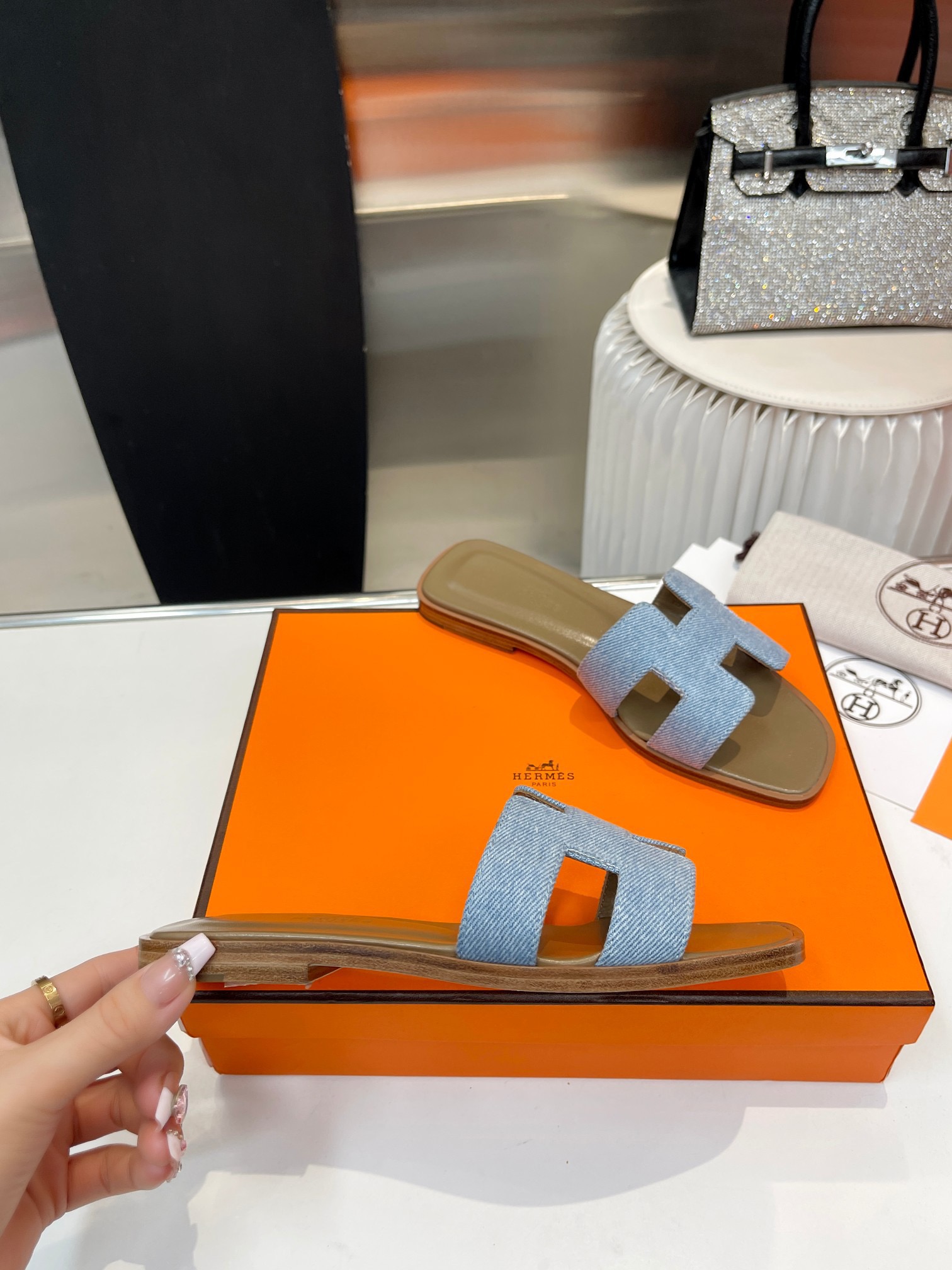这款鞋子是AAAAA 1:1 质量 (非常棒). 使用了和原版一模一样的材料. 商标部分也保持了和爱马仕/Hermes一样. 图片拍摄是实物鞋子拍摄, 您所收到的实物保证和我们图片一模一样.