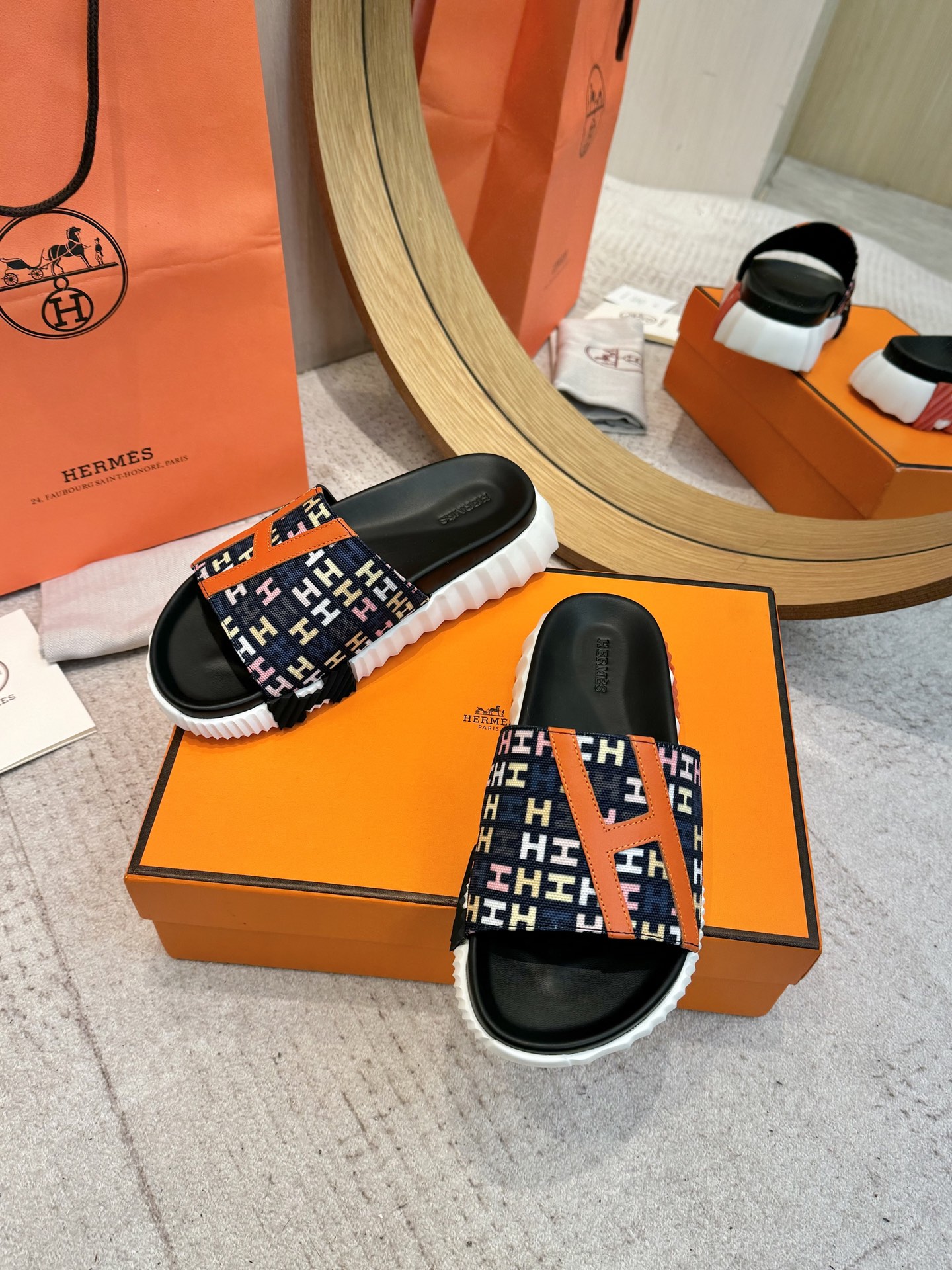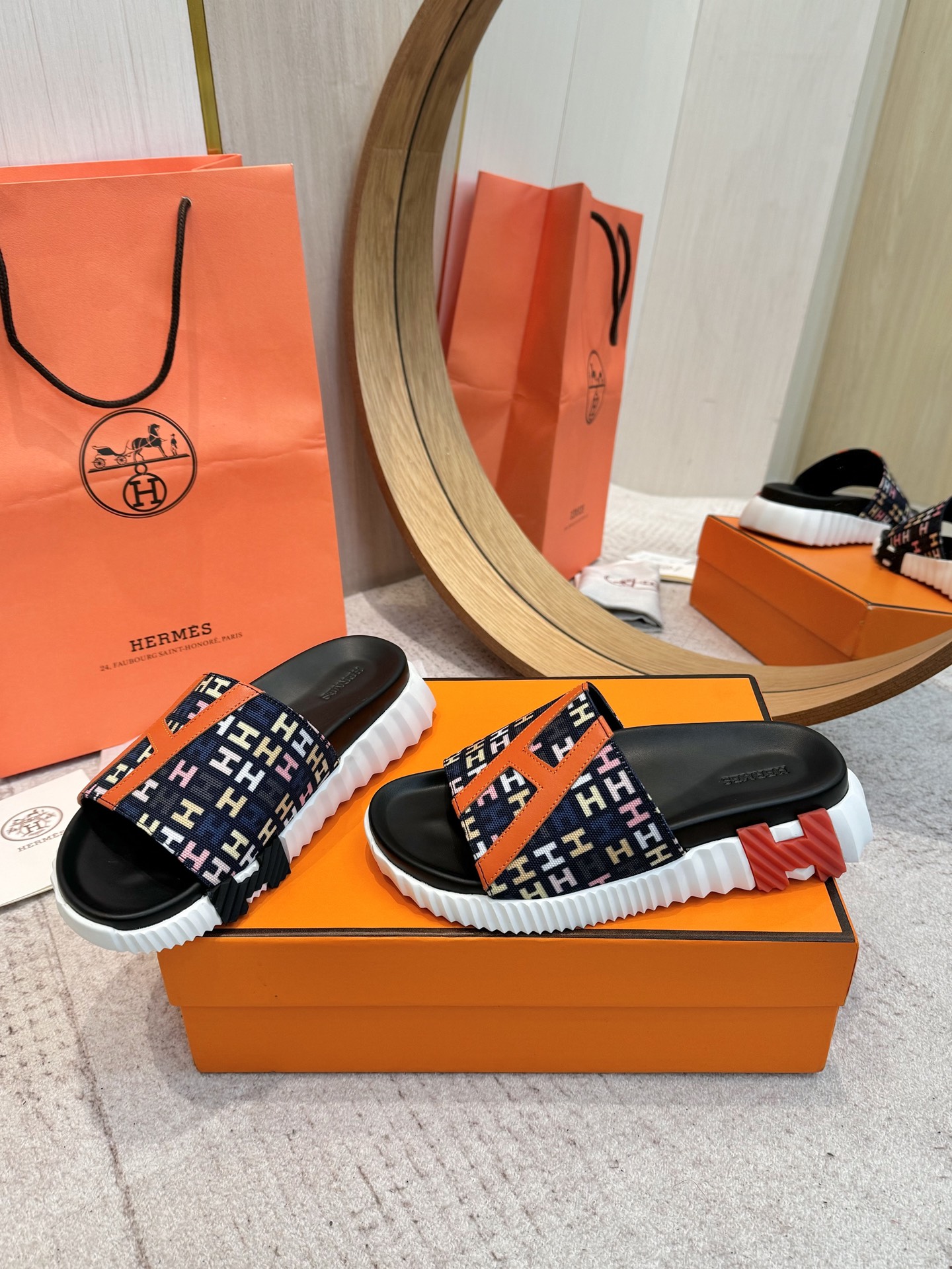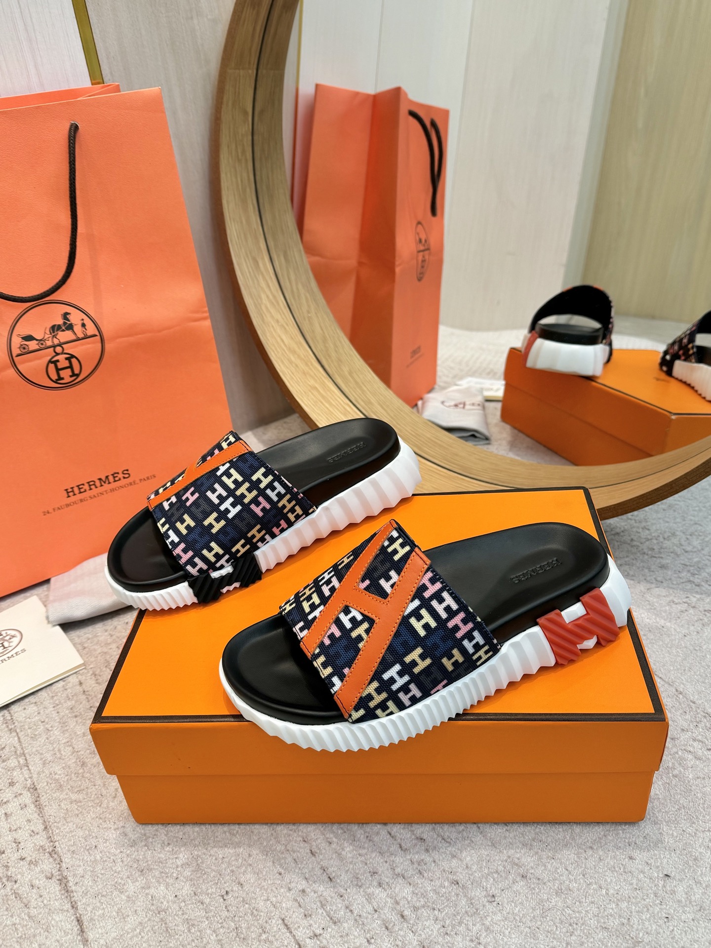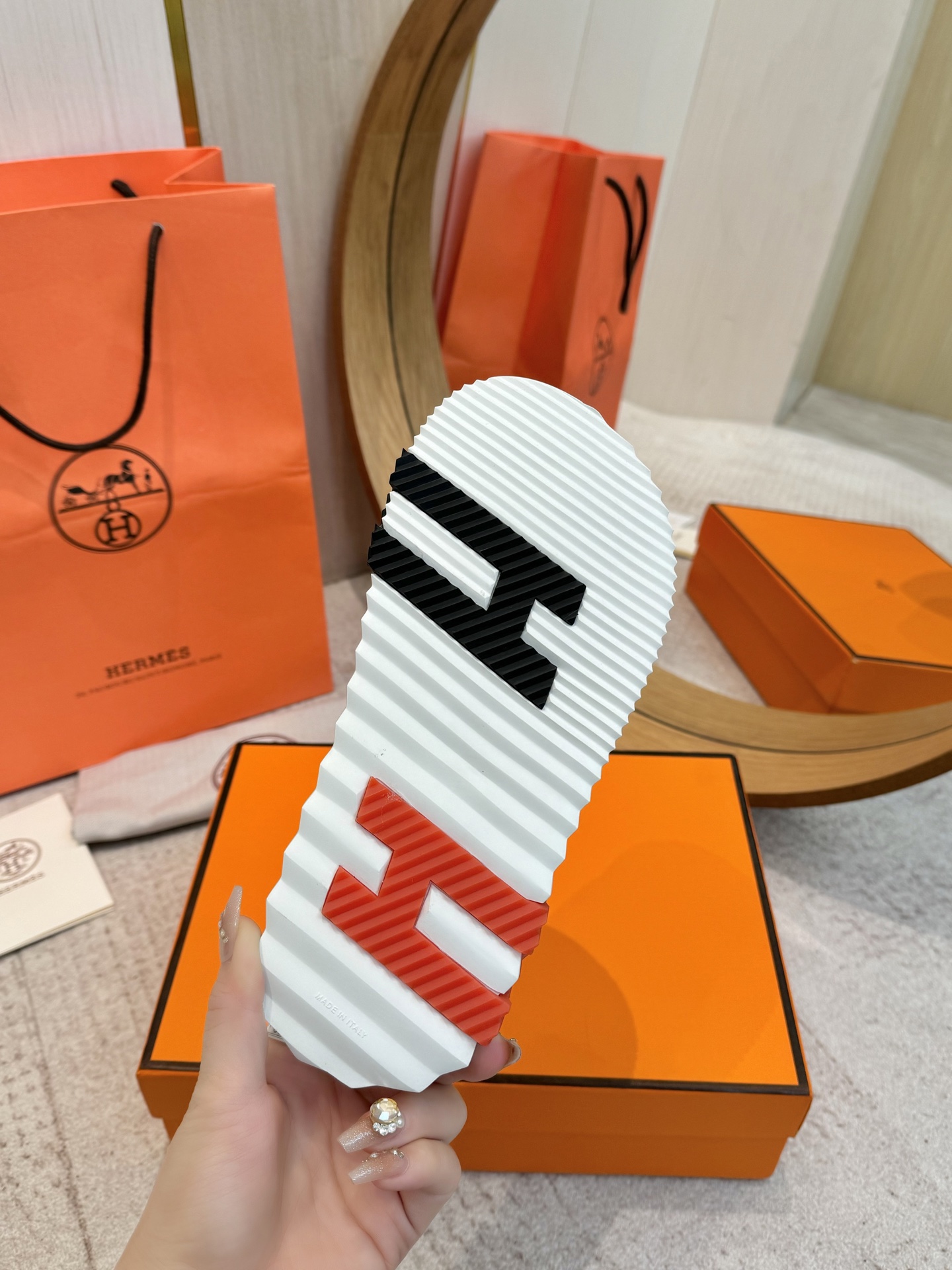 这款鞋子是AAAAA 1:1 质量 (非常棒). 使用了和原版一模一样的材料. 商标部分也保持了和爱马仕/Hermes一样. 图片拍摄是实物鞋子拍摄, 您所收到的实物保证和我们图片一模一样.