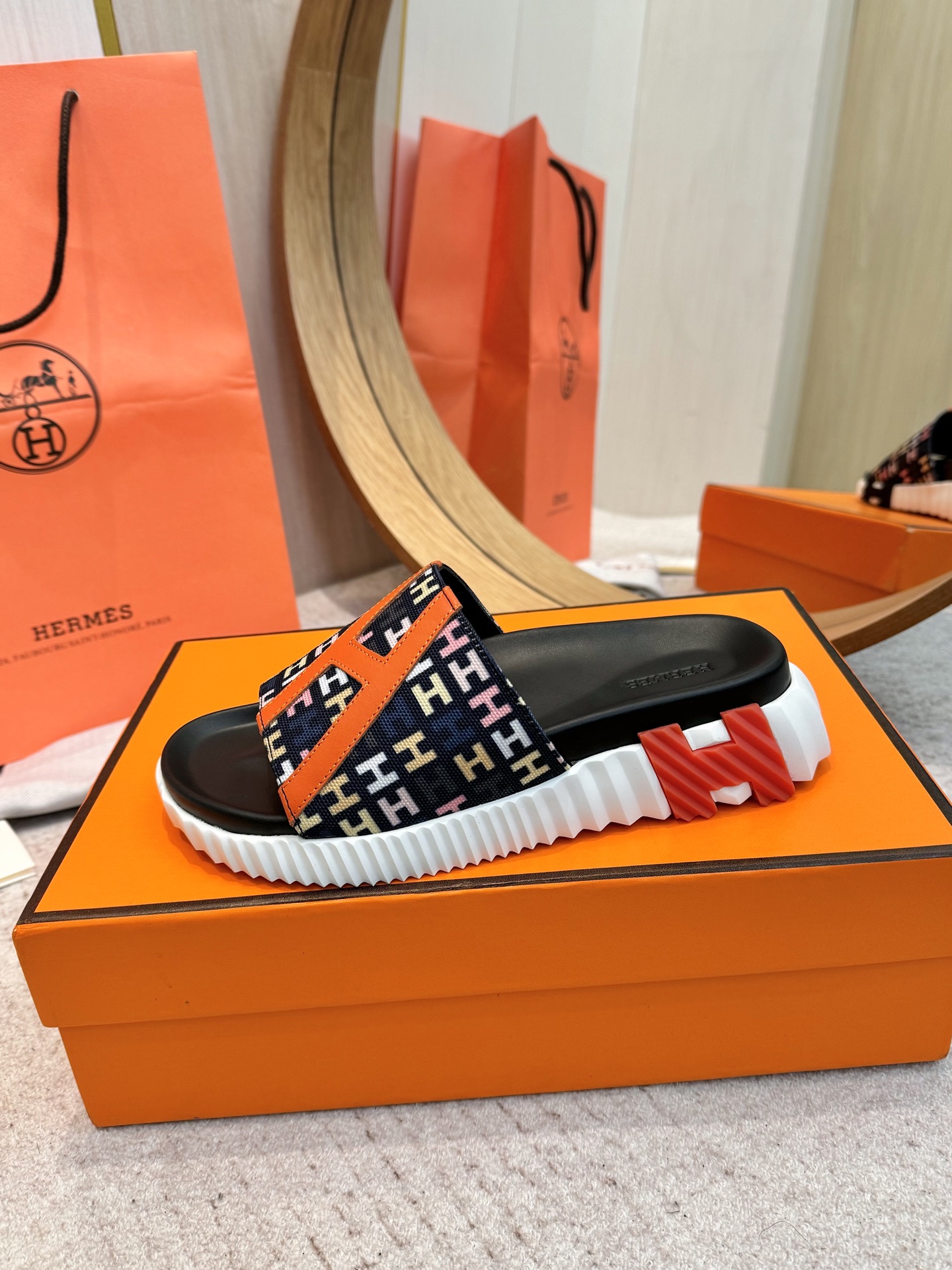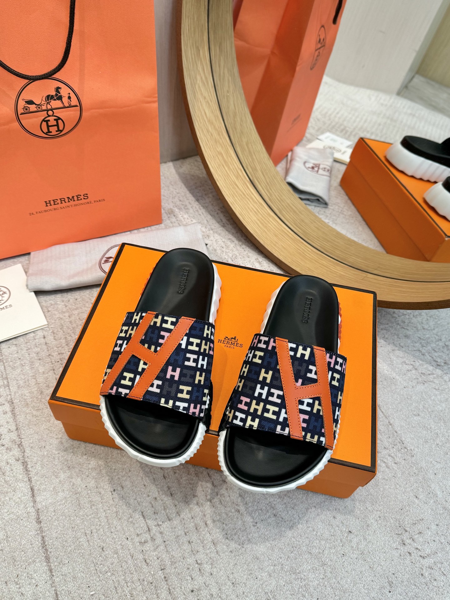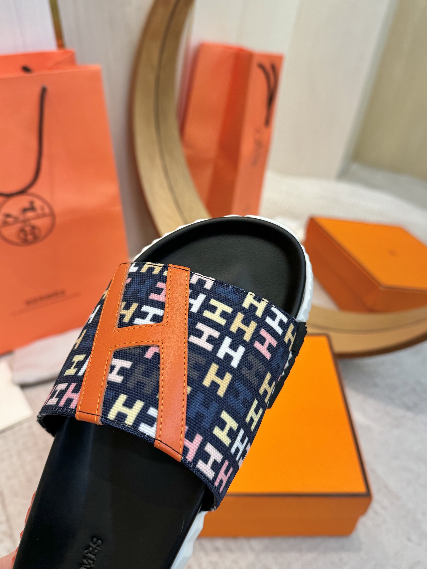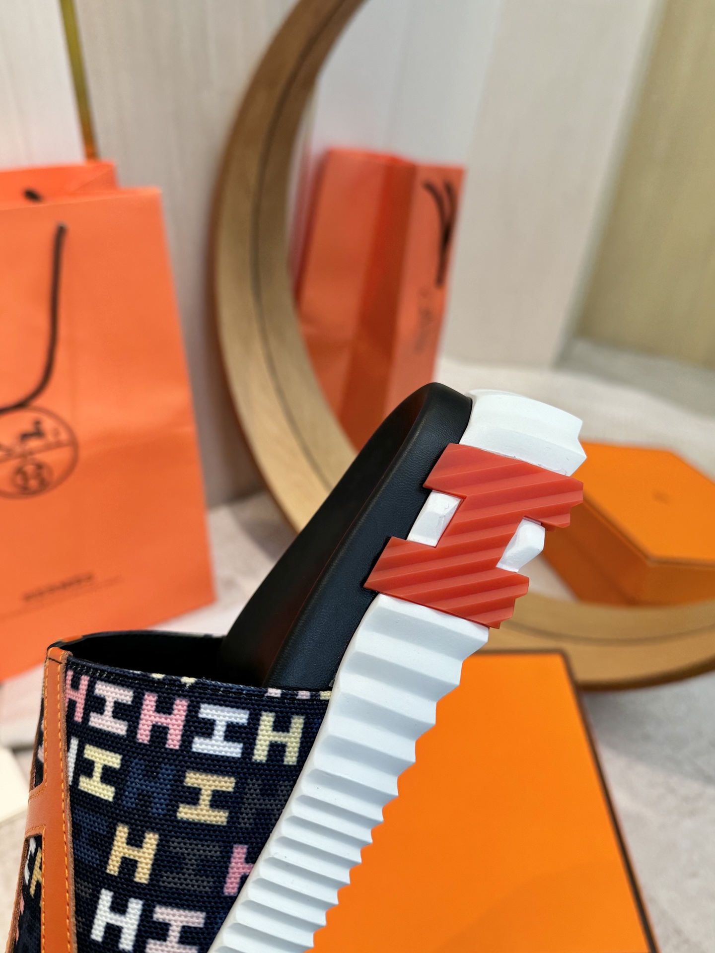 这款鞋子是AAAAA 1:1 质量 (非常棒). 使用了和原版一模一样的材料. 商标部分也保持了和爱马仕/Hermes一样. 图片拍摄是实物鞋子拍摄, 您所收到的实物保证和我们图片一模一样.