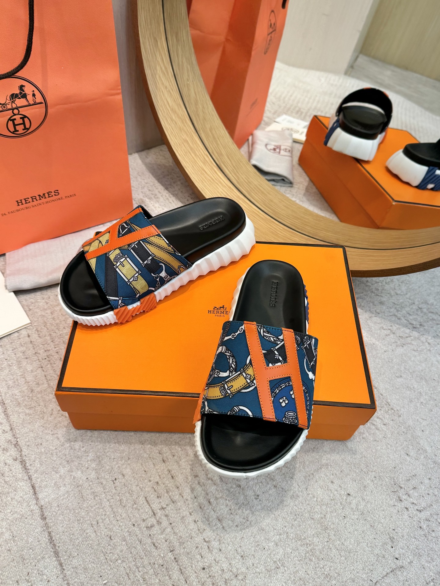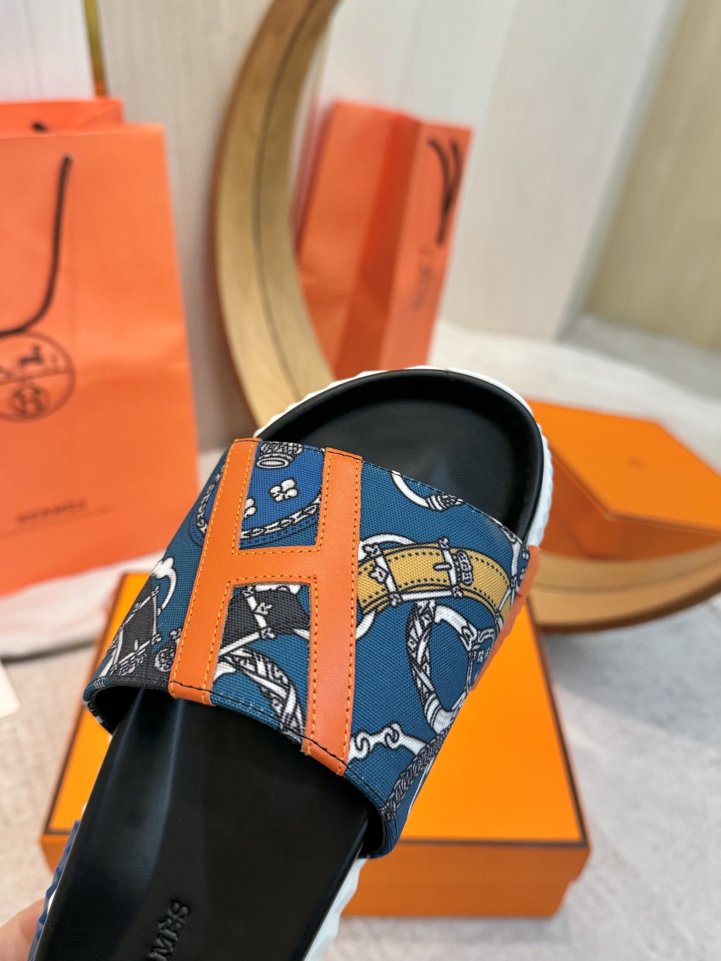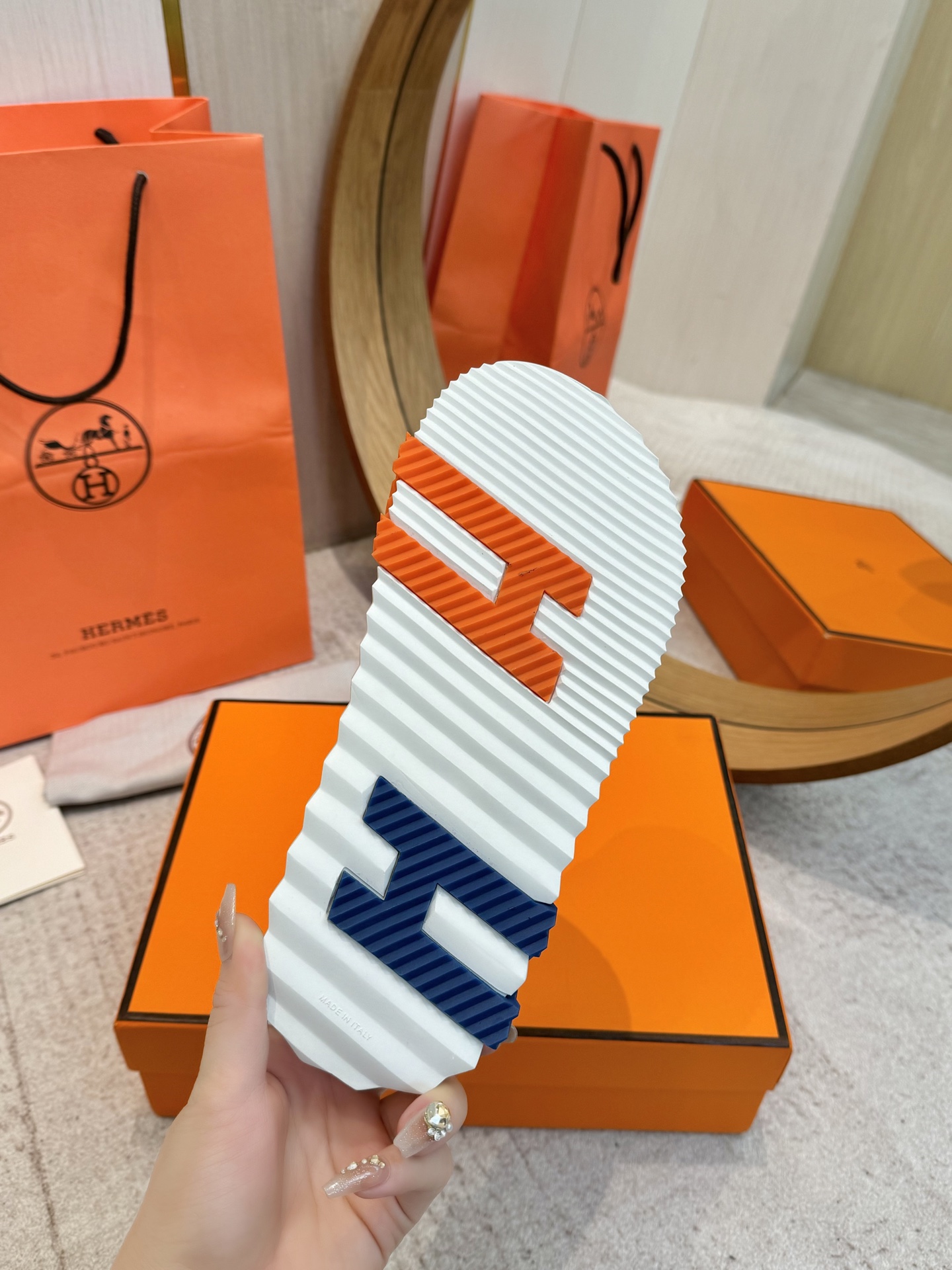 这款鞋子是AAAAA 1:1 质量 (非常棒). 使用了和原版一模一样的材料. 商标部分也保持了和爱马仕/Hermes一样. 图片拍摄是实物鞋子拍摄, 您所收到的实物保证和我们图片一模一样.