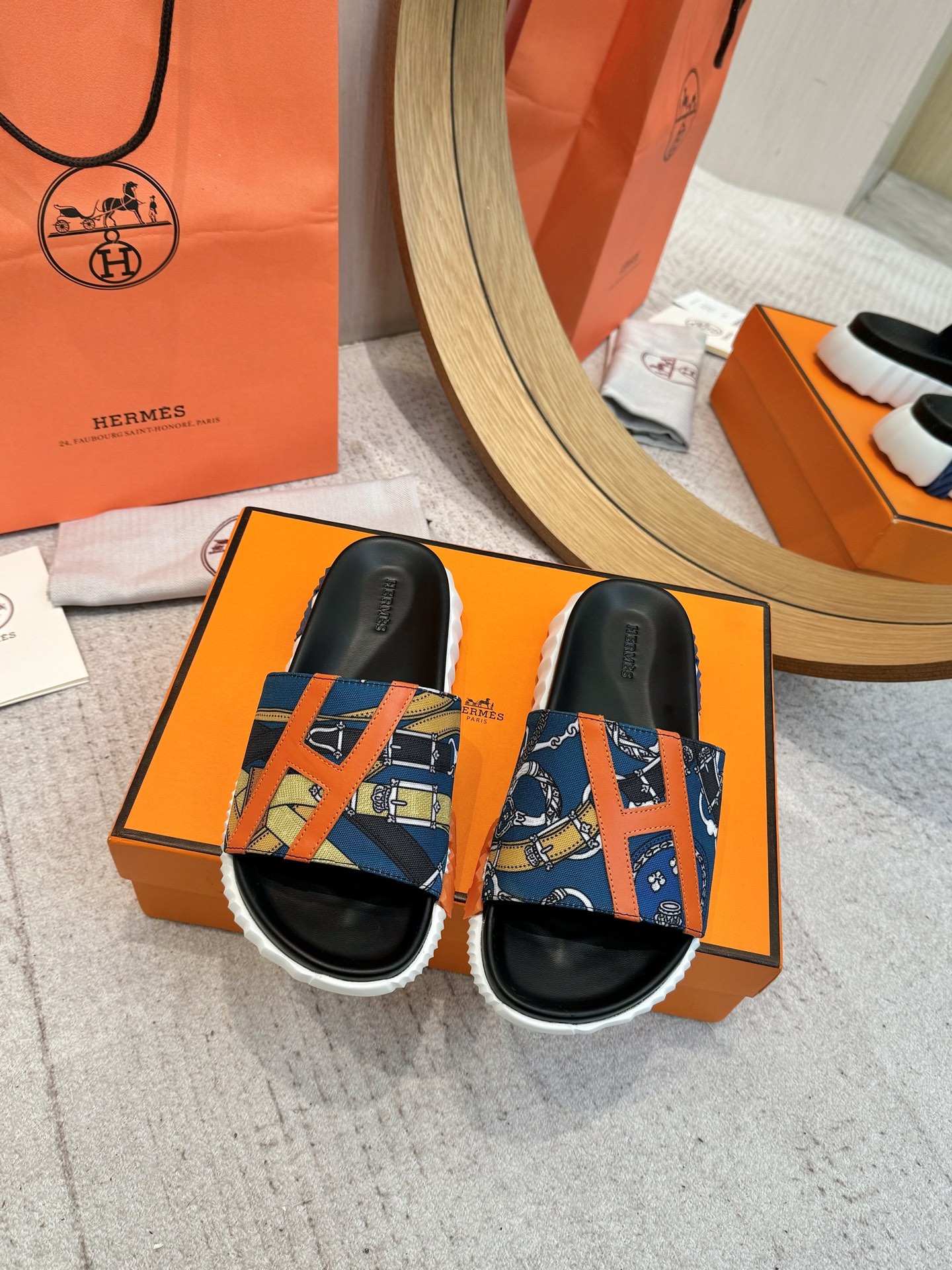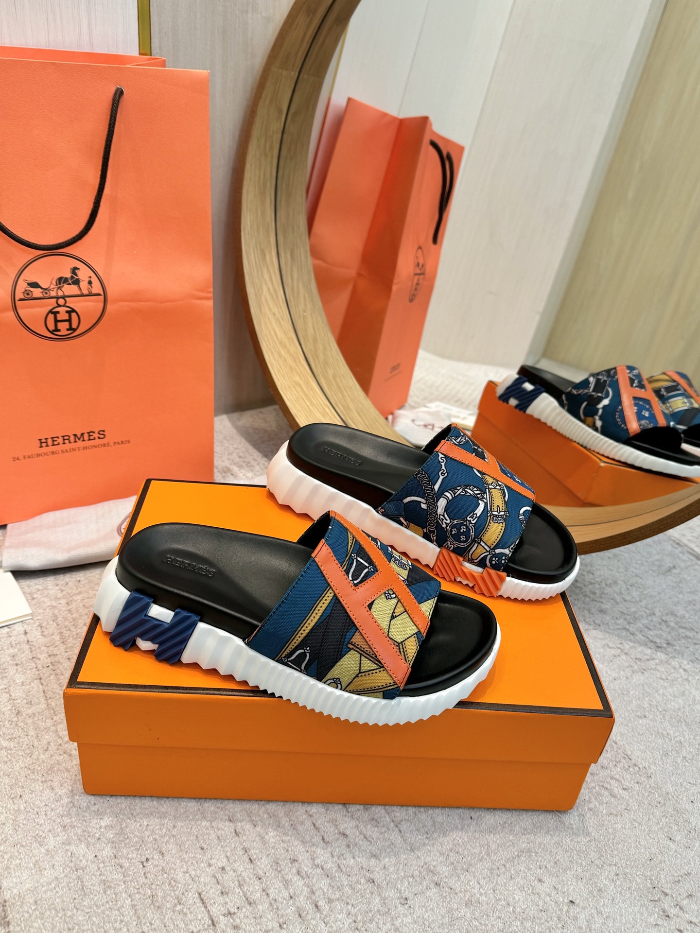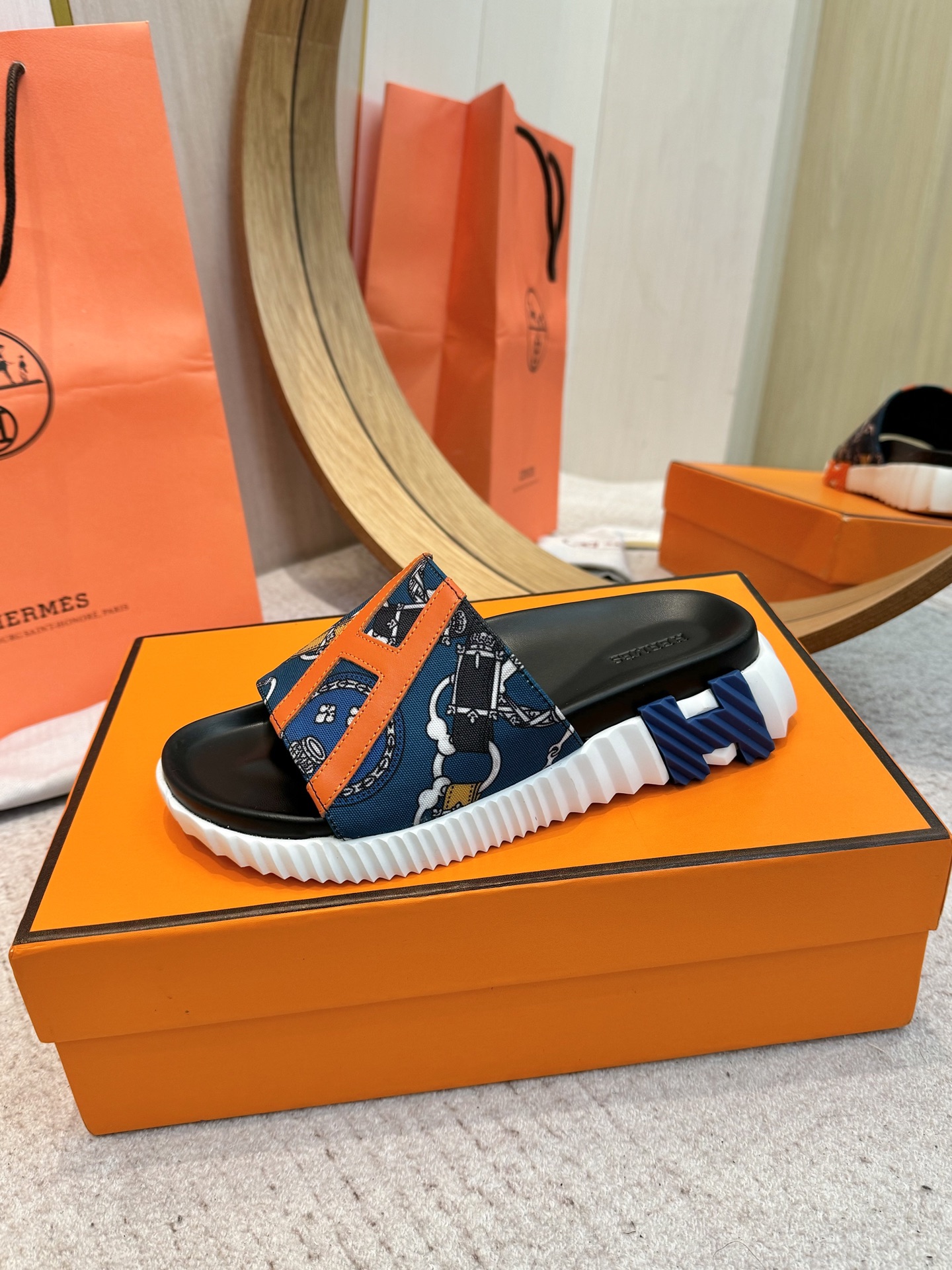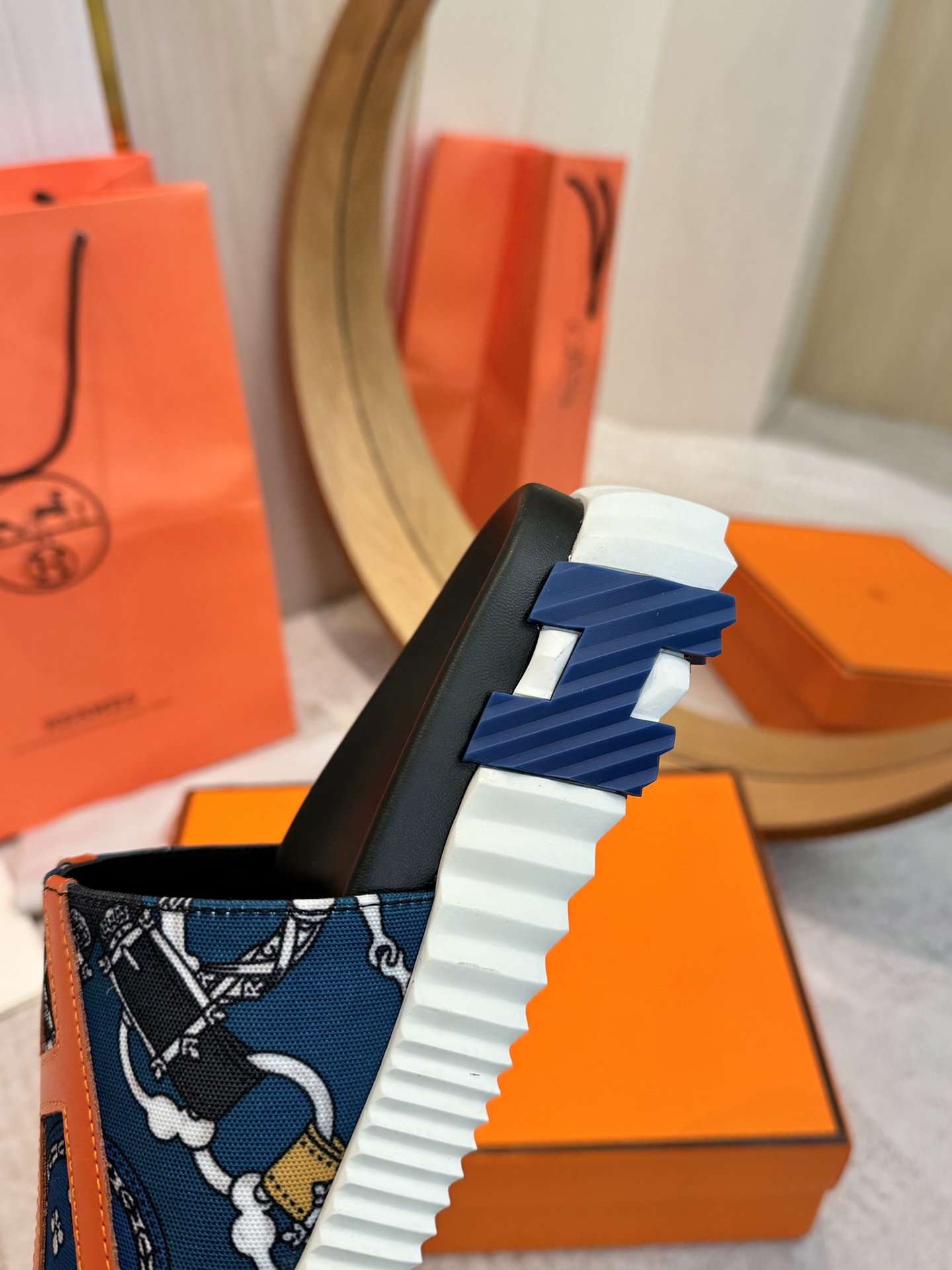 这款鞋子是AAAAA 1:1 质量 (非常棒). 使用了和原版一模一样的材料. 商标部分也保持了和爱马仕/Hermes一样. 图片拍摄是实物鞋子拍摄, 您所收到的实物保证和我们图片一模一样.