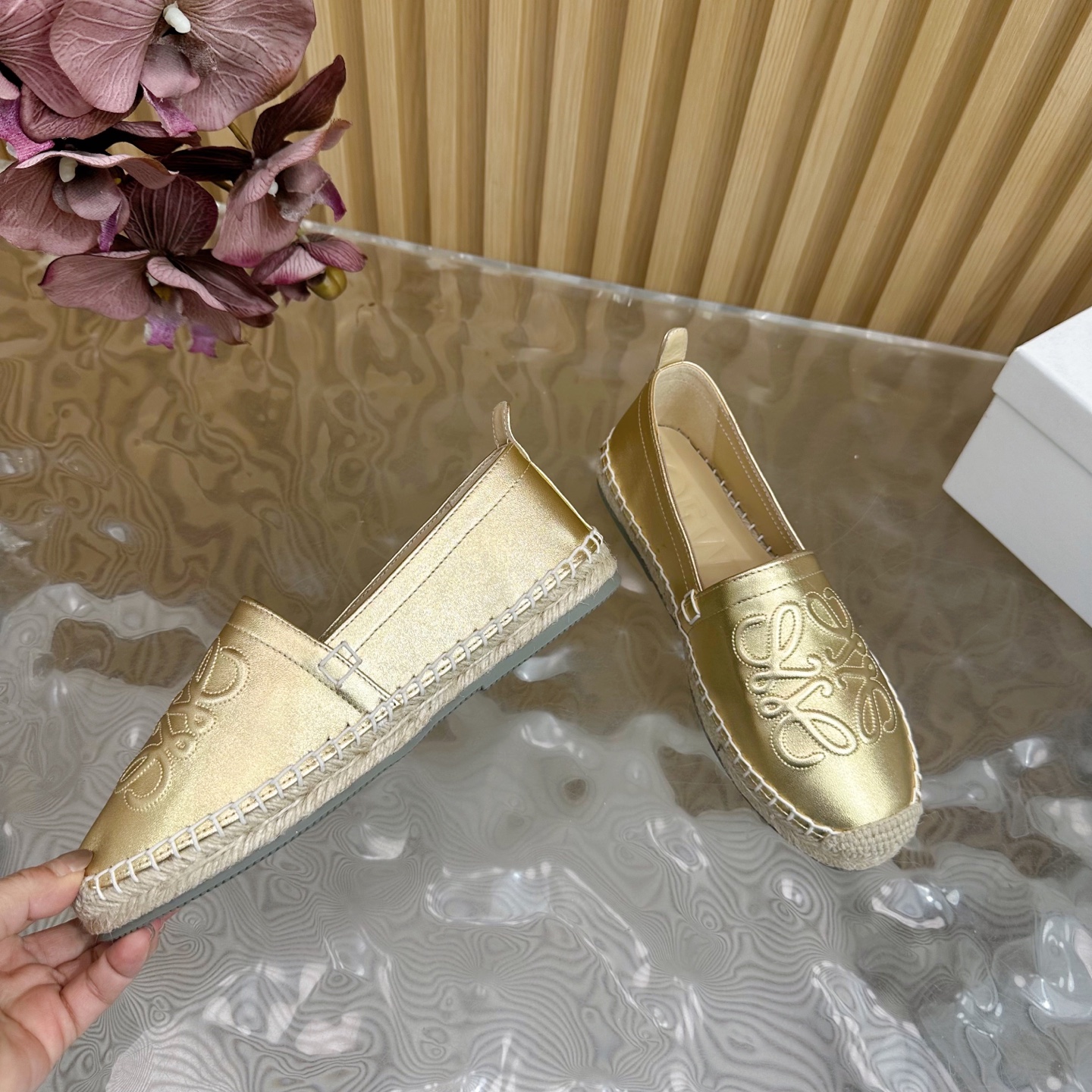 这款鞋子是AAAAA 1:1 质量 (非常棒). 使用了和原版一模一样的材料. 商标部分也保持了和罗意威/Loewe一样. 图片拍摄是实物鞋子拍摄, 您所收到的实物保证和我们图片一模一样.