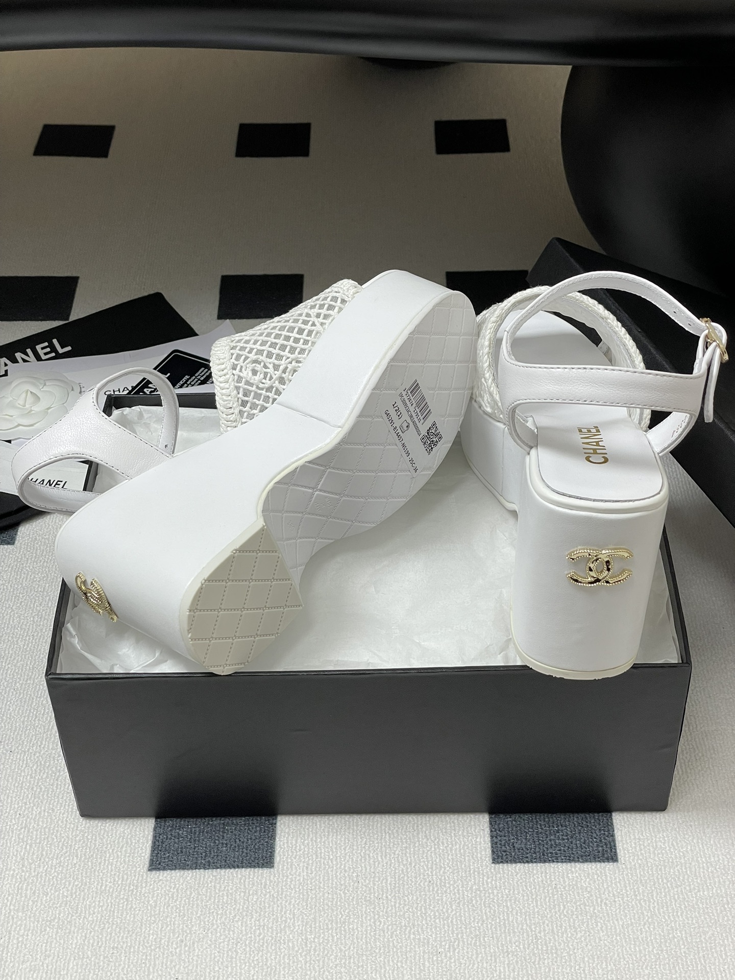 这款鞋子是AAAAA 1:1 质量 (非常棒). 使用了和原版一模一样的材料. 商标部分也保持了和香奈儿/Chanel一样. 图片拍摄是实物鞋子拍摄, 您所收到的实物保证和我们图片一模一样.