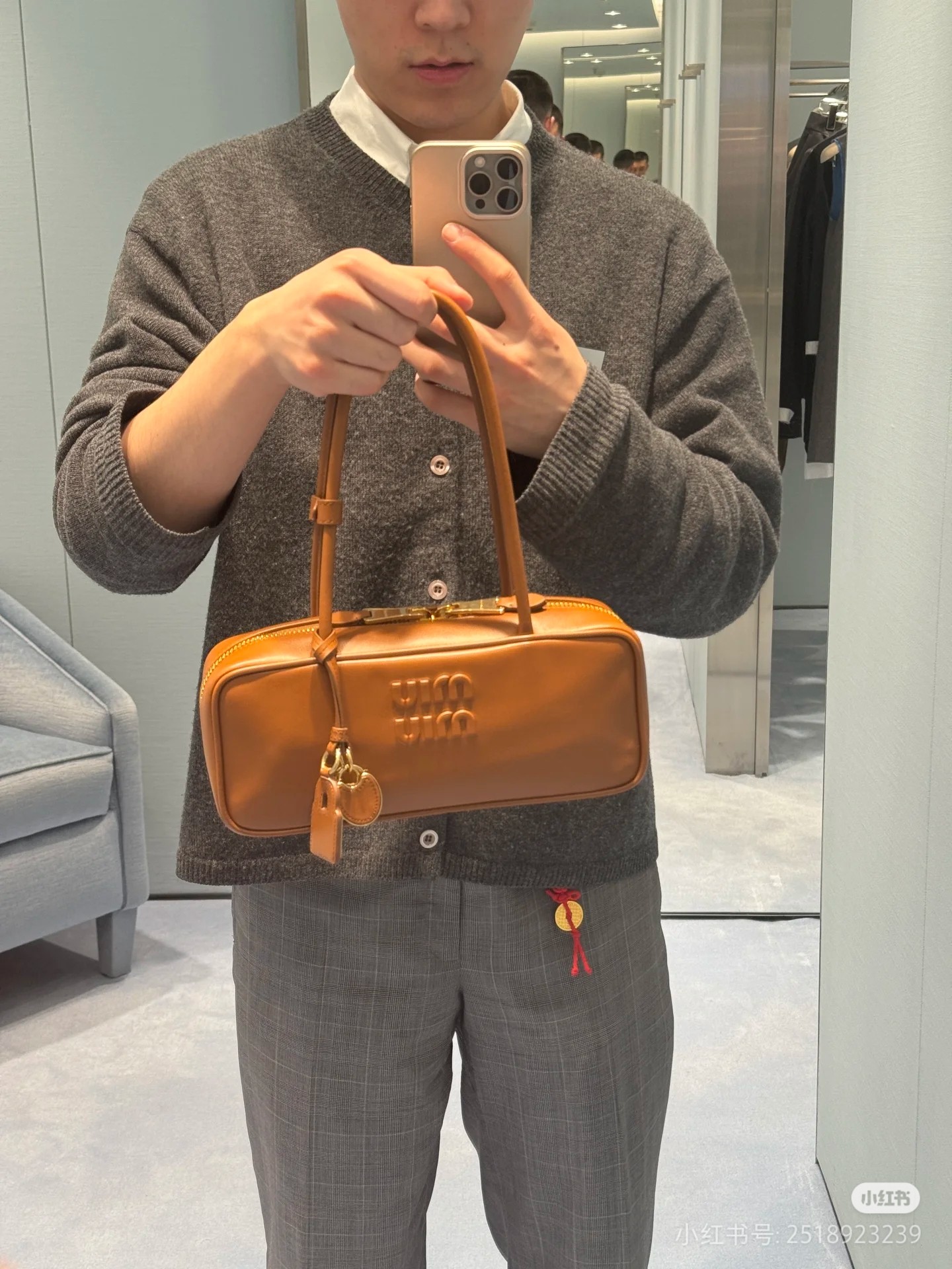 这款包包是AAAAA 1:1 质量 (非常棒). 使用了和原版一模一样的材料. 商标部分也保持了和缪缪/Miu Miu一样. 图片拍摄是实物包包拍摄, 您所收到的实物保证和我们图片一模一样.