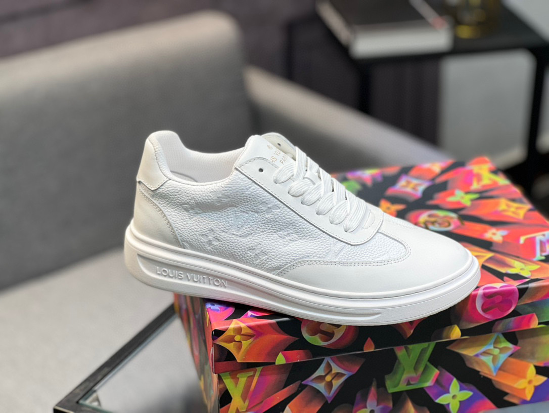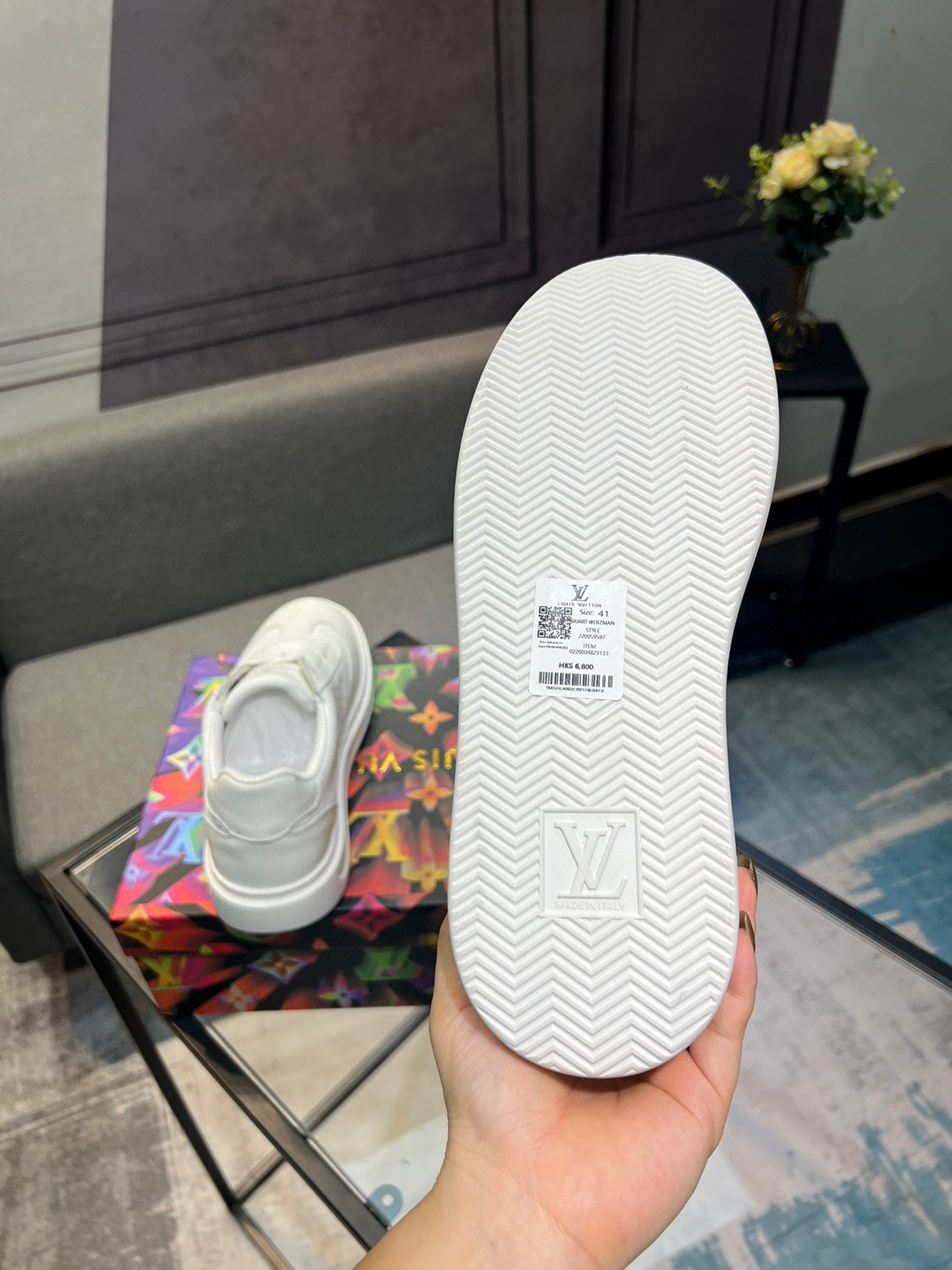 这款鞋子是AAAAA 1:1 质量 (非常棒). 使用了和原版一模一样的材料. 商标部分也保持了和路易威登/Louis Vuitton一样. 图片拍摄是实物鞋子拍摄, 您所收到的实物保证和我们图片一模一样.
