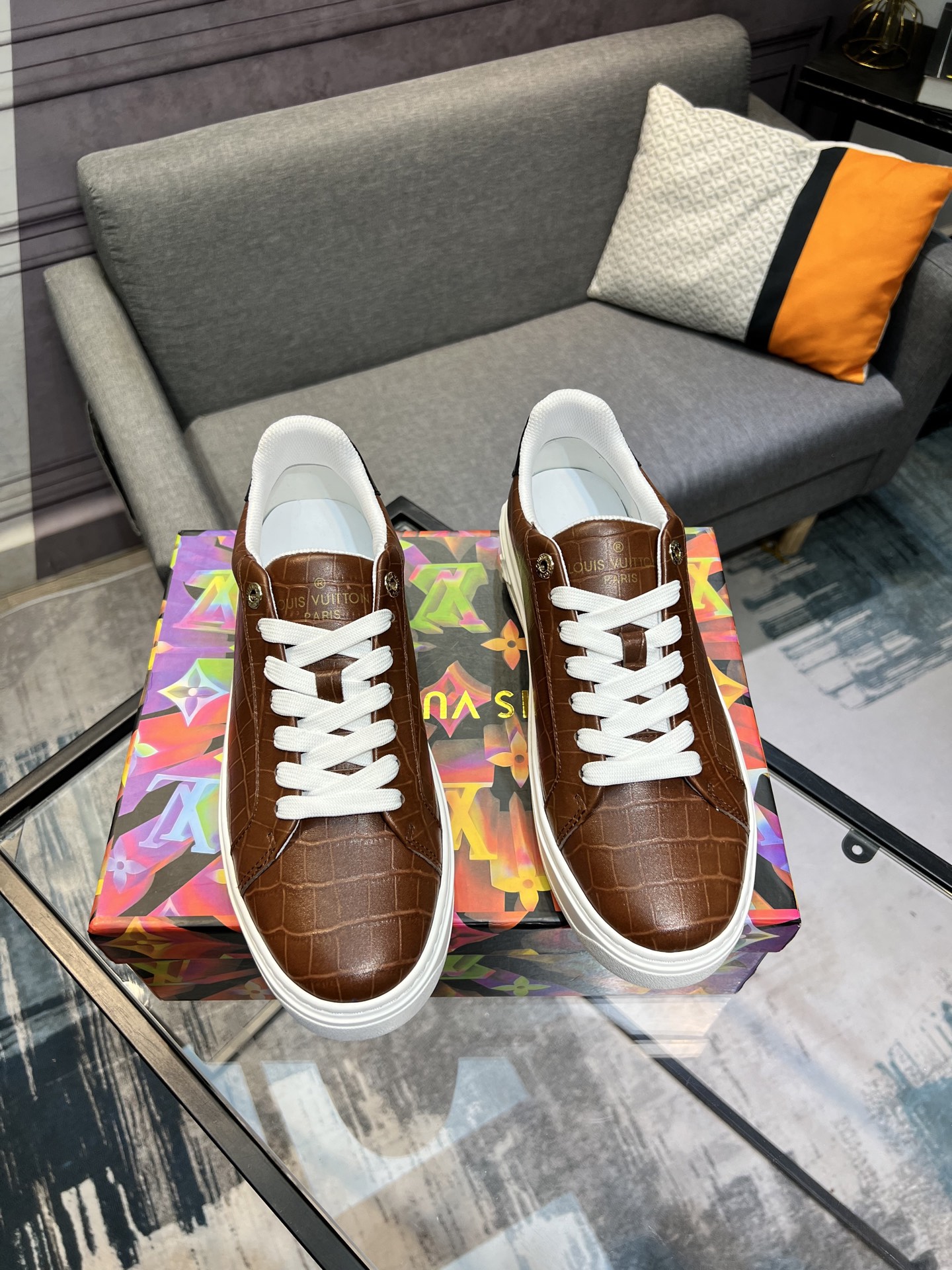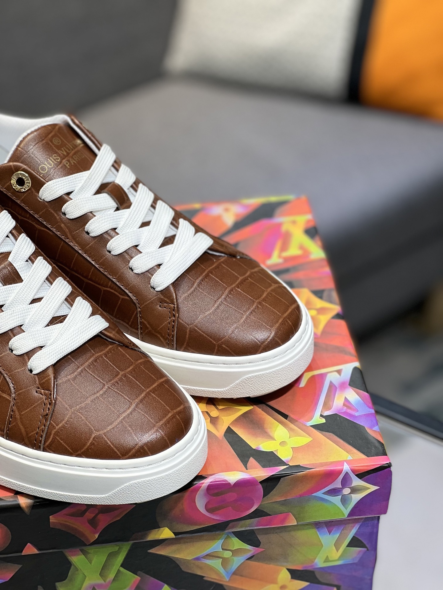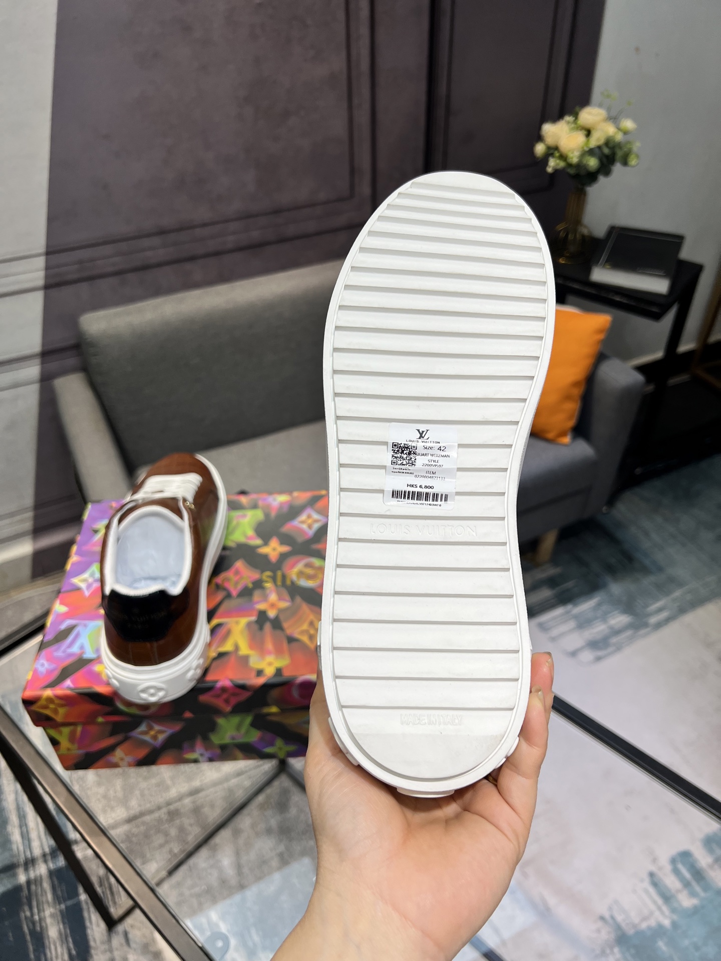 这款鞋子是AAAAA 1:1 质量 (非常棒). 使用了和原版一模一样的材料. 商标部分也保持了和路易威登/Louis Vuitton一样. 图片拍摄是实物鞋子拍摄, 您所收到的实物保证和我们图片一模一样.