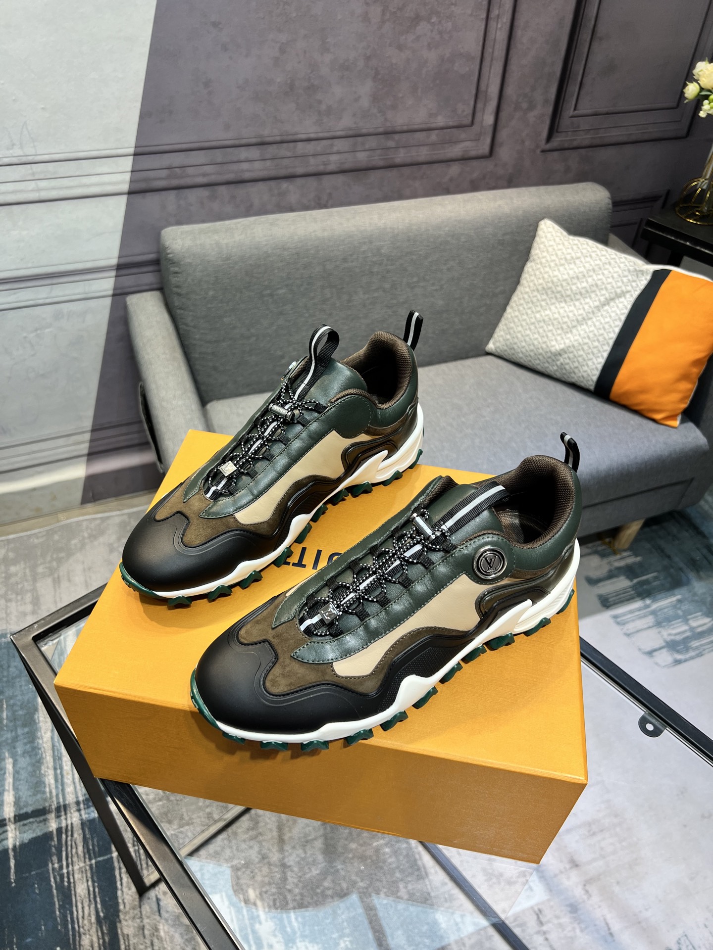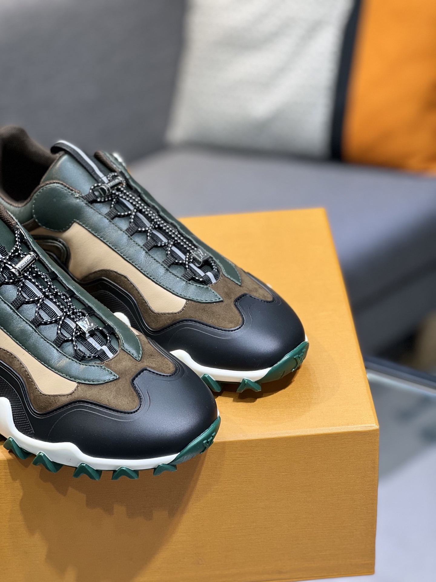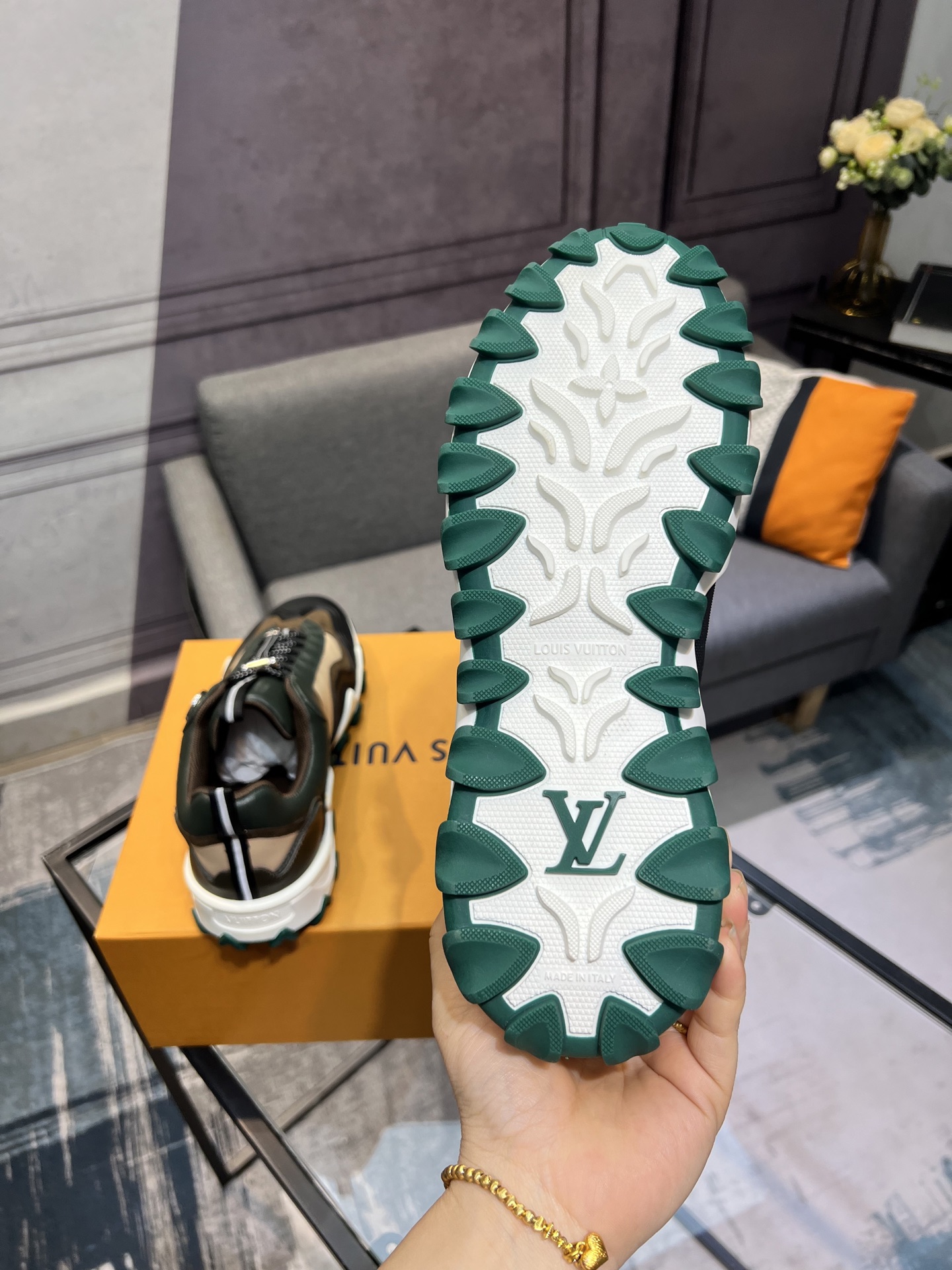 这款鞋子是AAAAA 1:1 质量 (非常棒). 使用了和原版一模一样的材料. 商标部分也保持了和路易威登/Louis Vuitton一样. 图片拍摄是实物鞋子拍摄, 您所收到的实物保证和我们图片一模一样.
