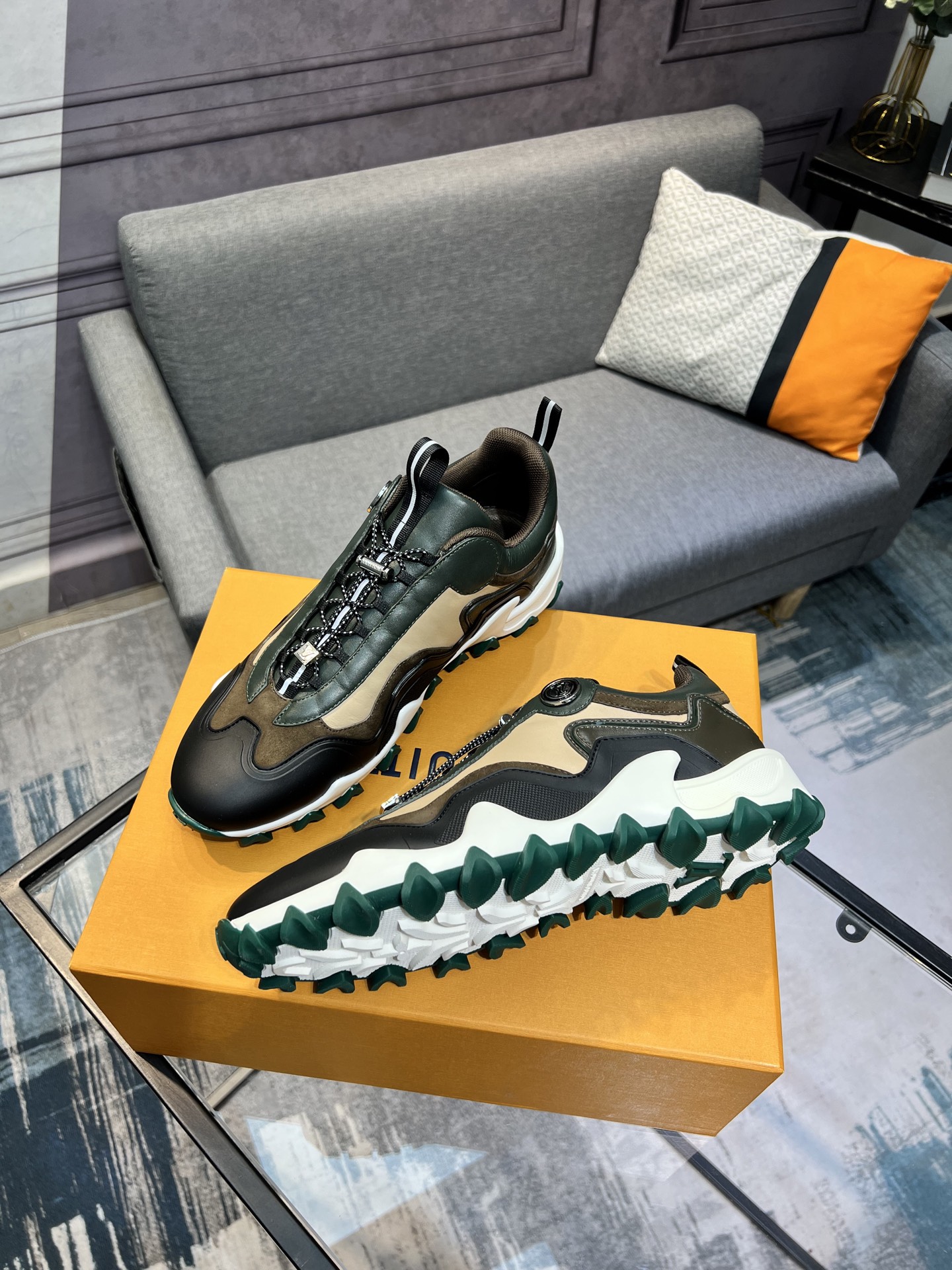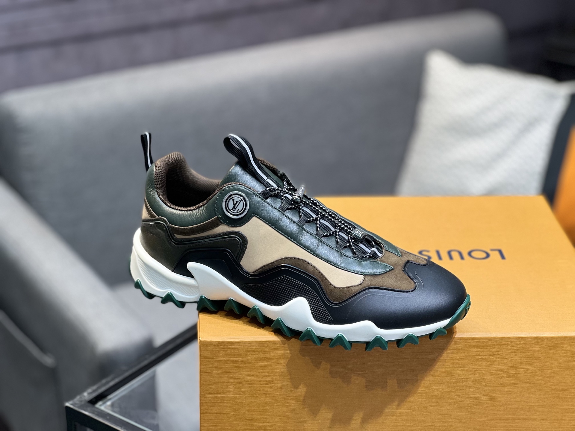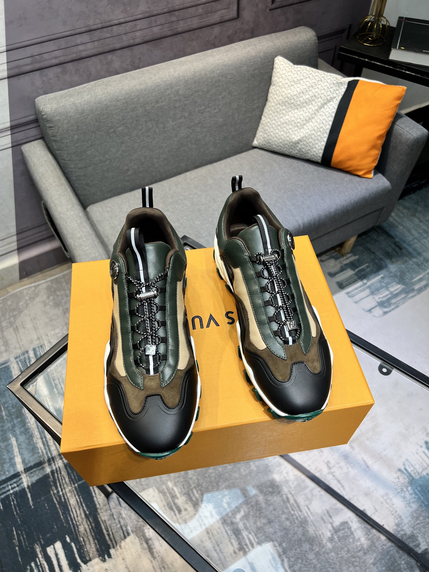 这款鞋子是AAAAA 1:1 质量 (非常棒). 使用了和原版一模一样的材料. 商标部分也保持了和路易威登/Louis Vuitton一样. 图片拍摄是实物鞋子拍摄, 您所收到的实物保证和我们图片一模一样.