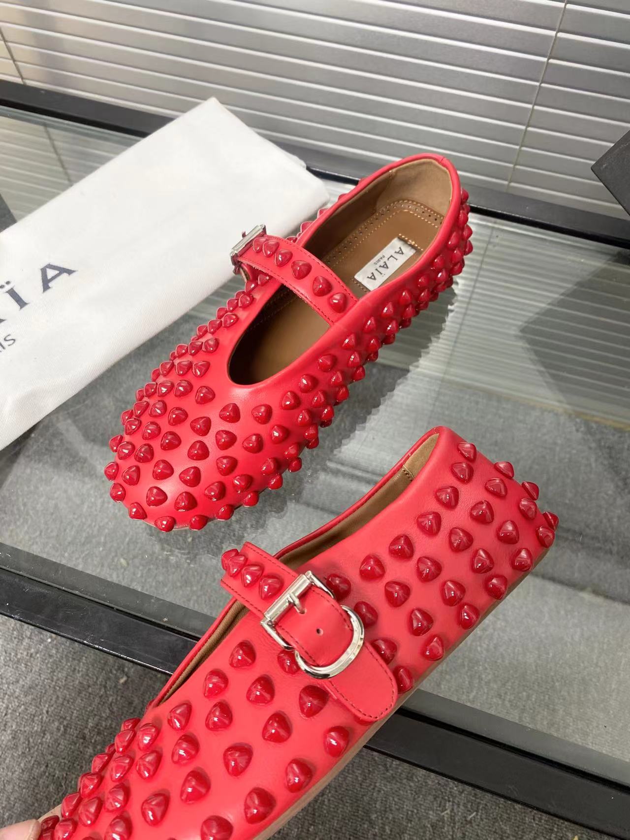 这款鞋子是AAAAA 1:1 质量 (非常棒). 使用了和原版一模一样的材料. 商标部分也保持了和Alaia一样. 图片拍摄是实物鞋子拍摄, 您所收到的实物保证和我们图片一模一样.
