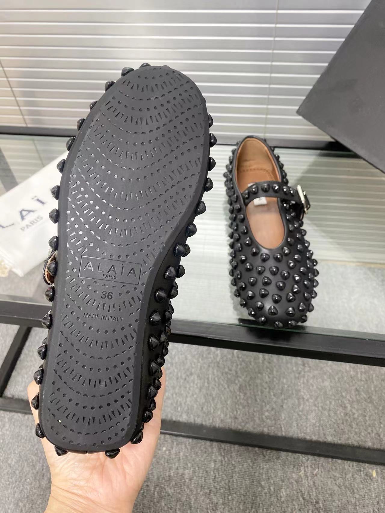 这款鞋子是AAAAA 1:1 质量 (非常棒). 使用了和原版一模一样的材料. 商标部分也保持了和Alaia一样. 图片拍摄是实物鞋子拍摄, 您所收到的实物保证和我们图片一模一样.
