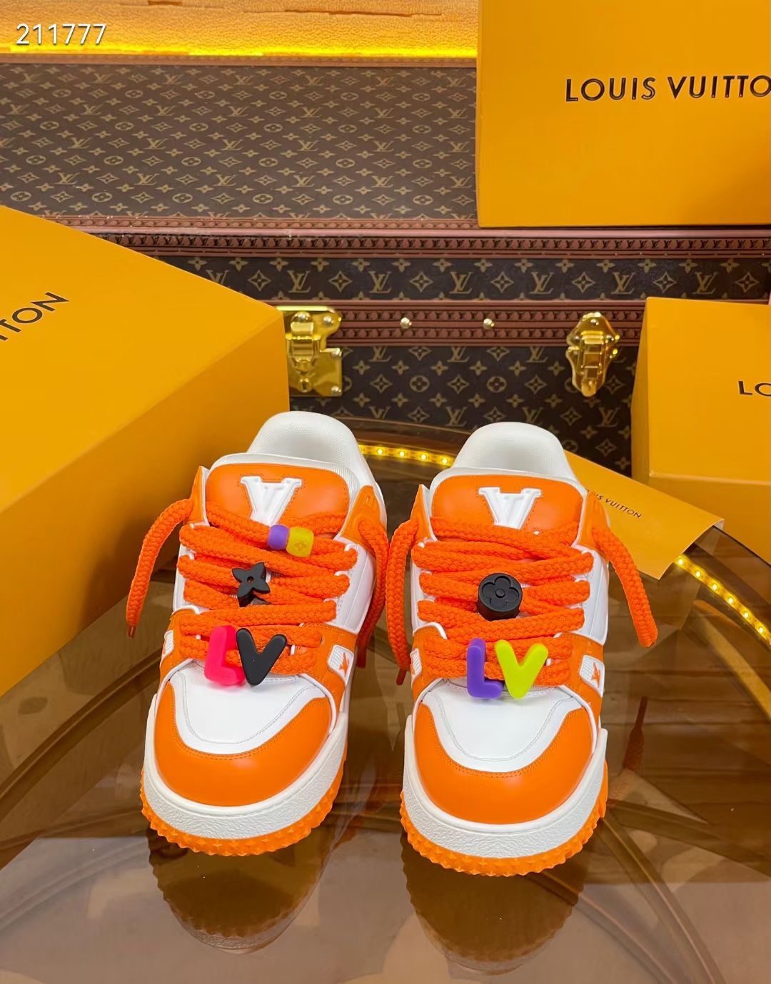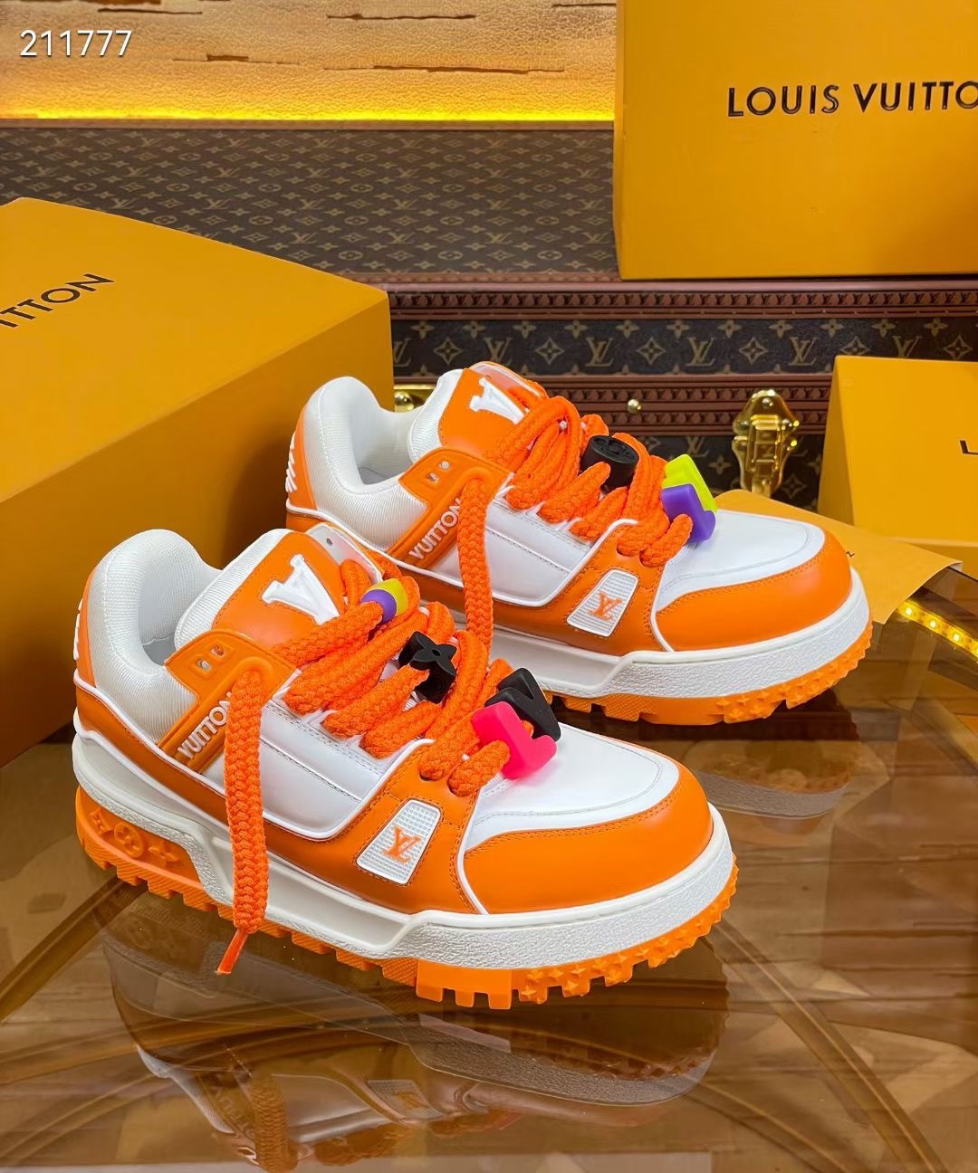这款鞋子是AAAAA 1:1 质量 (非常棒). 使用了和原版一模一样的材料. 商标部分也保持了和路易威登/Louis Vuitton一样. 图片拍摄是实物鞋子拍摄, 您所收到的实物保证和我们图片一模一样.