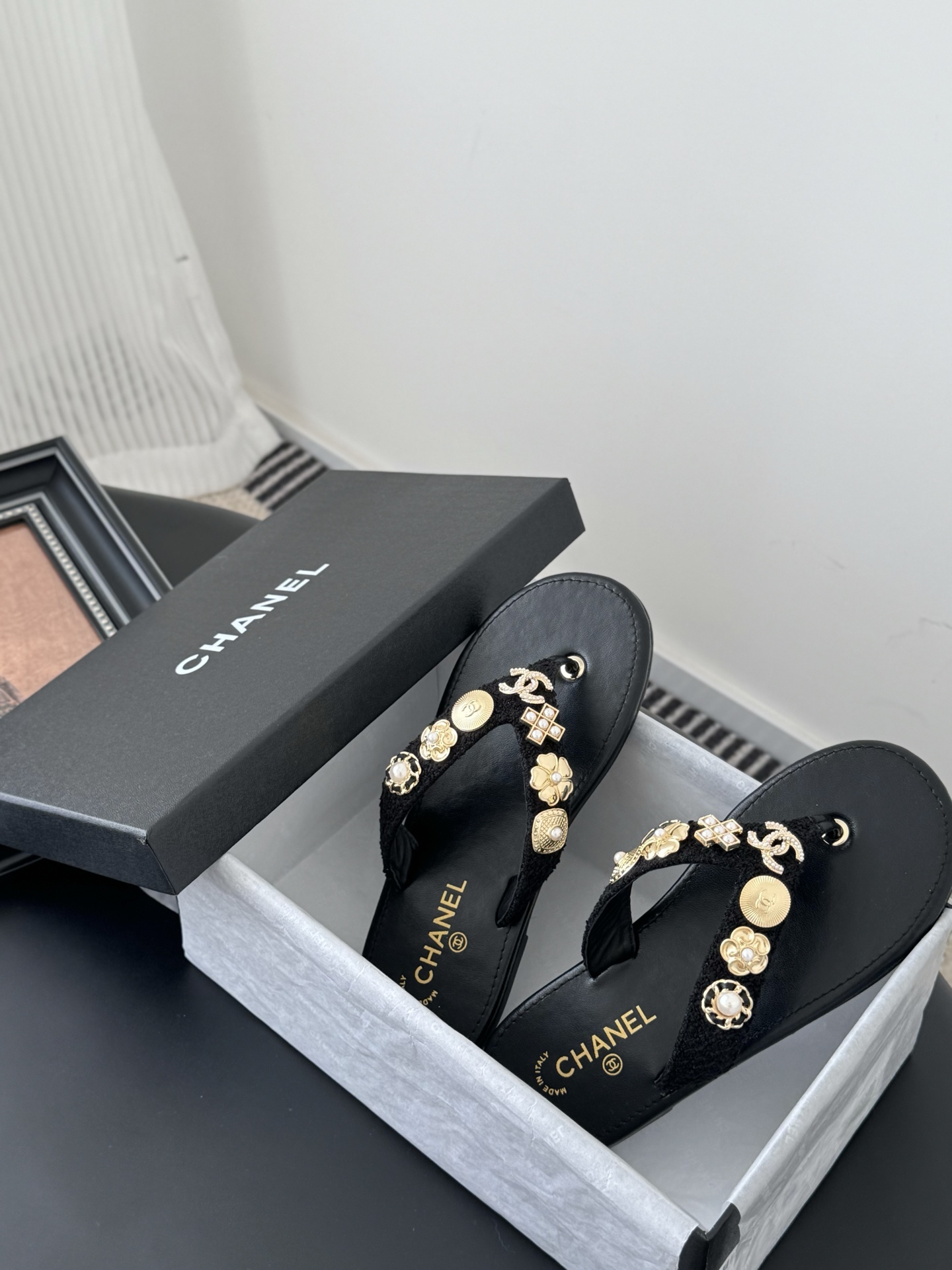 这款鞋子是AAAAA 1:1 质量 (非常棒). 使用了和原版一模一样的材料. 商标部分也保持了和香奈儿/Chanel一样. 图片拍摄是实物鞋子拍摄, 您所收到的实物保证和我们图片一模一样.