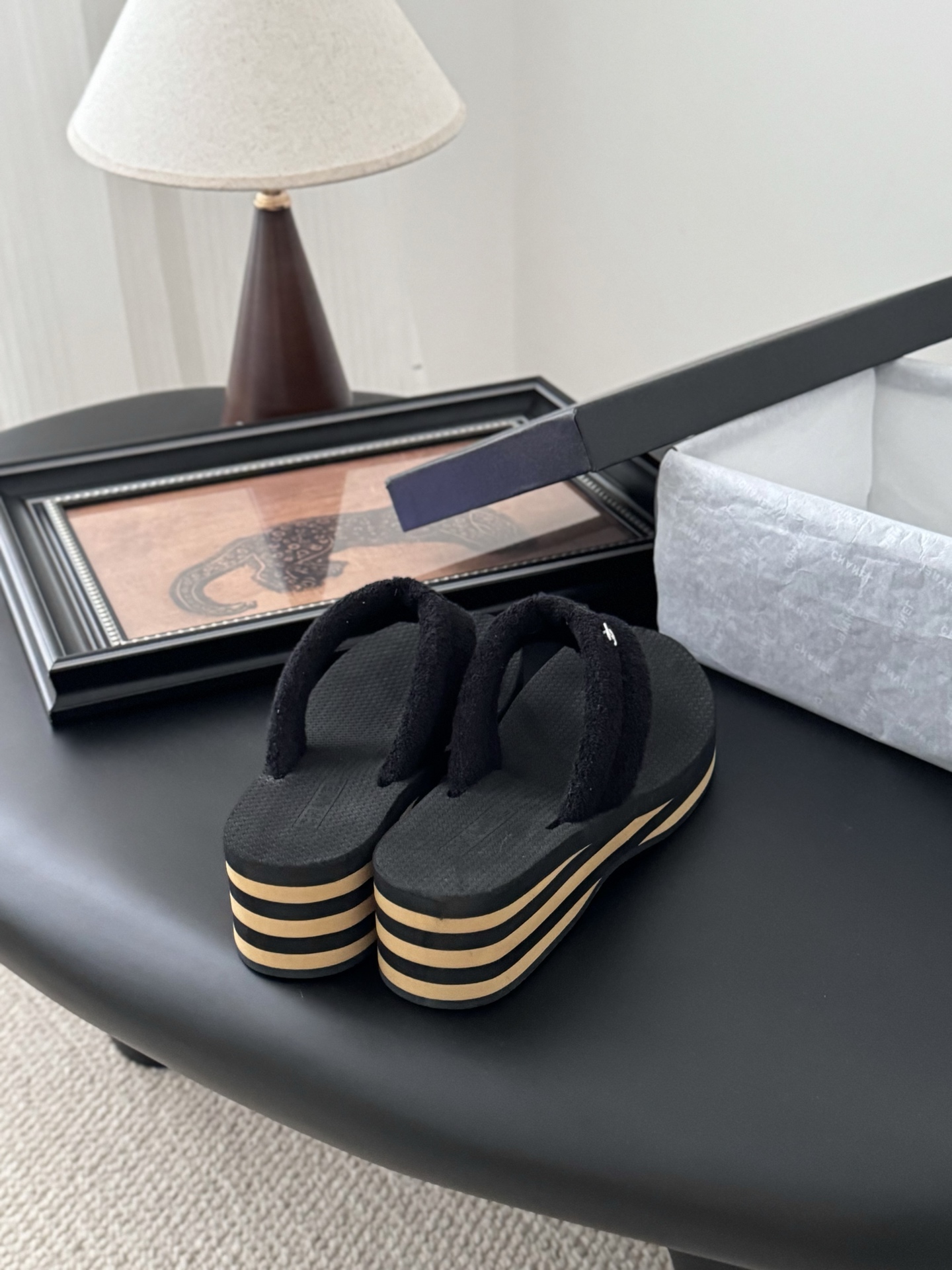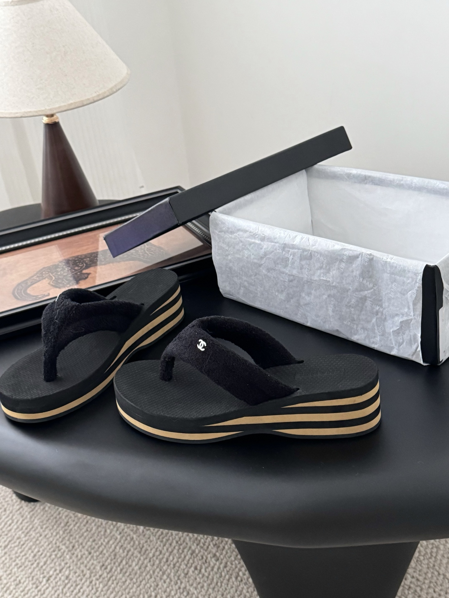 这款鞋子是AAAAA 1:1 质量 (非常棒). 使用了和原版一模一样的材料. 商标部分也保持了和香奈儿/Chanel一样. 图片拍摄是实物鞋子拍摄, 您所收到的实物保证和我们图片一模一样.