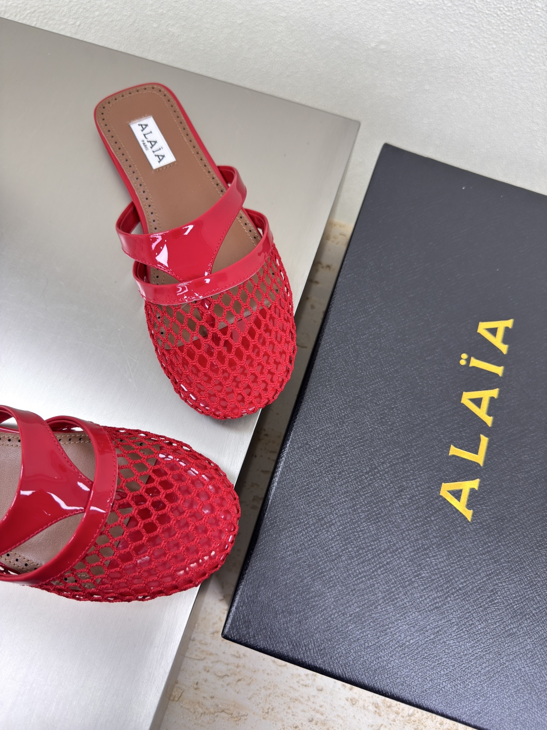 这款鞋子是AAAAA 1:1 质量 (非常棒). 使用了和原版一模一样的材料. 商标部分也保持了和Alaia一样. 图片拍摄是实物鞋子拍摄, 您所收到的实物保证和我们图片一模一样.