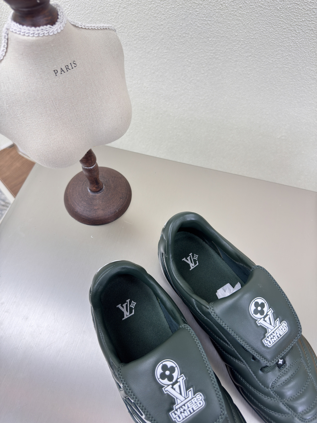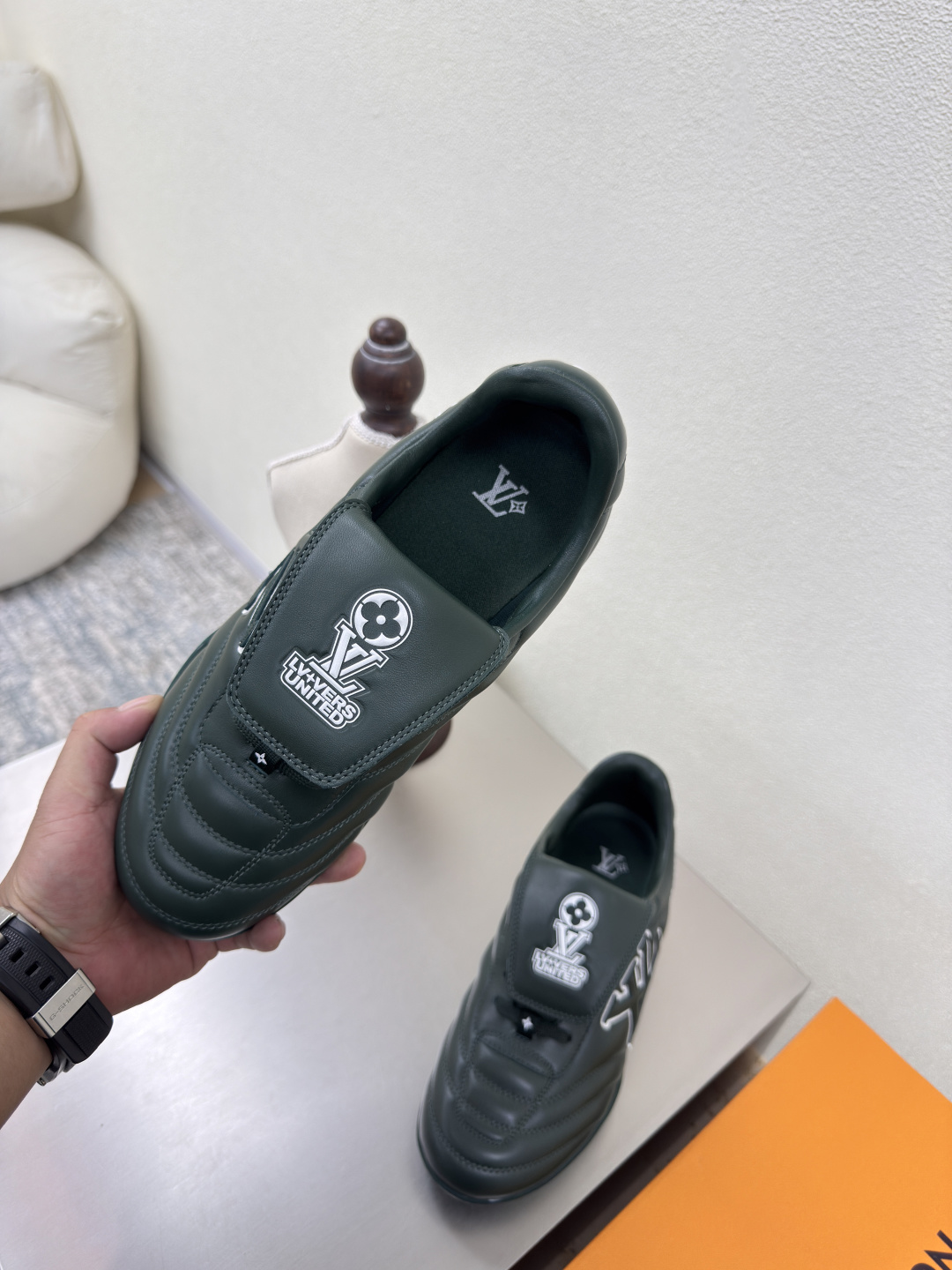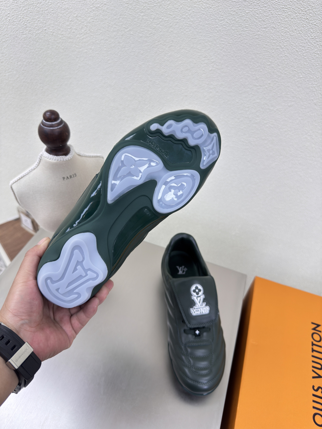这款鞋子是AAAAA 1:1 质量 (非常棒). 使用了和原版一模一样的材料. 商标部分也保持了和路易威登/Louis Vuitton一样. 图片拍摄是实物鞋子拍摄, 您所收到的实物保证和我们图片一模一样.