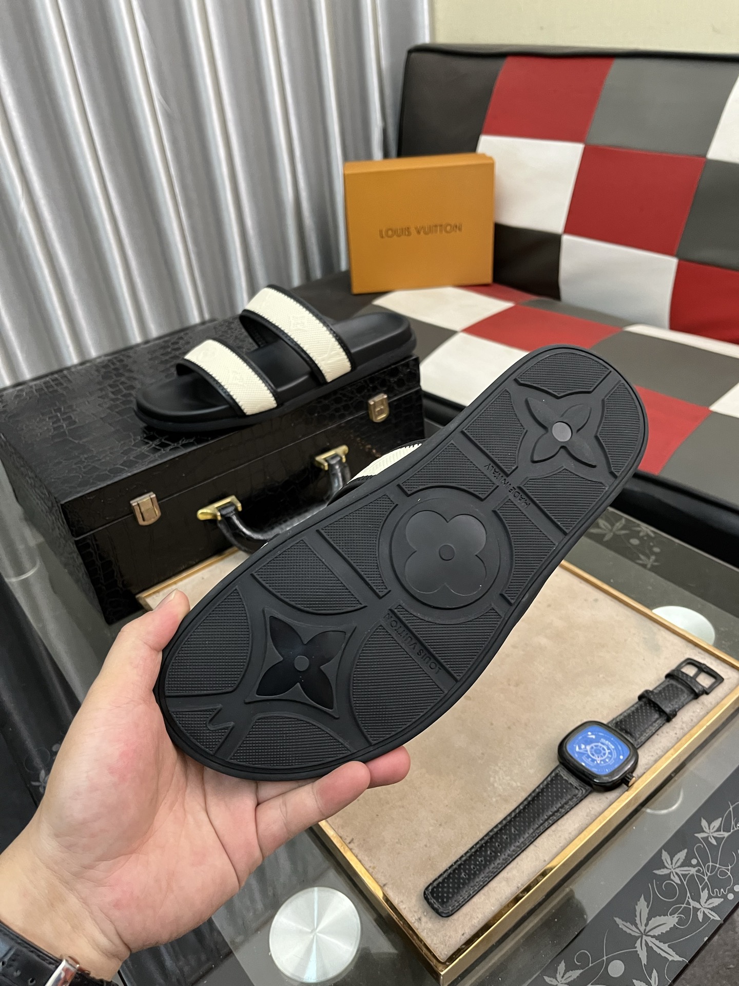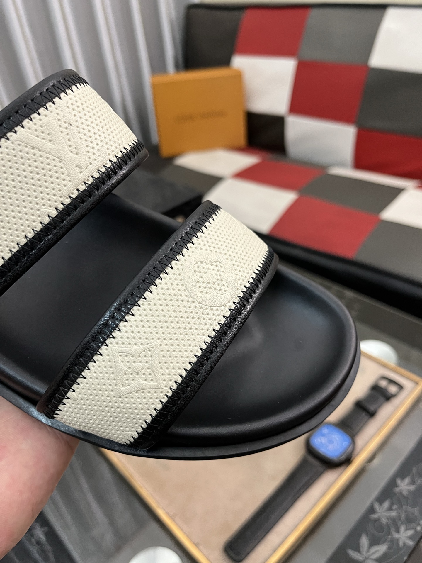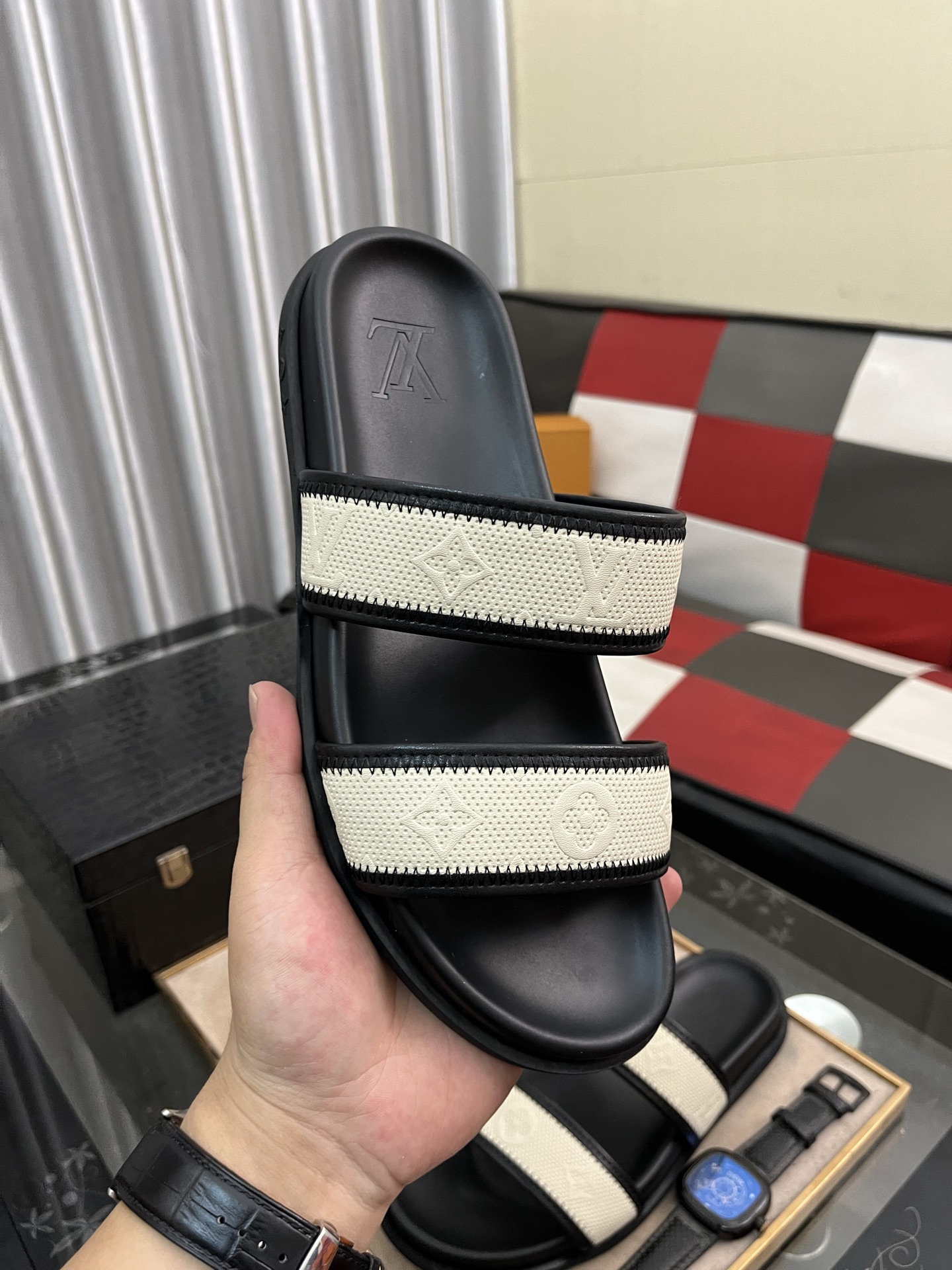 这款鞋子是AAAAA 1:1 质量 (非常棒). 使用了和原版一模一样的材料. 商标部分也保持了和路易威登/Louis Vuitton一样. 图片拍摄是实物鞋子拍摄, 您所收到的实物保证和我们图片一模一样.