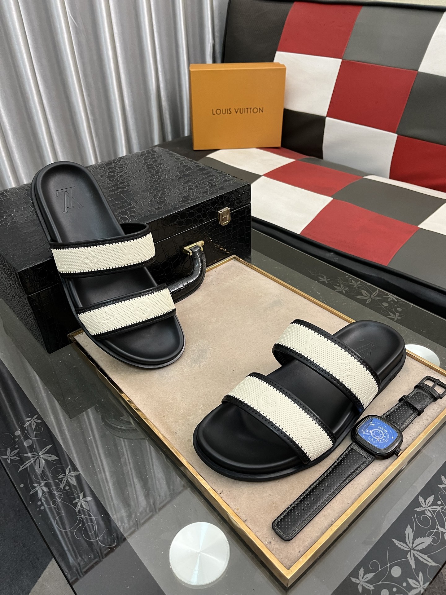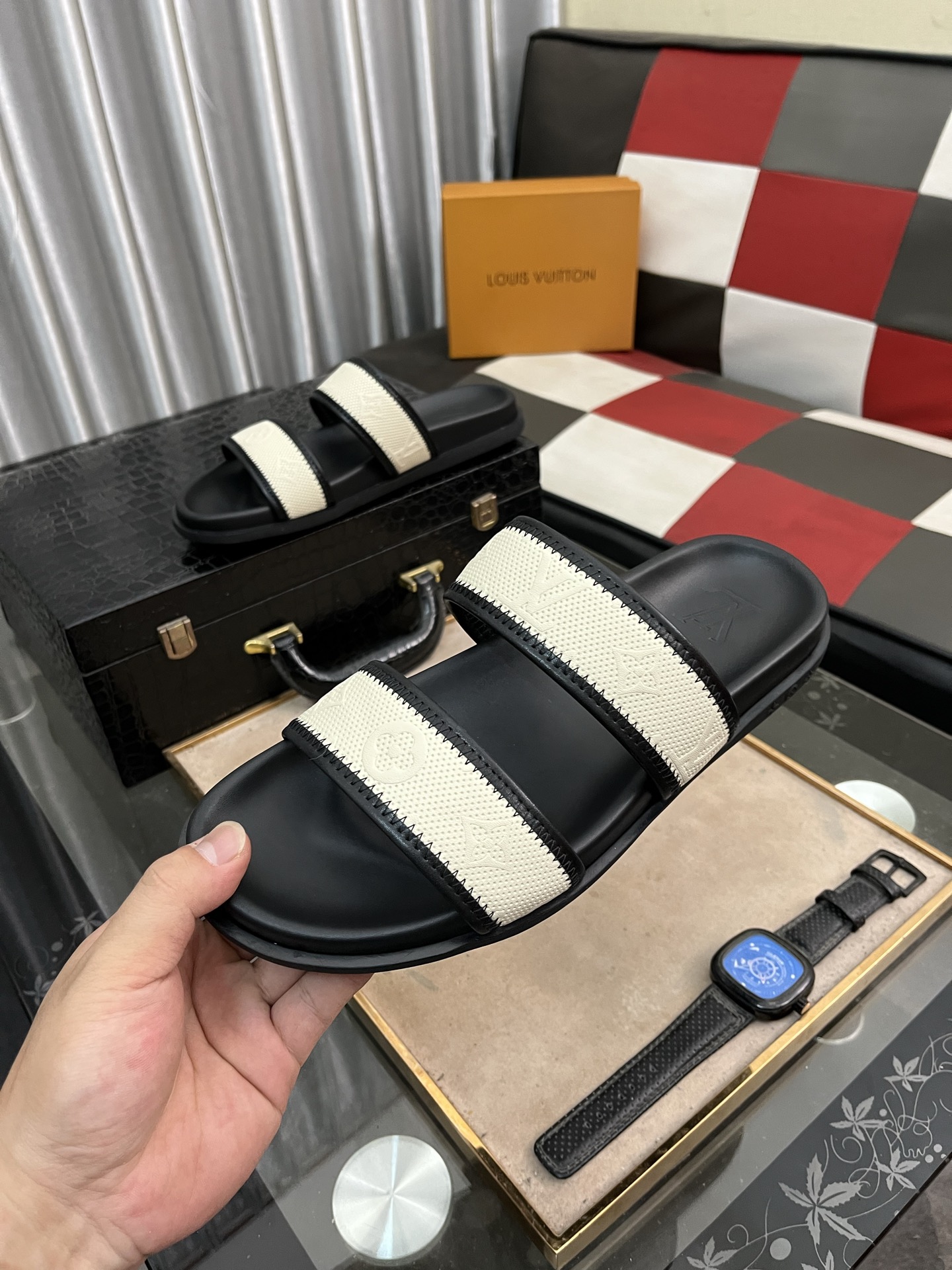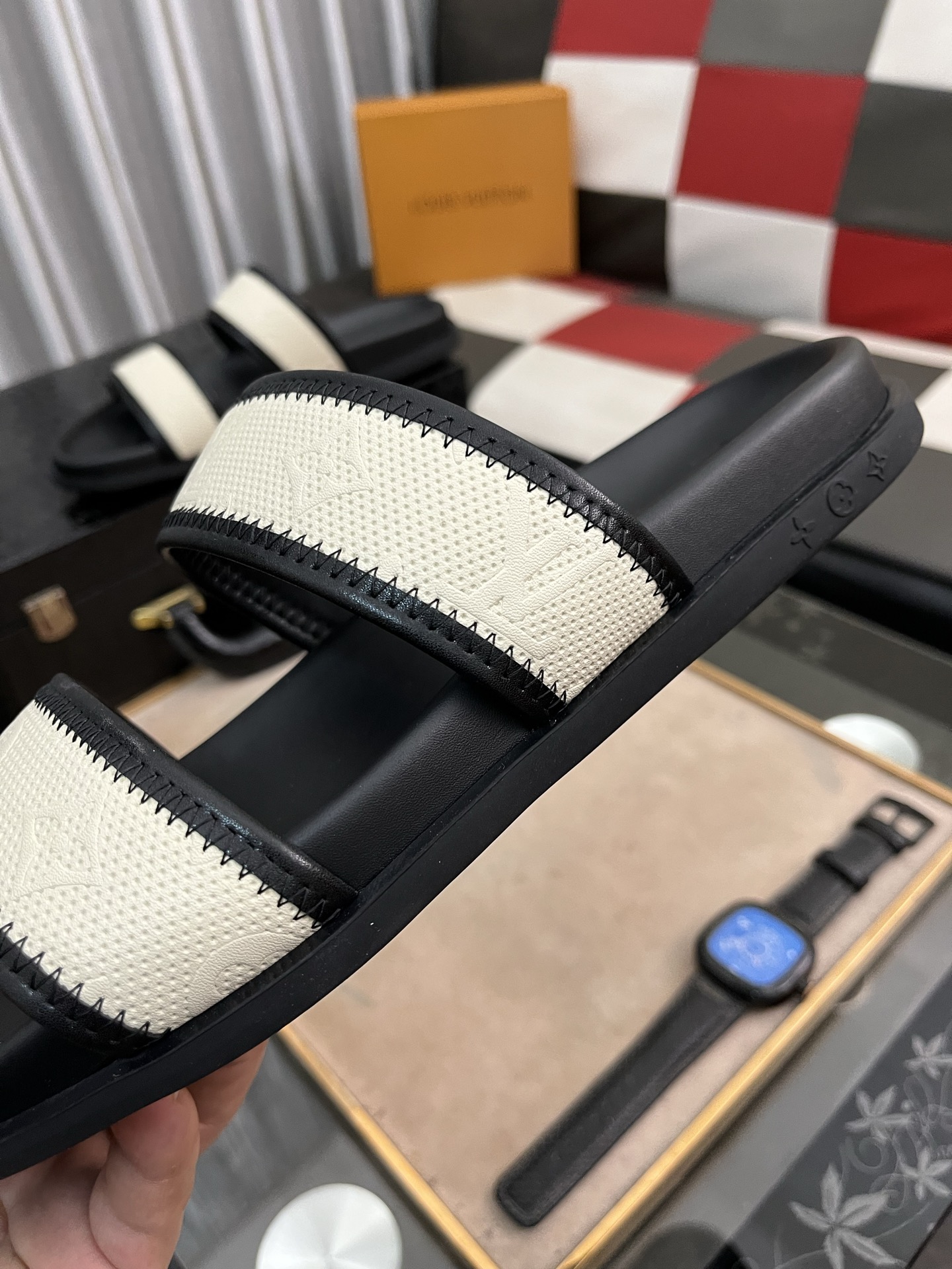 这款鞋子是AAAAA 1:1 质量 (非常棒). 使用了和原版一模一样的材料. 商标部分也保持了和路易威登/Louis Vuitton一样. 图片拍摄是实物鞋子拍摄, 您所收到的实物保证和我们图片一模一样.