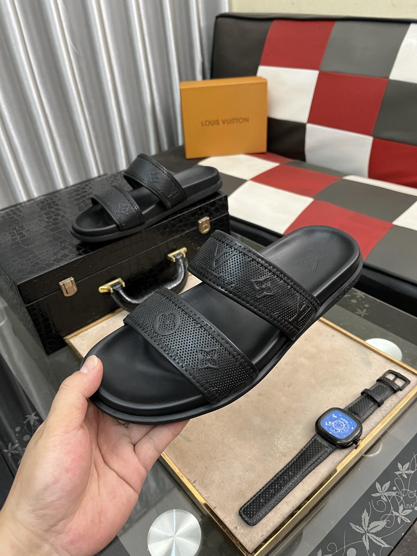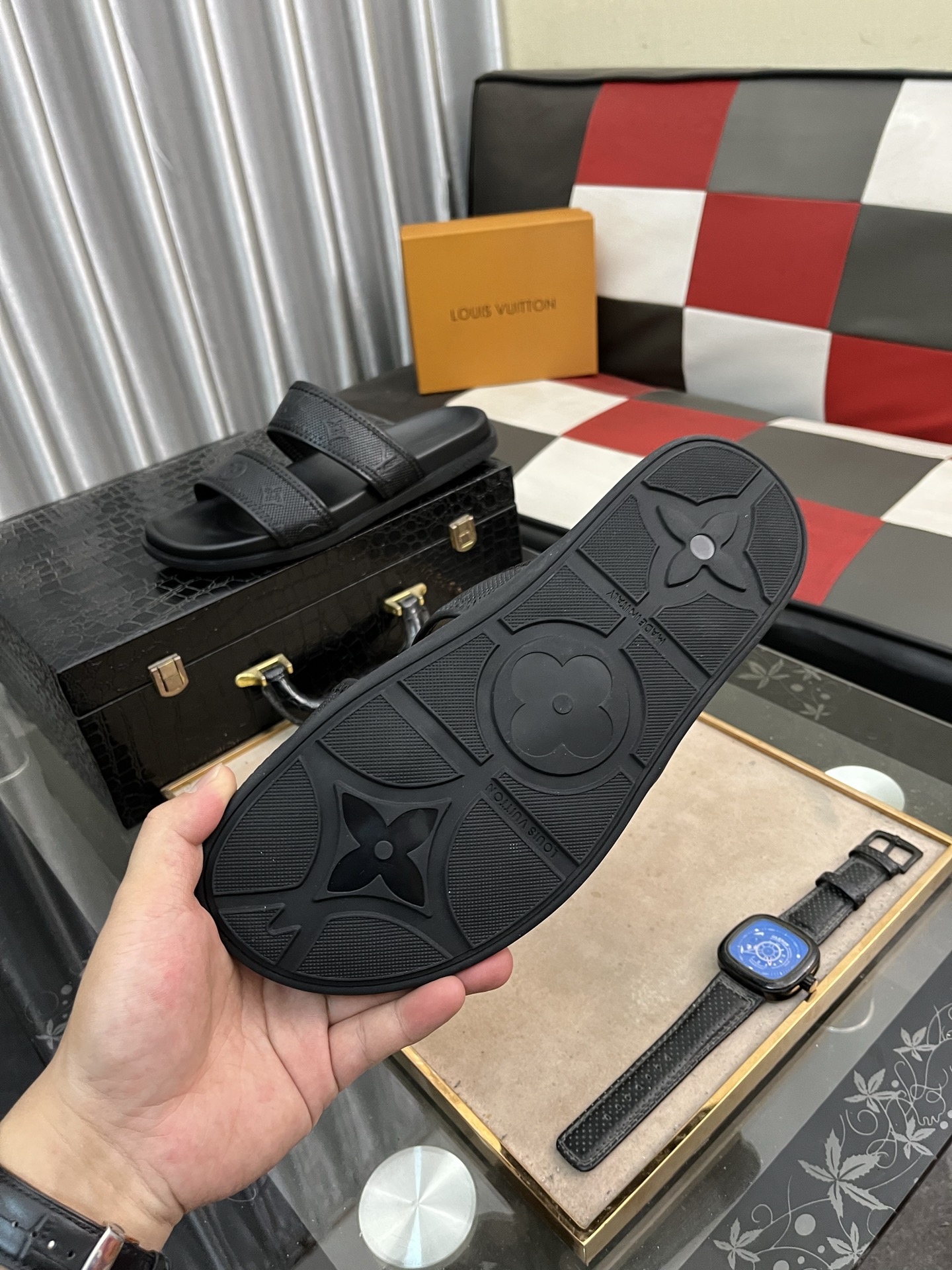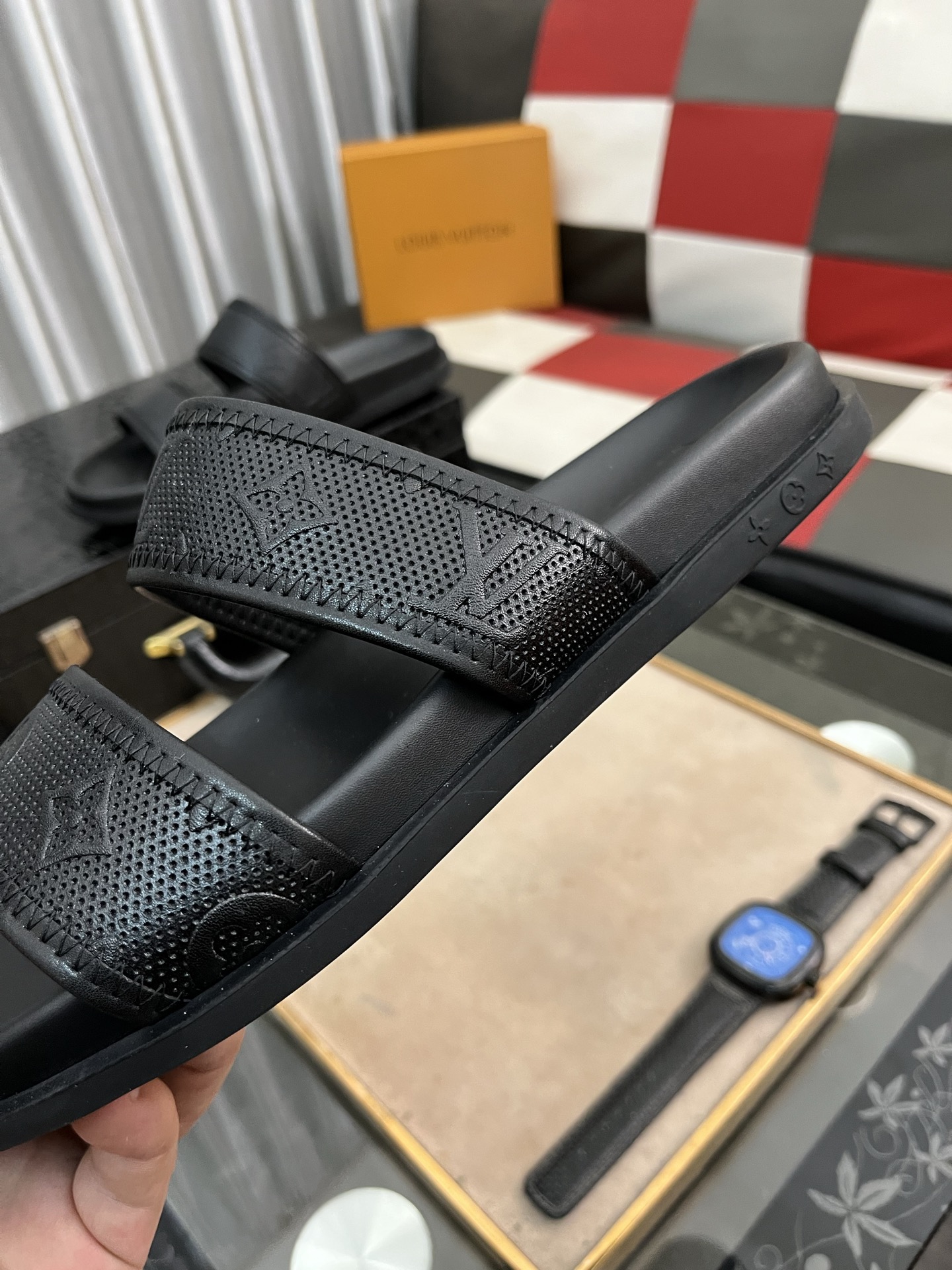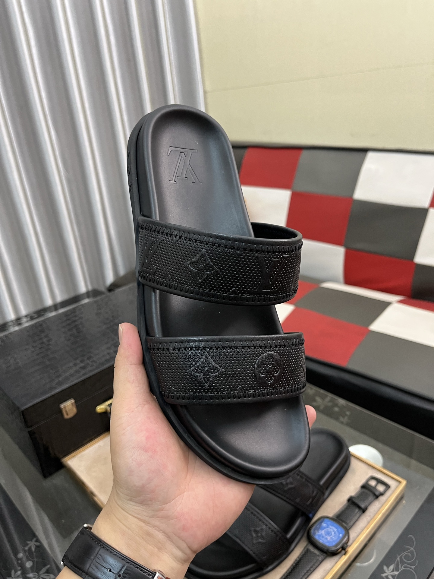 这款鞋子是AAAAA 1:1 质量 (非常棒). 使用了和原版一模一样的材料. 商标部分也保持了和路易威登/Louis Vuitton一样. 图片拍摄是实物鞋子拍摄, 您所收到的实物保证和我们图片一模一样.