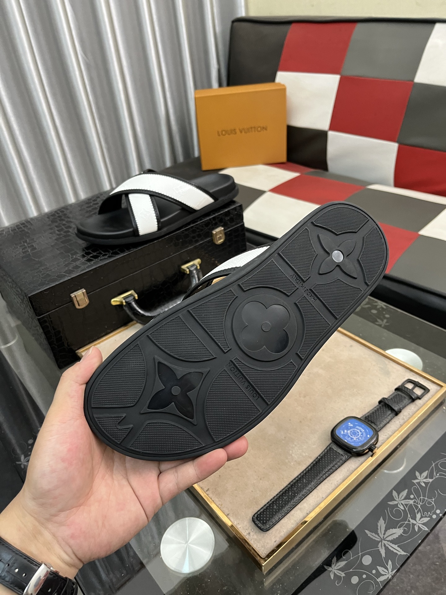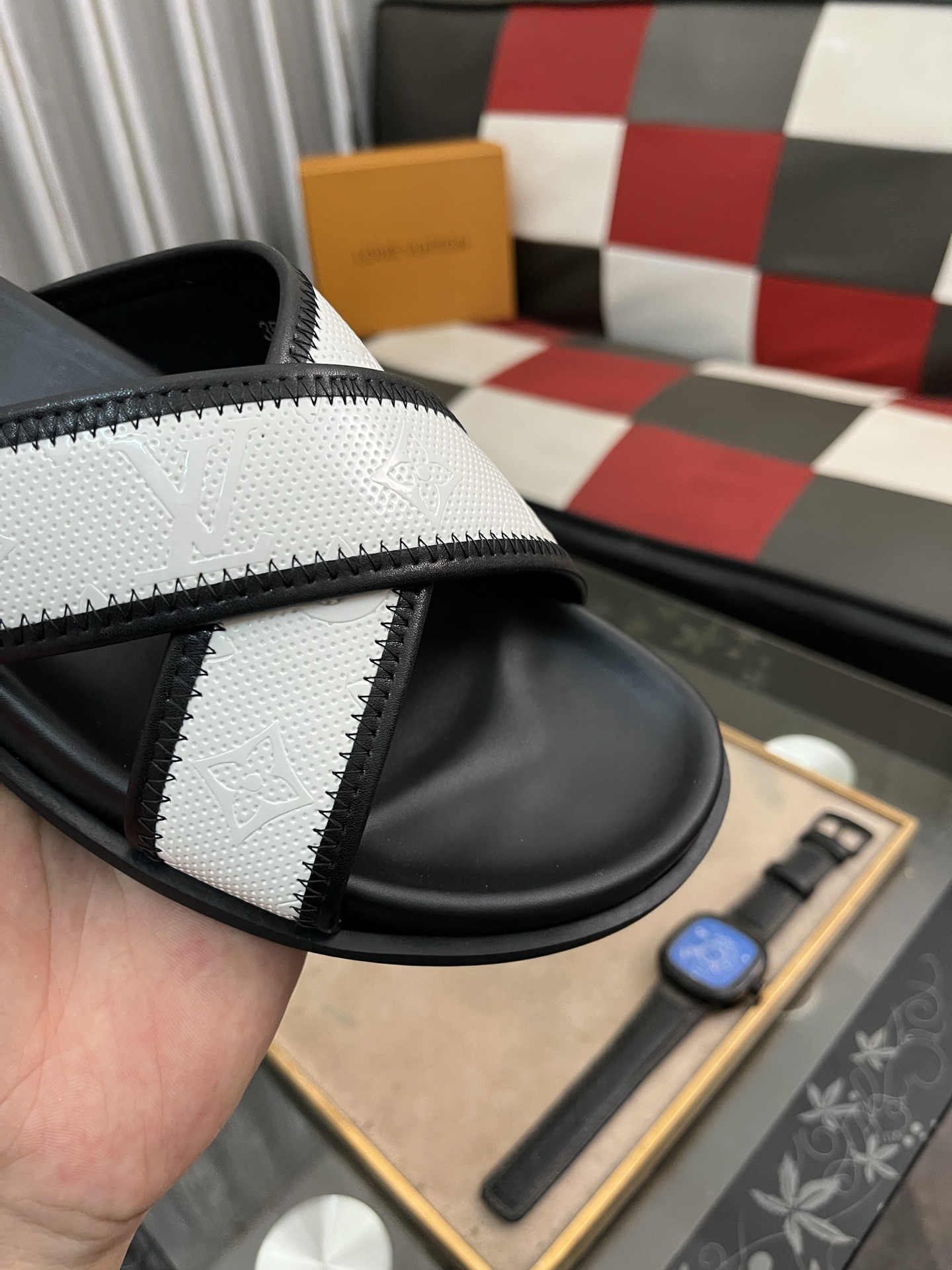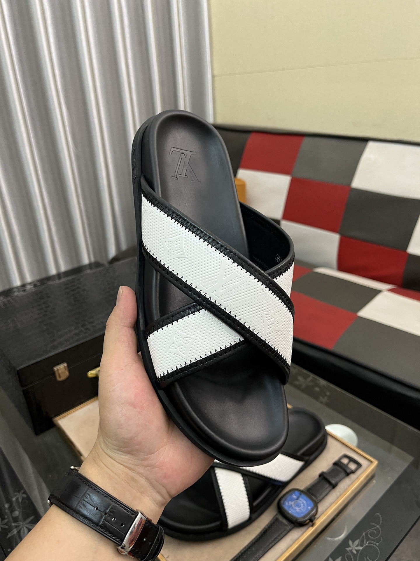这款鞋子是AAAAA 1:1 质量 (非常棒). 使用了和原版一模一样的材料. 商标部分也保持了和路易威登/Louis Vuitton一样. 图片拍摄是实物鞋子拍摄, 您所收到的实物保证和我们图片一模一样.