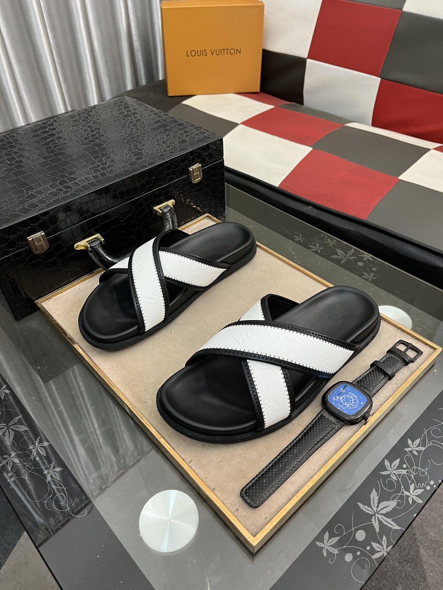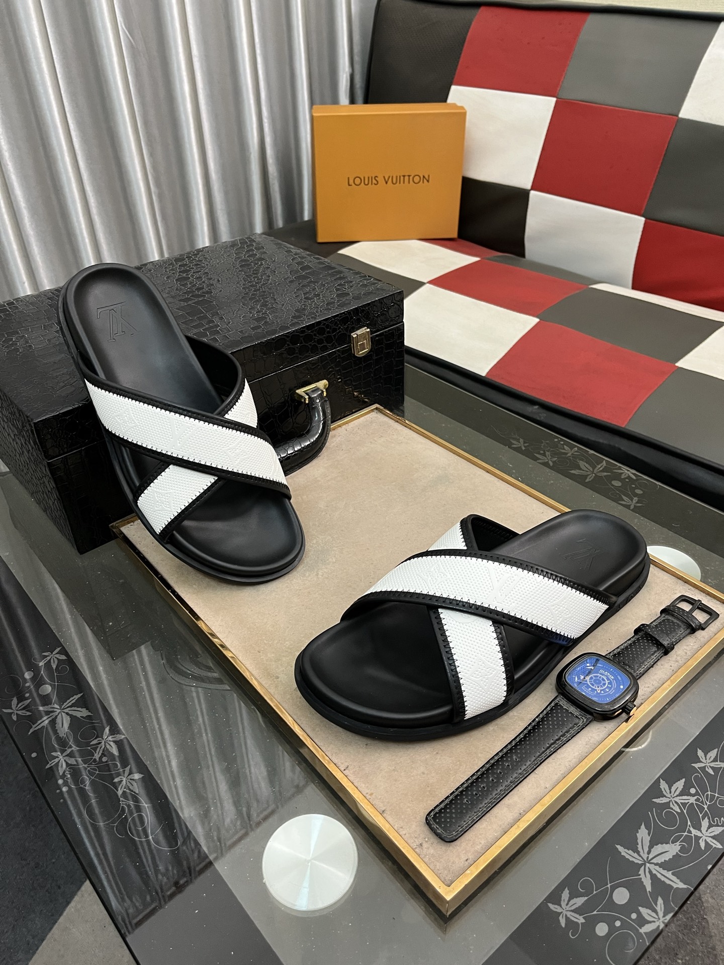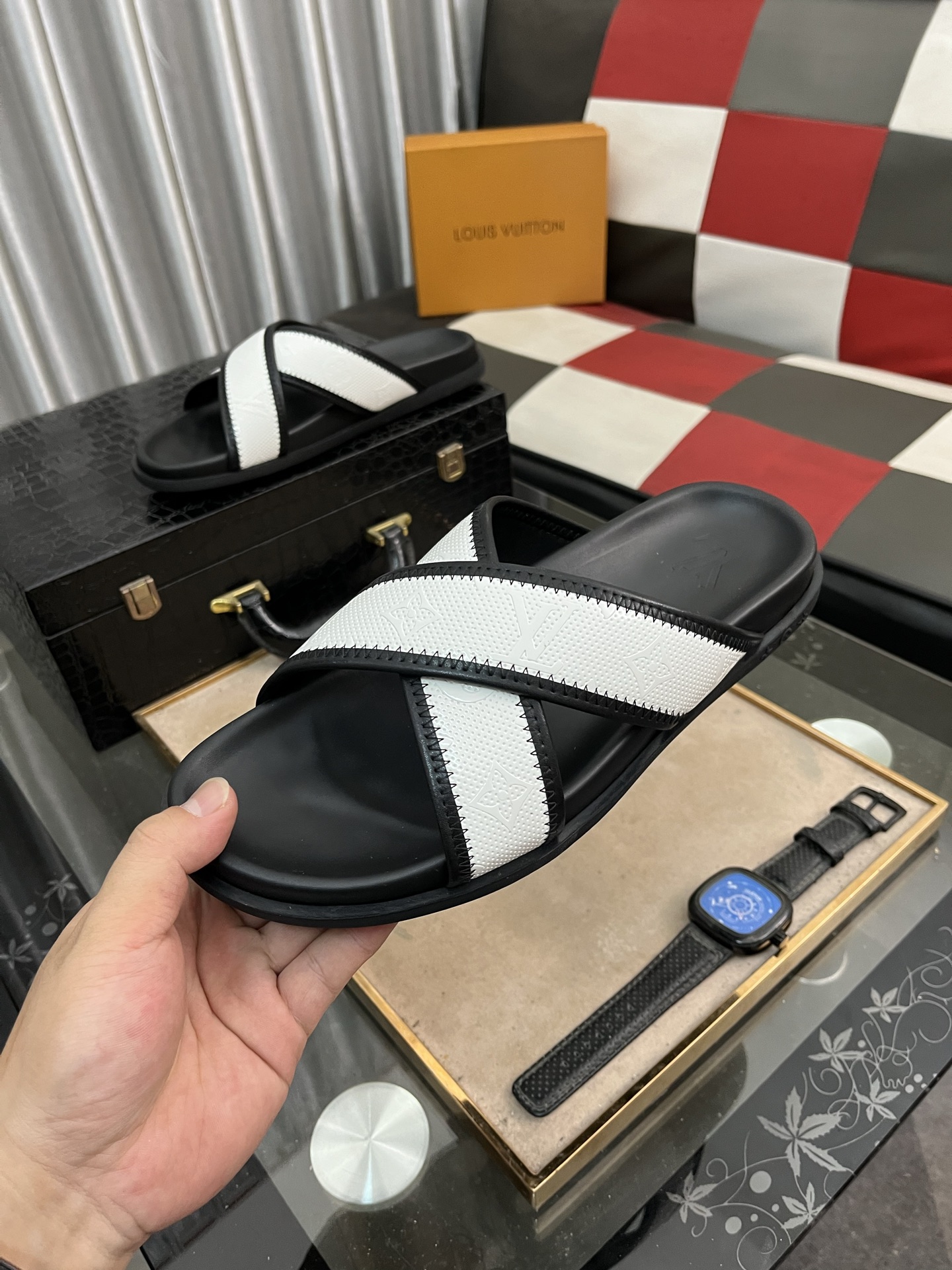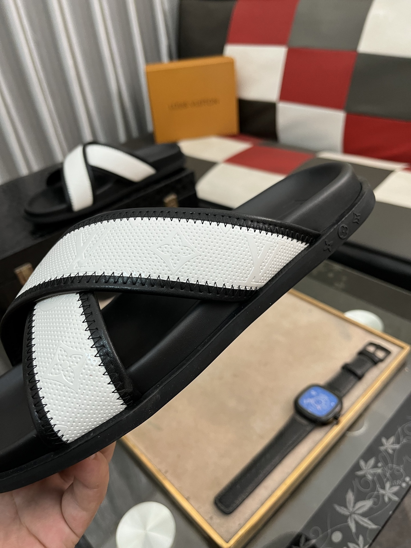 这款鞋子是AAAAA 1:1 质量 (非常棒). 使用了和原版一模一样的材料. 商标部分也保持了和路易威登/Louis Vuitton一样. 图片拍摄是实物鞋子拍摄, 您所收到的实物保证和我们图片一模一样.