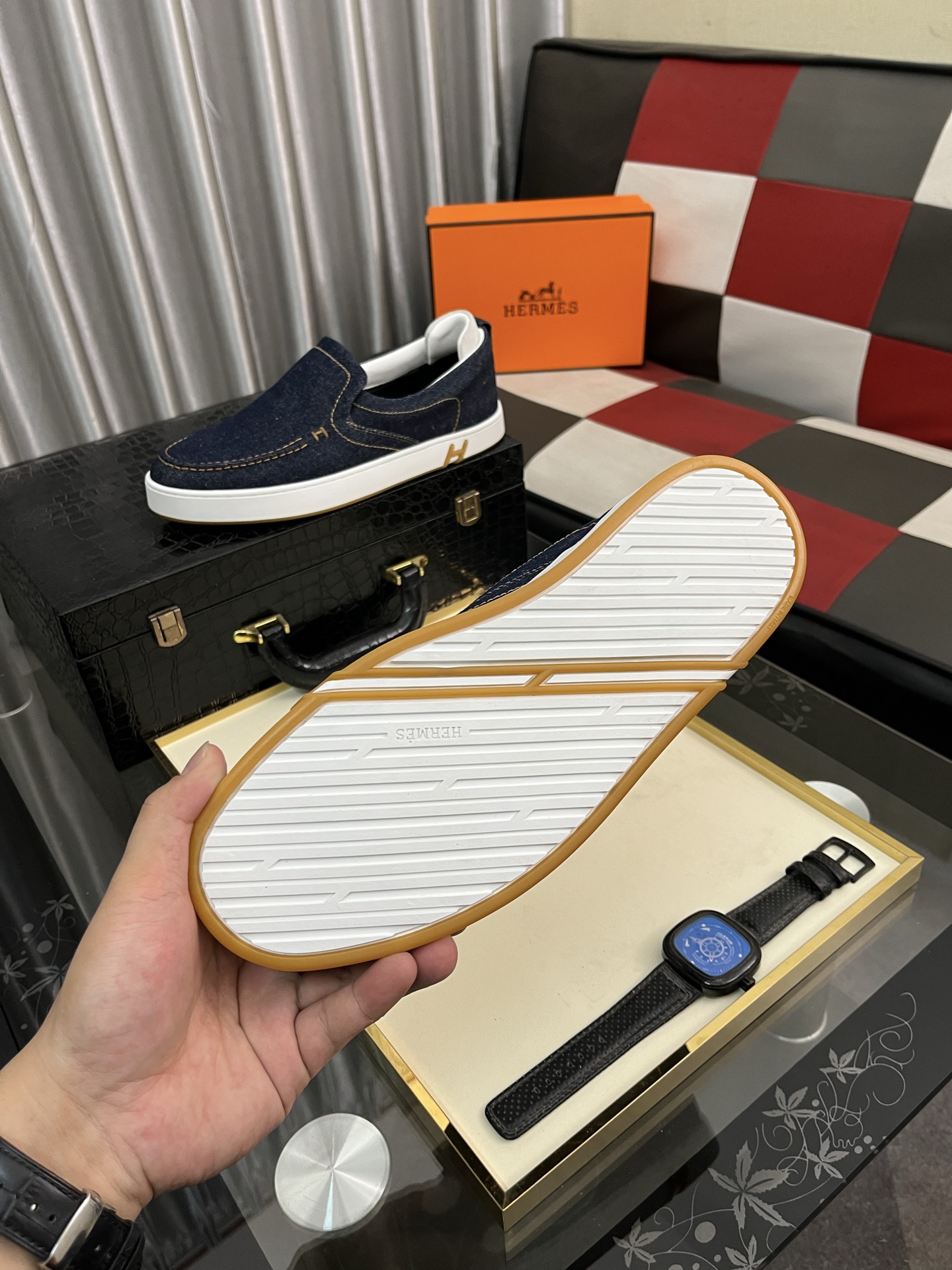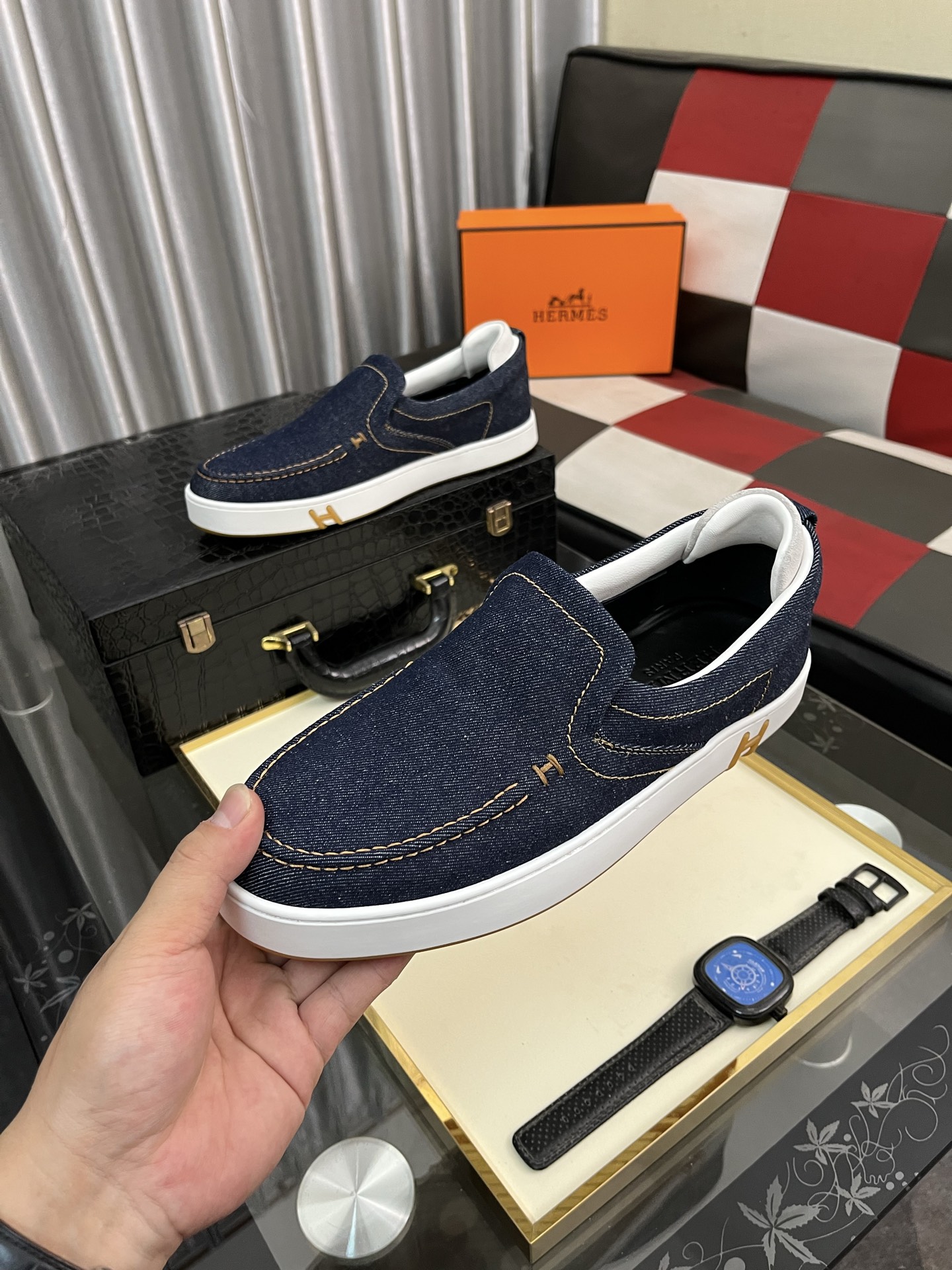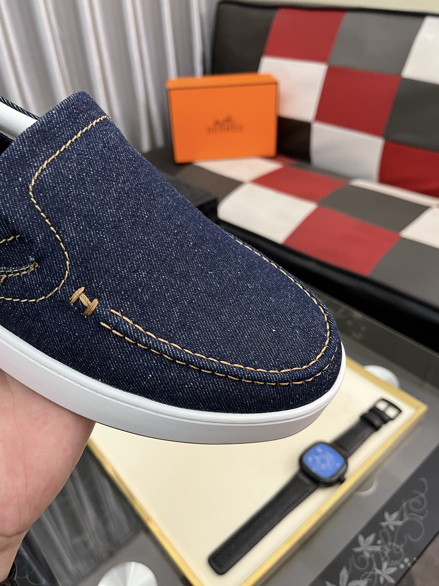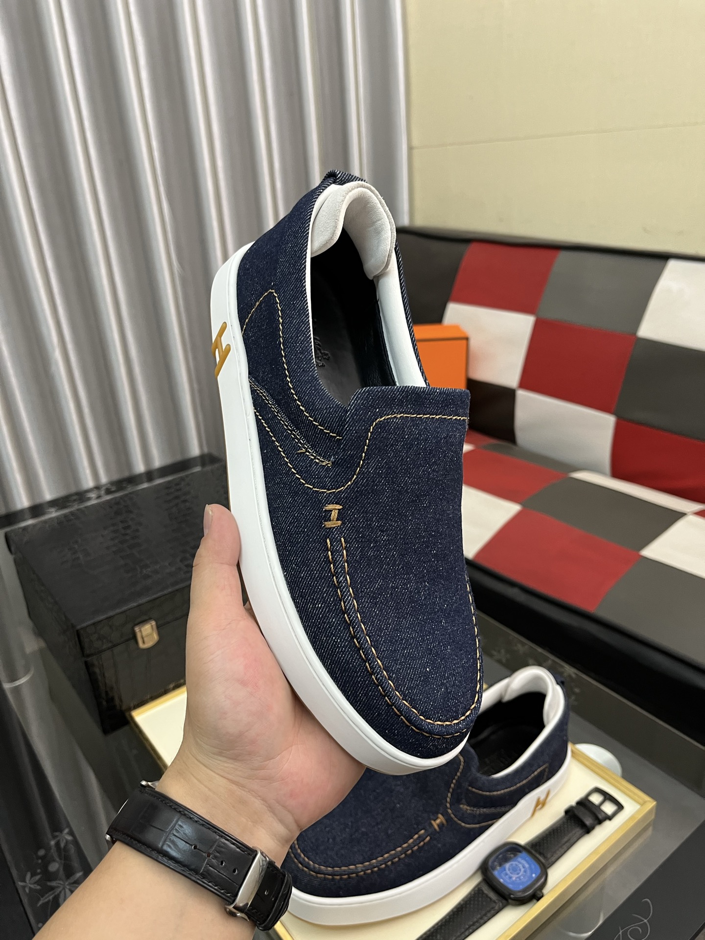 这款鞋子是AAAAA 1:1 质量 (非常棒). 使用了和原版一模一样的材料. 商标部分也保持了和爱马仕/Hermes一样. 图片拍摄是实物鞋子拍摄, 您所收到的实物保证和我们图片一模一样.