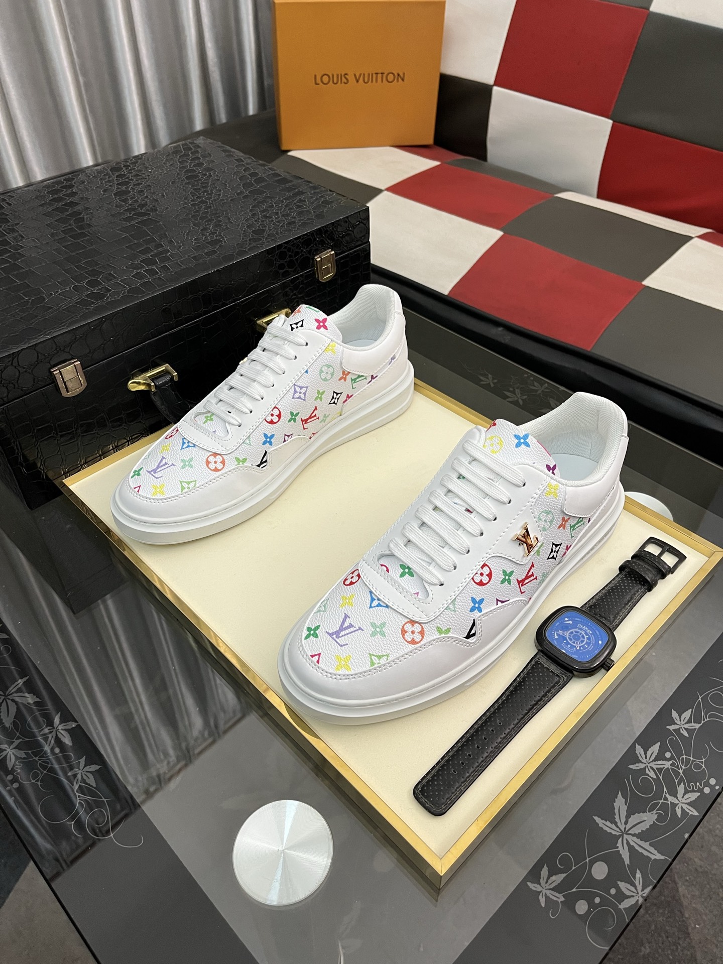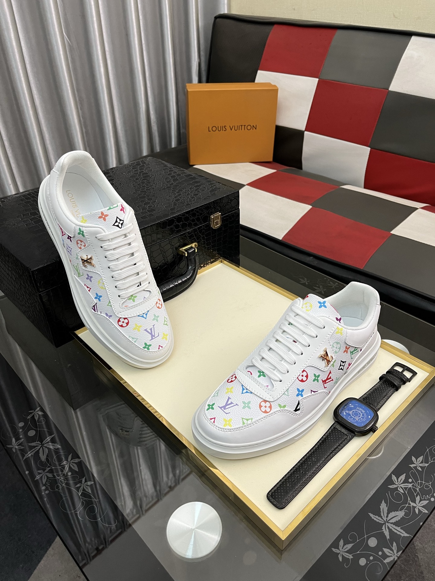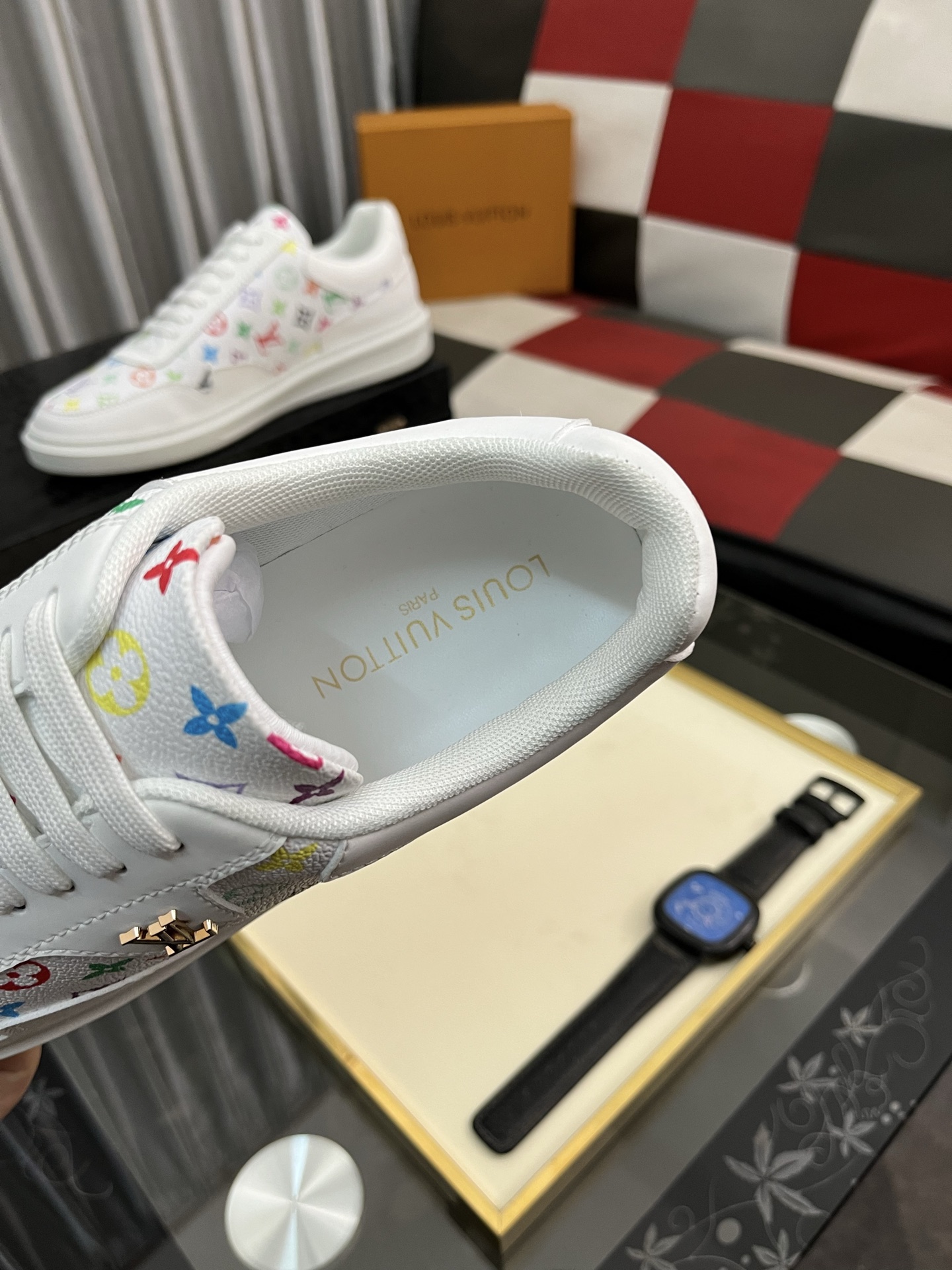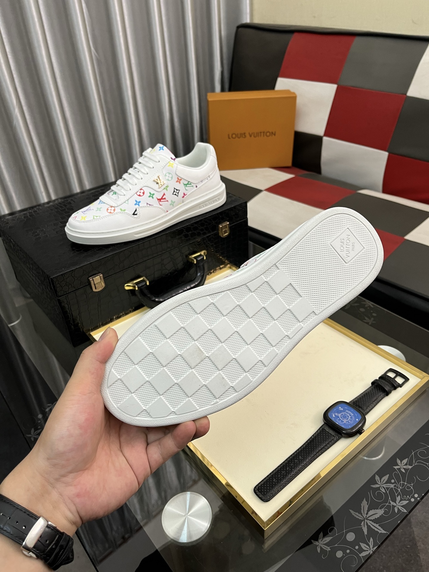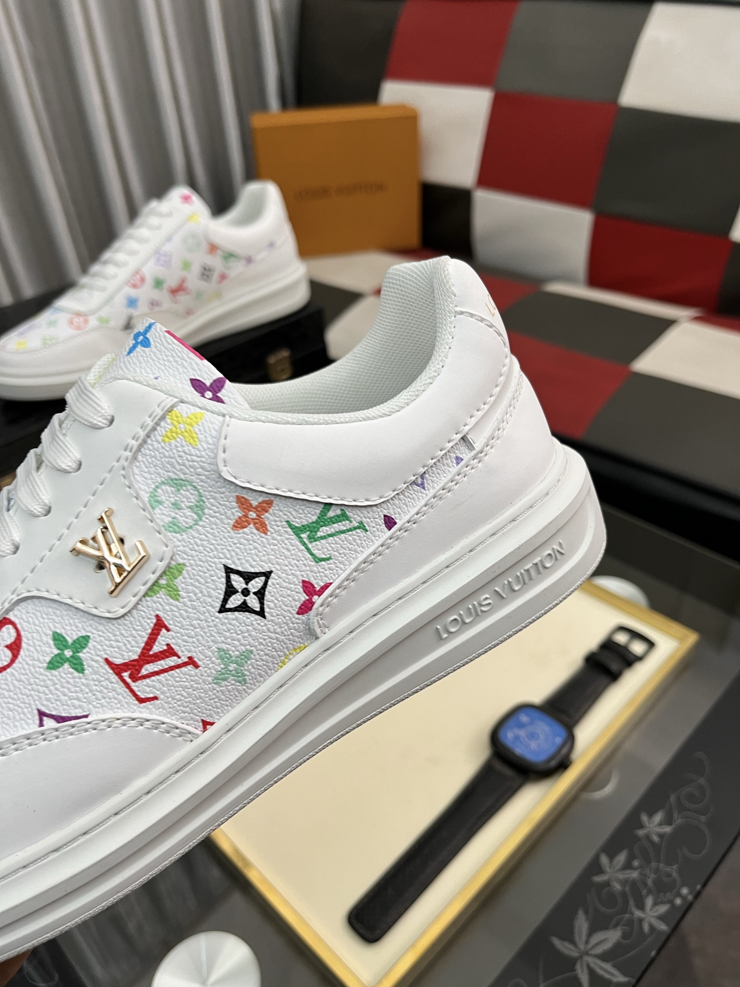 这款鞋子是AAAAA 1:1 质量 (非常棒). 使用了和原版一模一样的材料. 商标部分也保持了和路易威登/Louis Vuitton一样. 图片拍摄是实物鞋子拍摄, 您所收到的实物保证和我们图片一模一样.